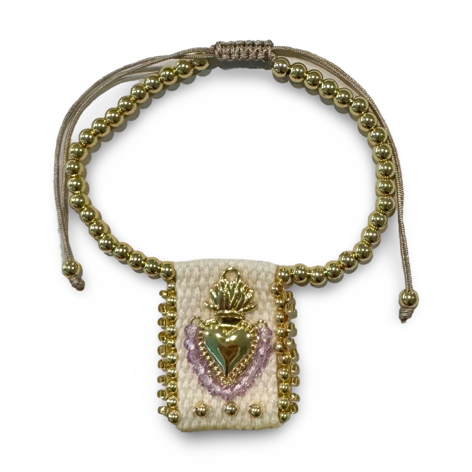 This adjustable bracelet features a woven pendant embellished with a golden Sacred Heart of Jesus with dainty crystal beads surrounding it. Not only fitting for any occasion but a creative and beautiful way to remind yourself of the burning love of Christ's Heart for you and the whole world!