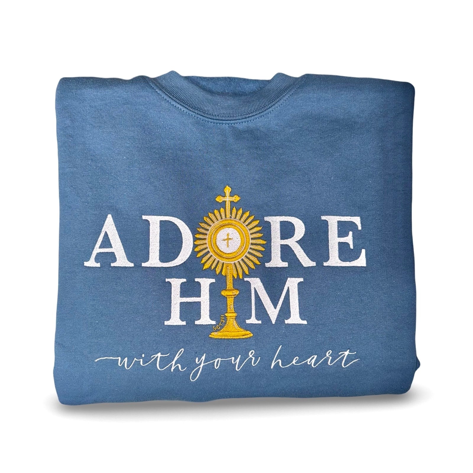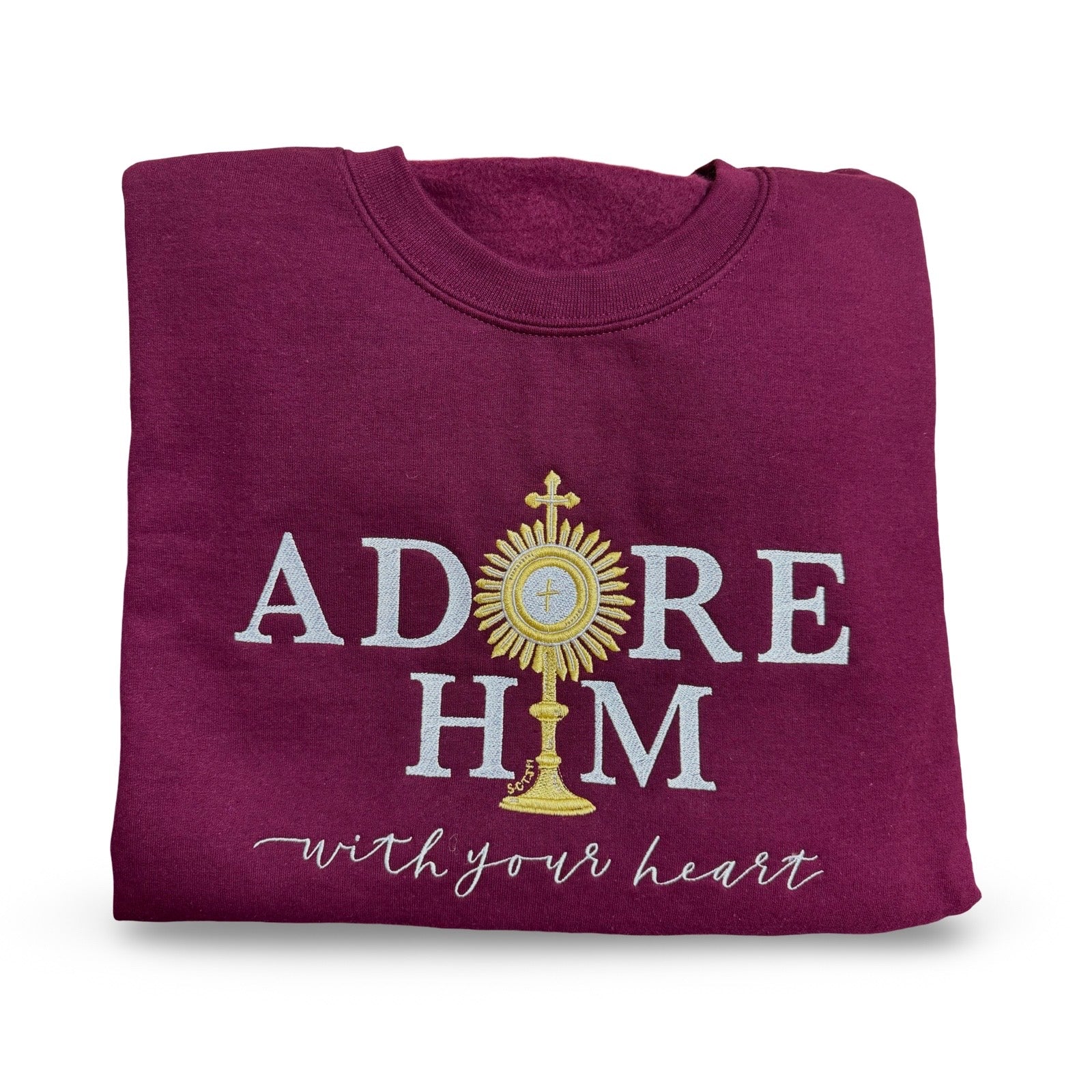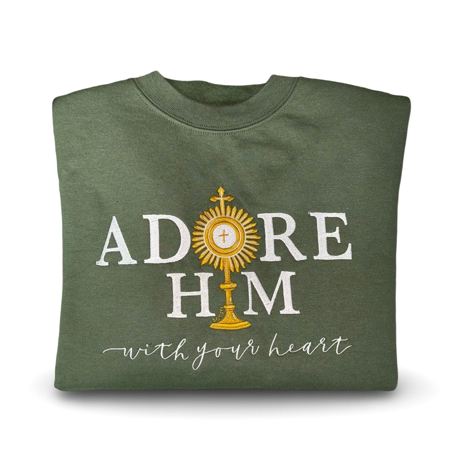 "Adore Him With Your Heart" Embroidered Crewneck Sweater by SCTJM