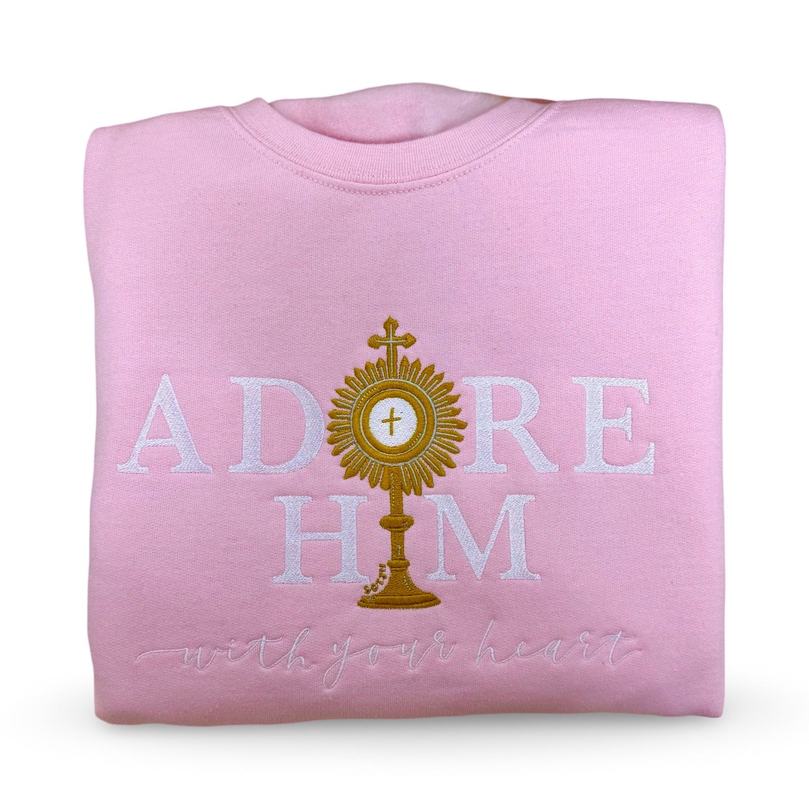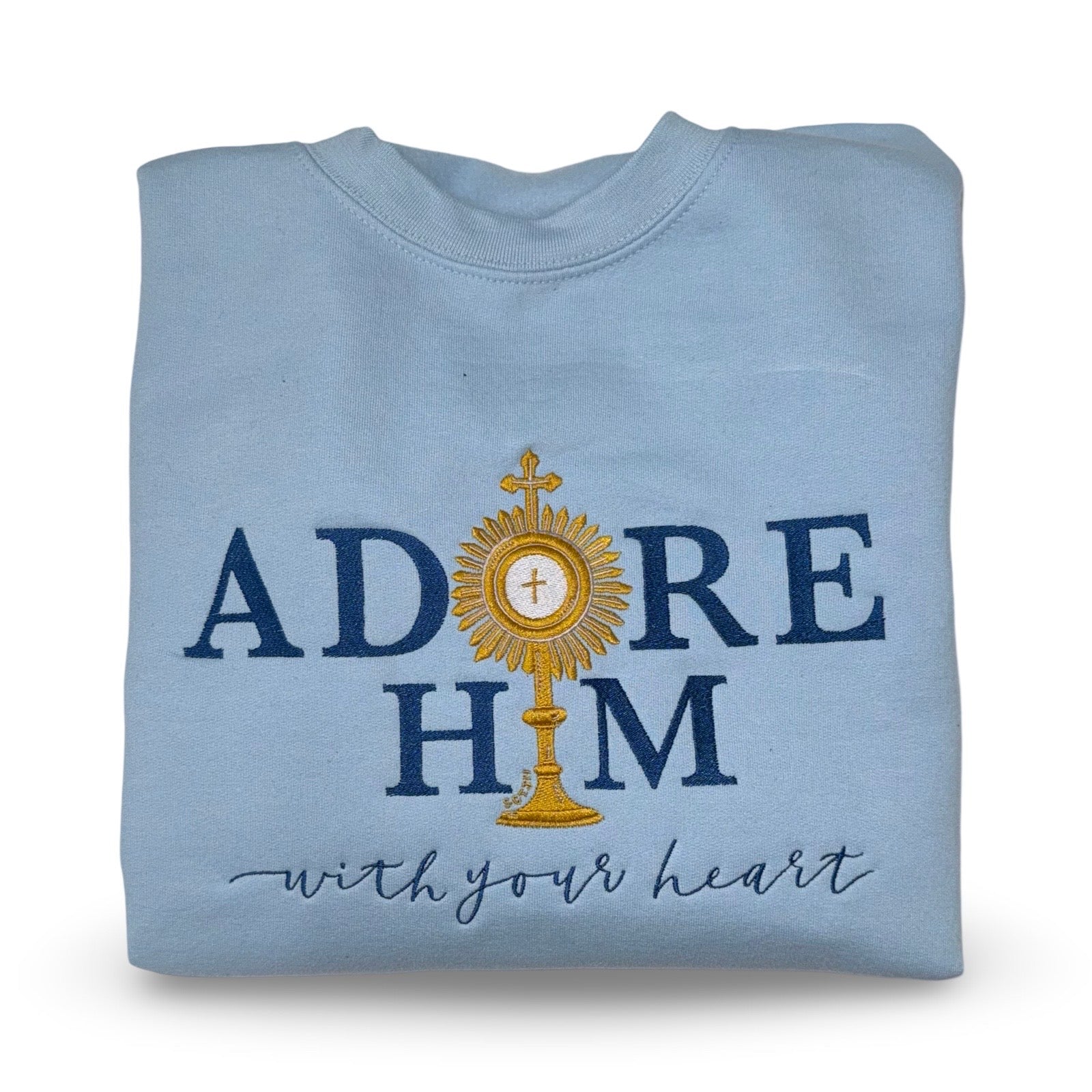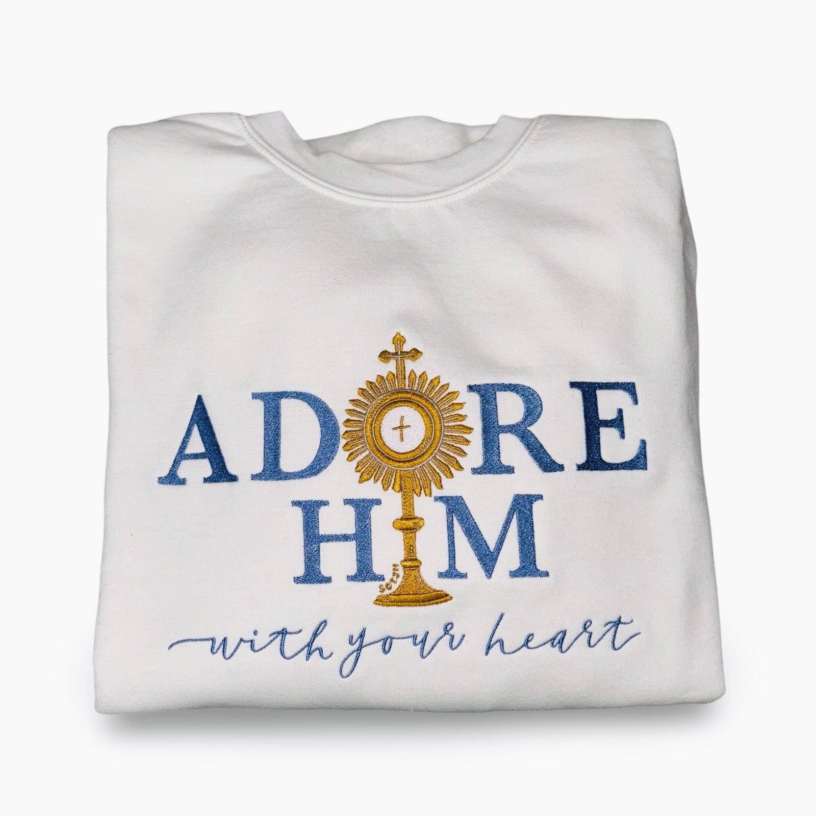 "Adore Him With Your Heart" Embroidered Crewneck Sweater by SCTJM
