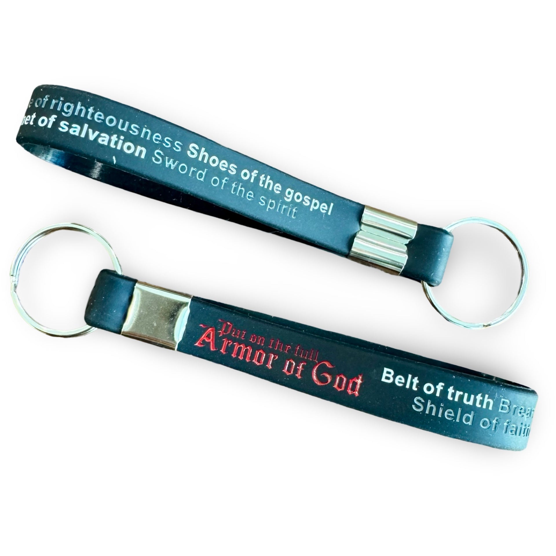 These silicone keychains have the Scripture from Ephesians 6 - putting on the armor of God. Add your keys and read the Scripture verse as a reminder every time you leave the house.