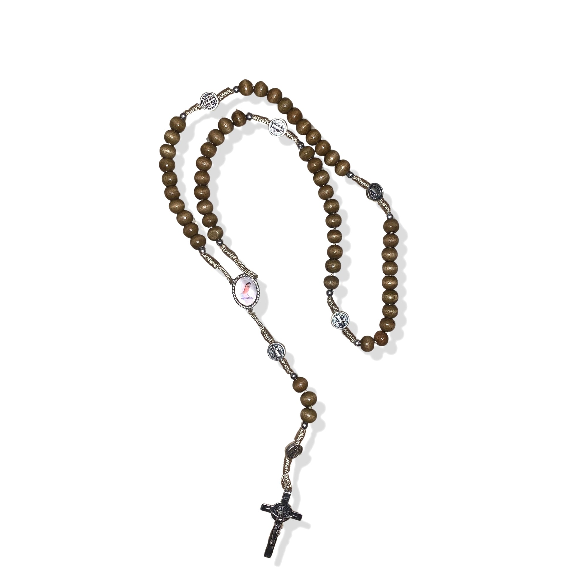 Ash Wood Bead with Cream String St. Benedict Rosary