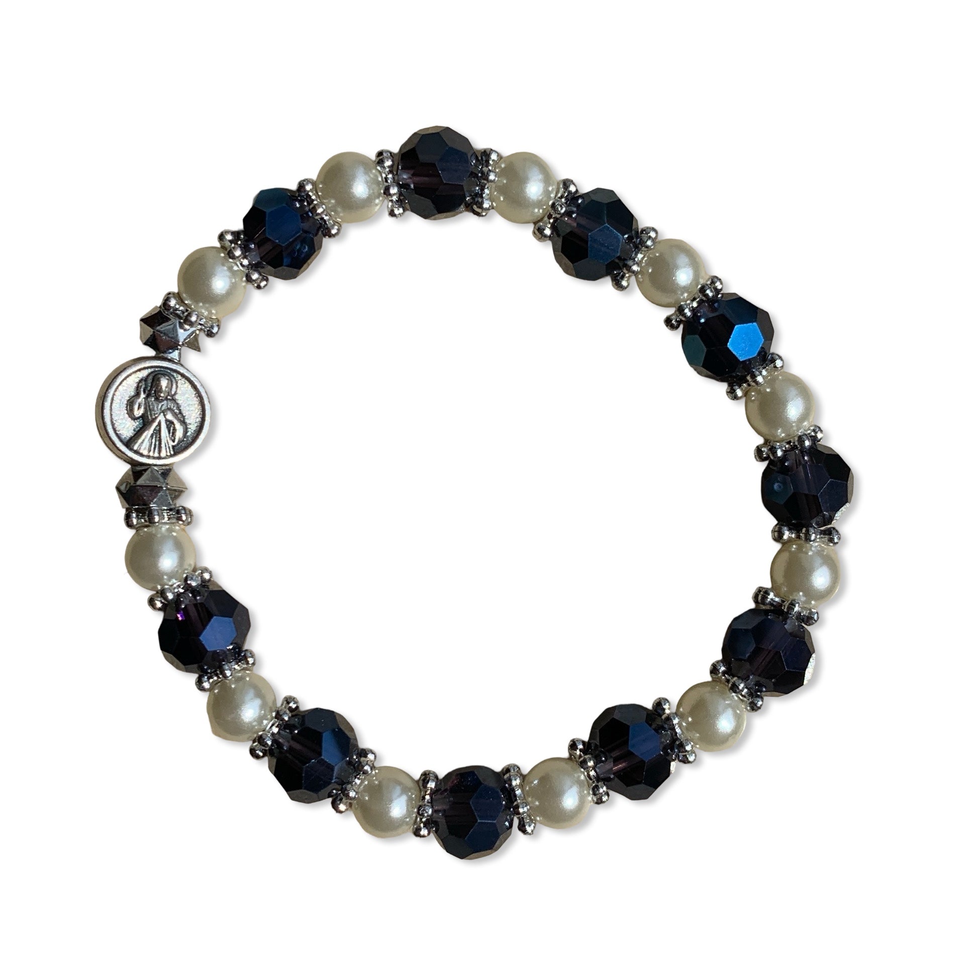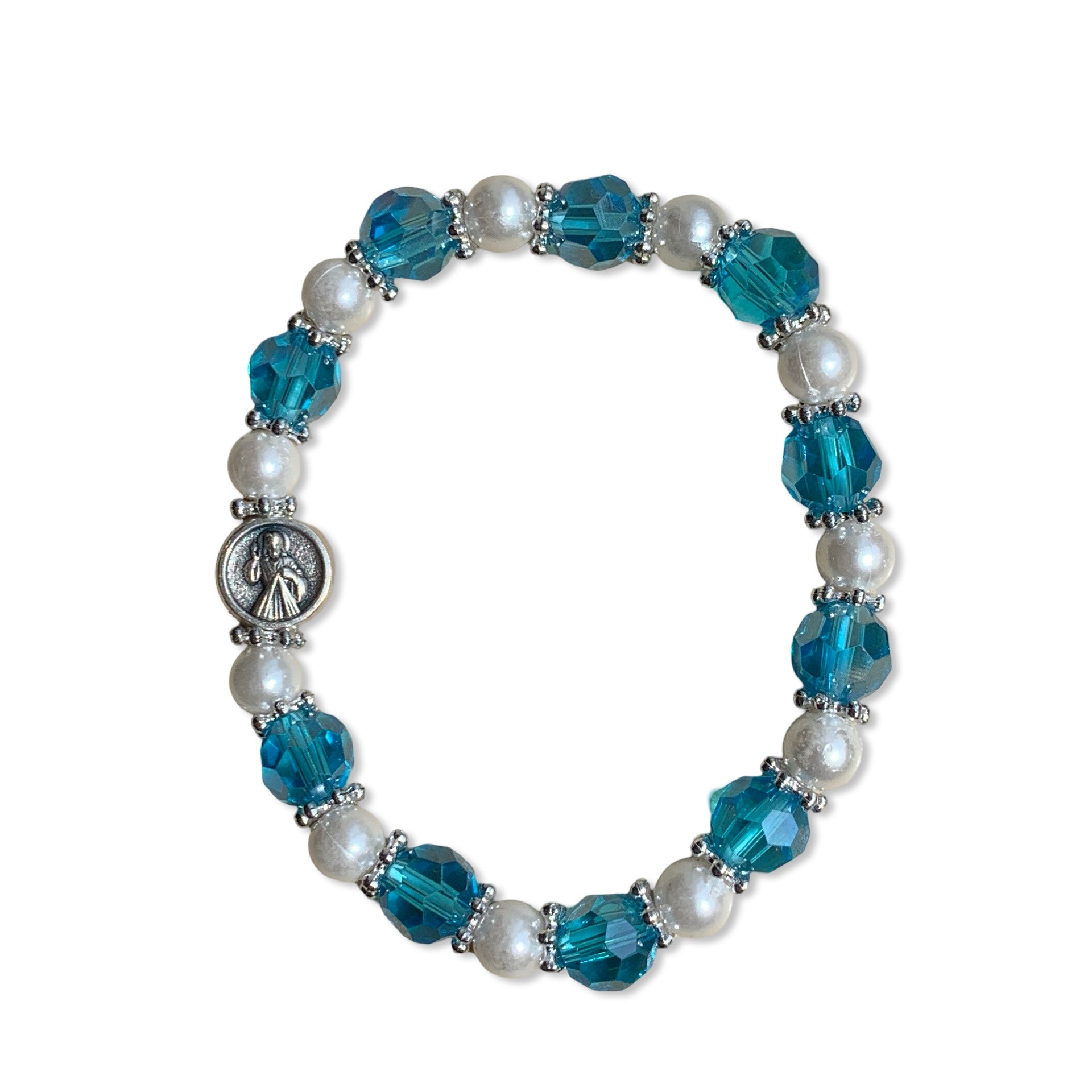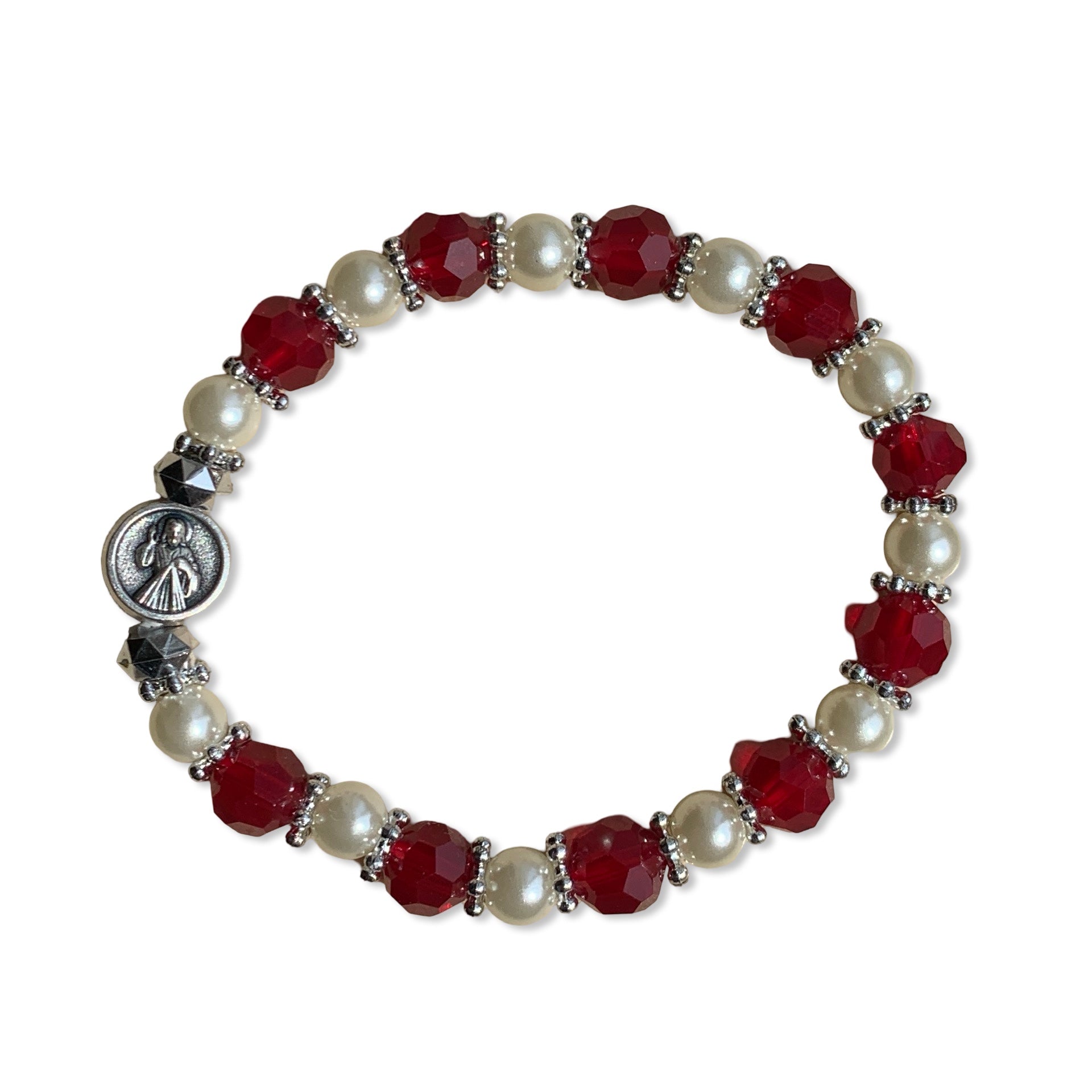 Description: This beautiful bracelet comes in a variety of colors and contains a double-sided medal with an image of Divine Mercy and Our Lady Queen of Peace. This bracelet comes all the way from Medugorje and is brought by Mother Adela, SCTJM - Foundress, when she leads pilgrimages to this Marian site. This bracelet, coming from the land where it is believed that Our Lady has been appearing for many years, is a wonderful gift for others or for yourself.