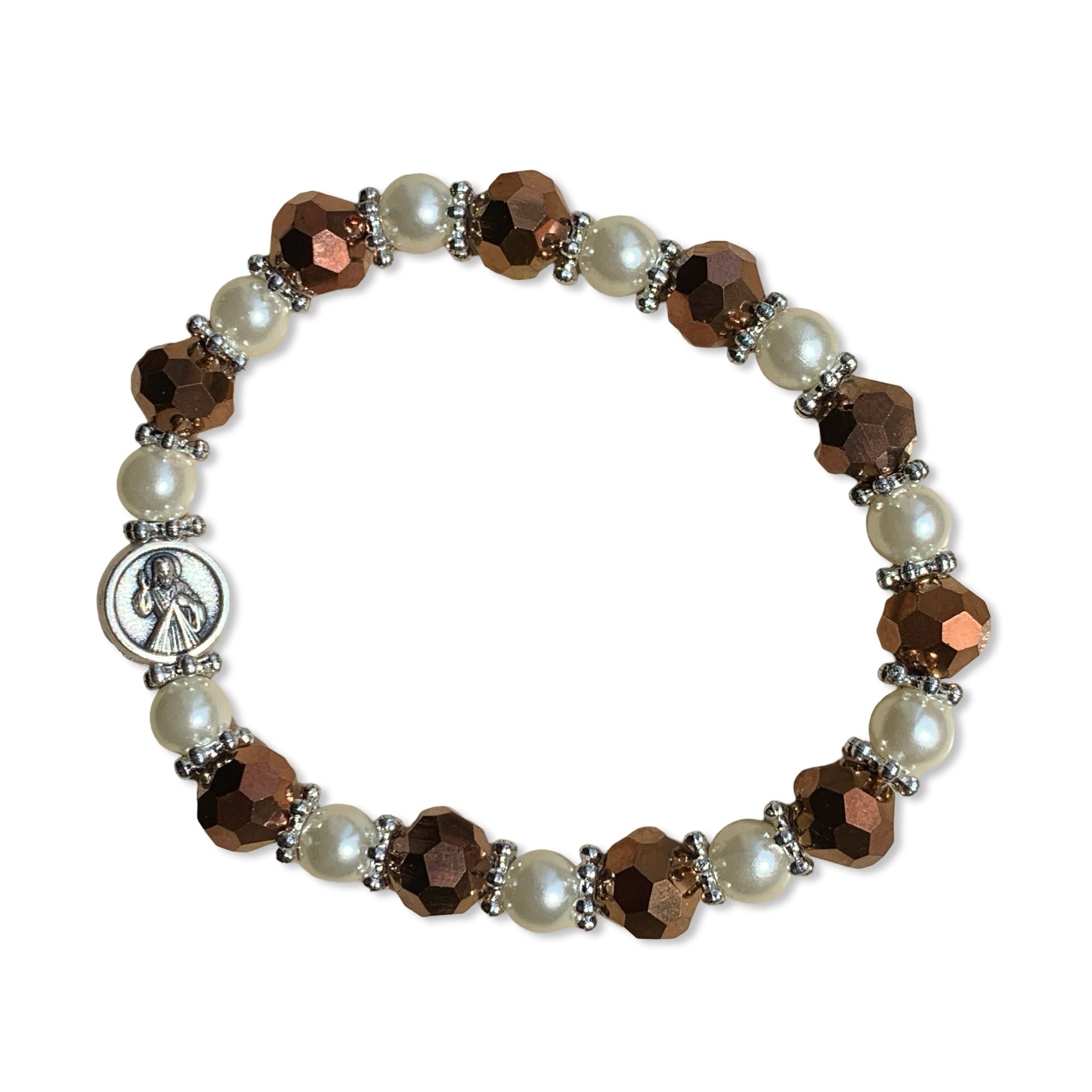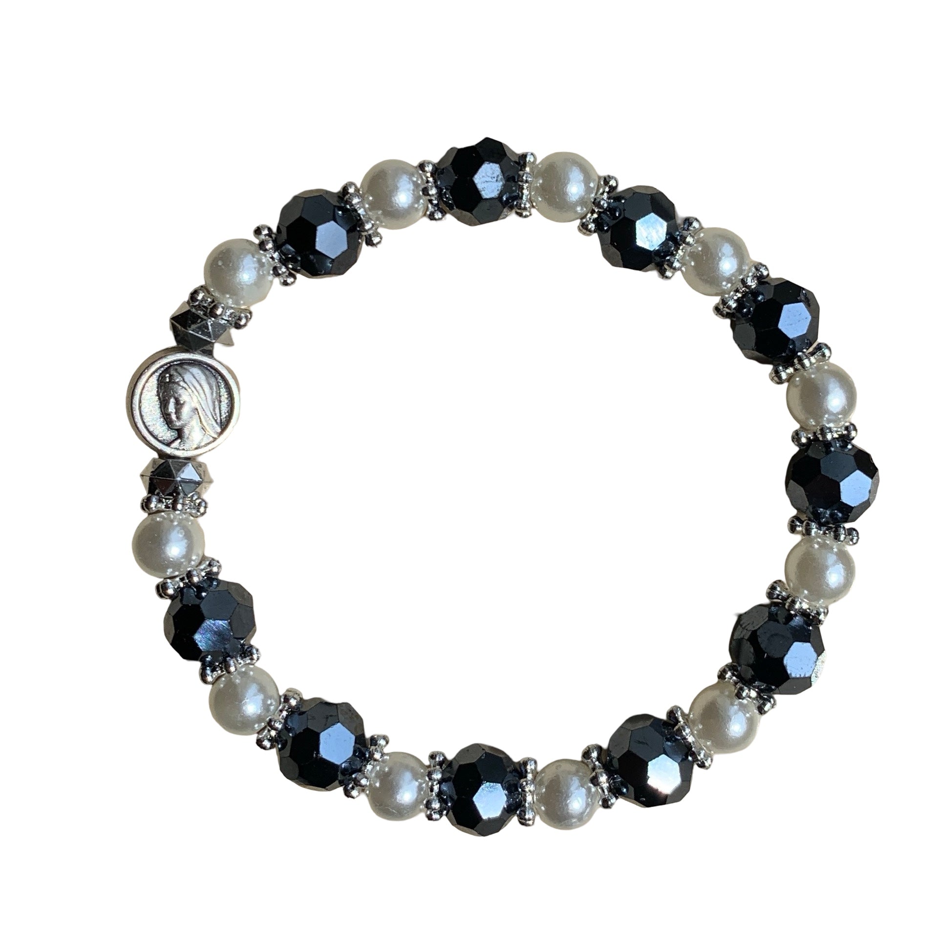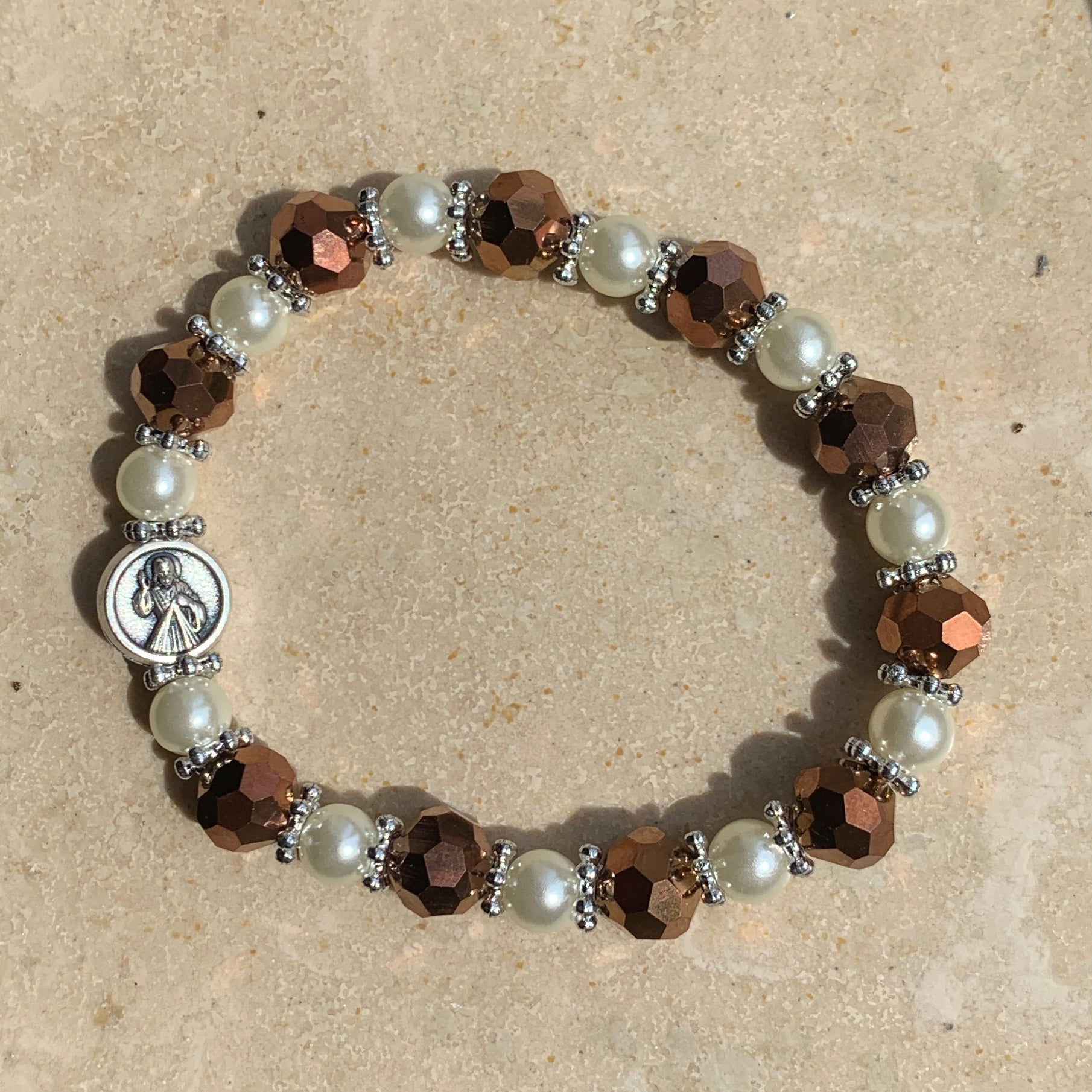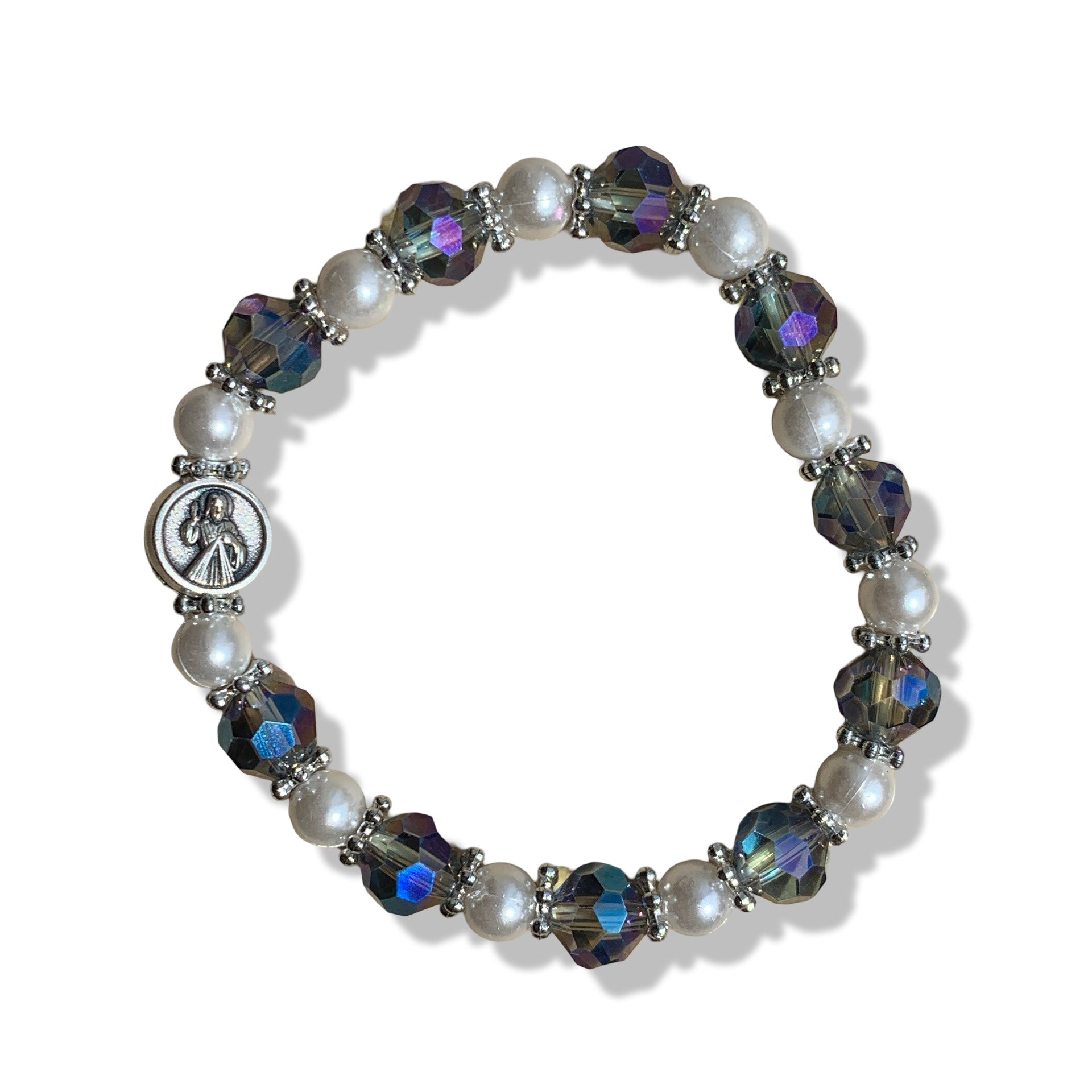 Description: This beautiful bracelet comes in a variety of colors and contains a double-sided medal with an image of Divine Mercy and Our Lady Queen of Peace. This bracelet comes all the way from Medugorje and is brought by Mother Adela, SCTJM - Foundress, when she leads pilgrimages to this Marian site. This bracelet, coming from the land where it is believed that Our Lady has been appearing for many years, is a wonderful gift for others or for yourself.