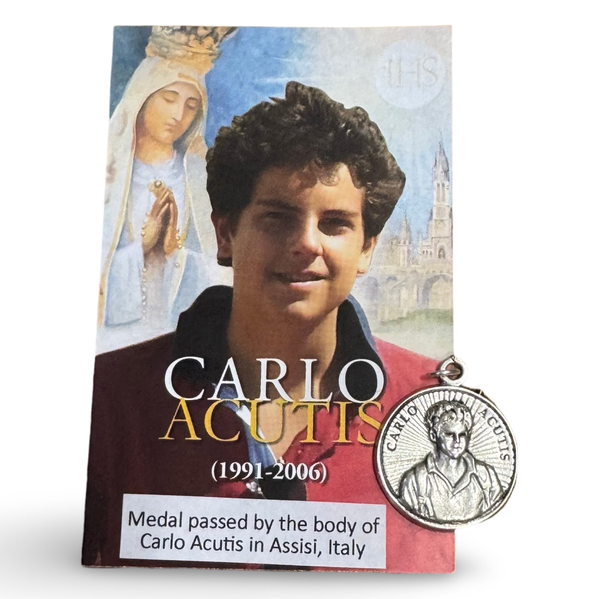 This pious set of Blessed Carlo Acutis is perfect for both adults and children alike. Crafted from quality materials, the set includes the Saint's medal and a prayer card to keep close at hand. Symbolizing hope and faith, it makes a great addition to any home.