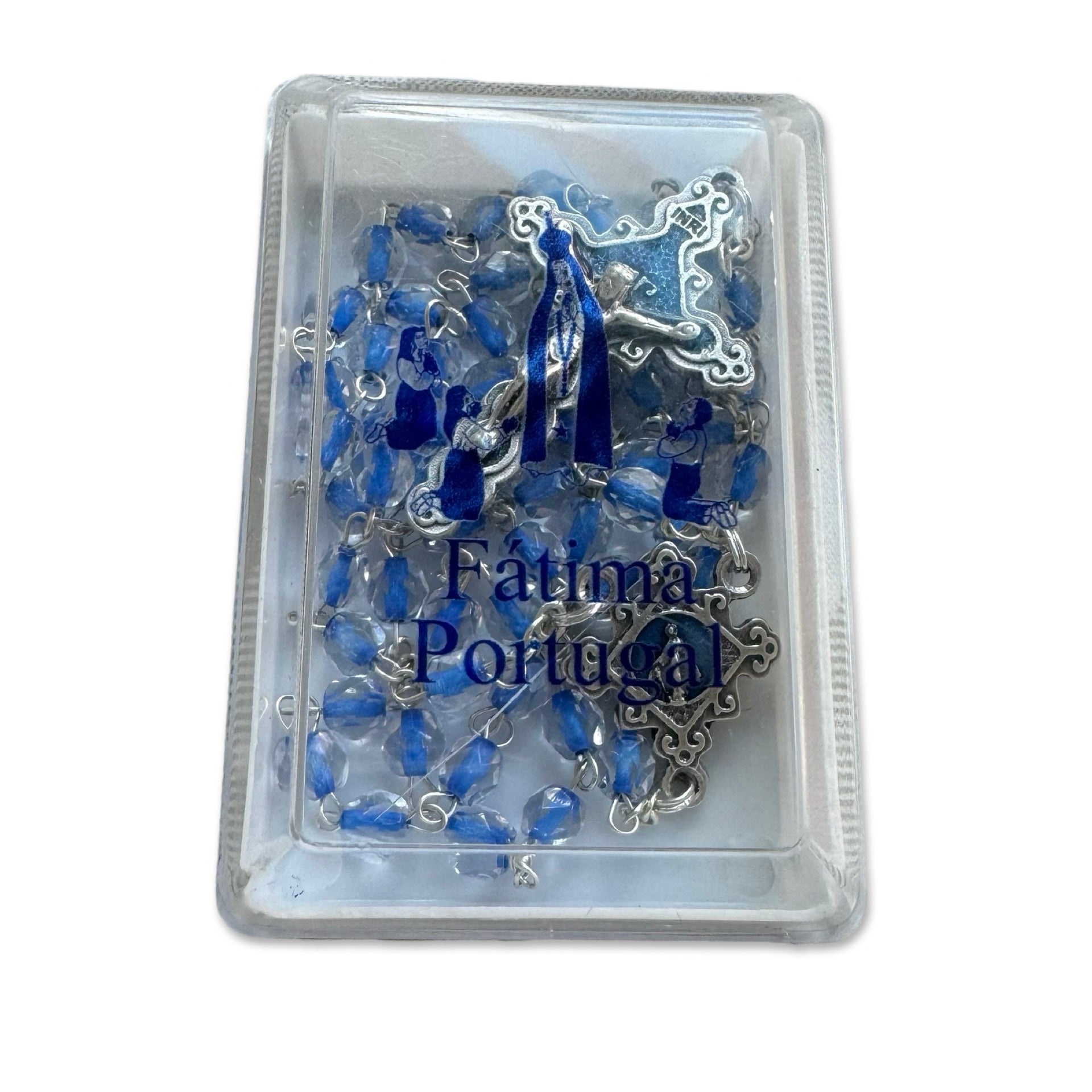 Blue Crystal Fatima Rosary with Embellished Miraculous Medal in Case