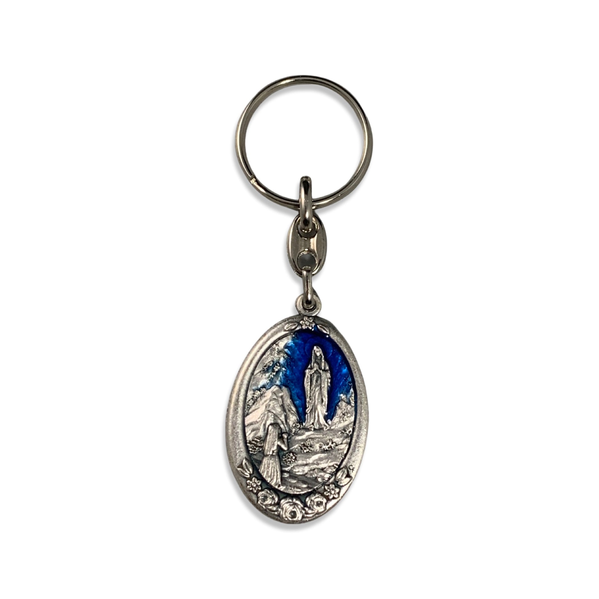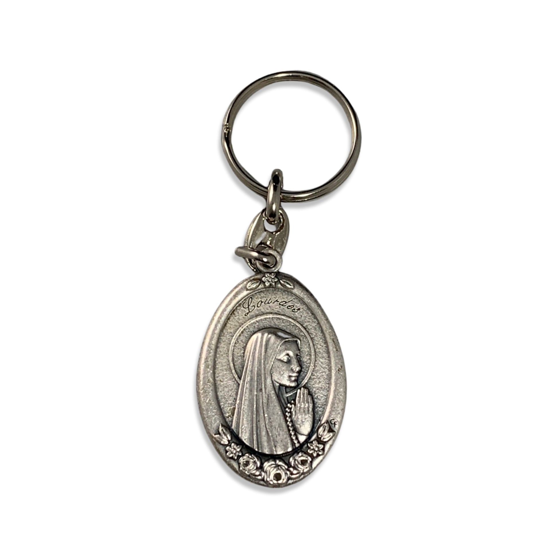 Carry the healing presence of Our Lady with you always, as this item is a great accessory to keys, backpacks, and zippered pouches! A beautiful image of Our Lady of Lourdes with St. Bernadette makes this keychain a special memento of the Sanctuary of Lourdes. This product is brought with love by our Sisters on pilgrimages to Lourdes, France.
