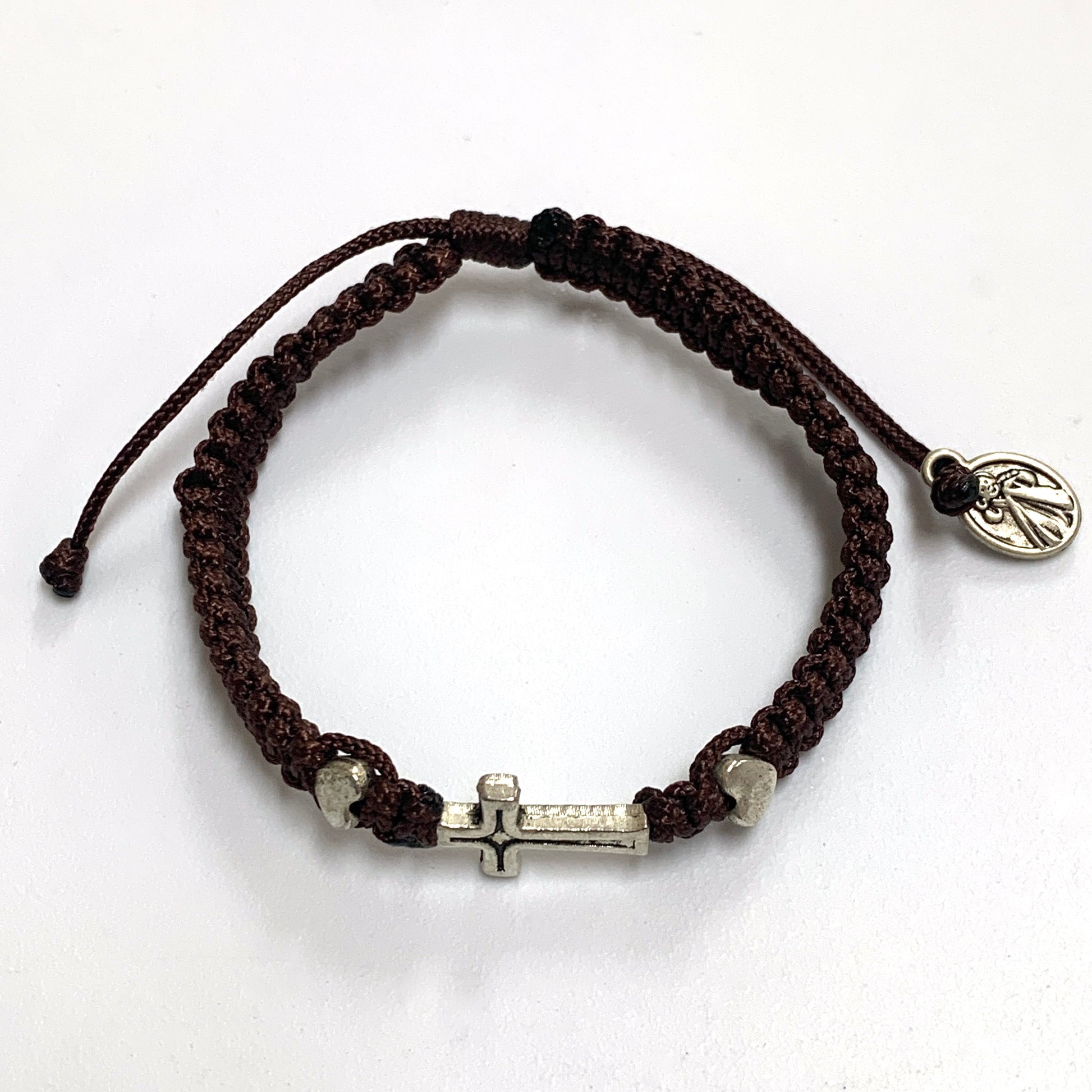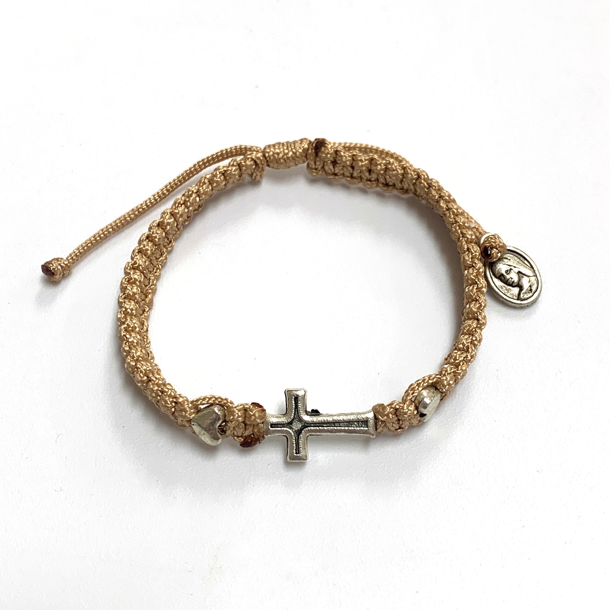 A braided bracelet with a metal cross is a fashionable way to display the power of Christ's redemption! This bracelet is perfect to stack with other accessories or be worn alone as a colorful and faith-filled addition to any outfit. These bracelets are brought to our shop with love by our Sisters on pilgrimage to Mexico!