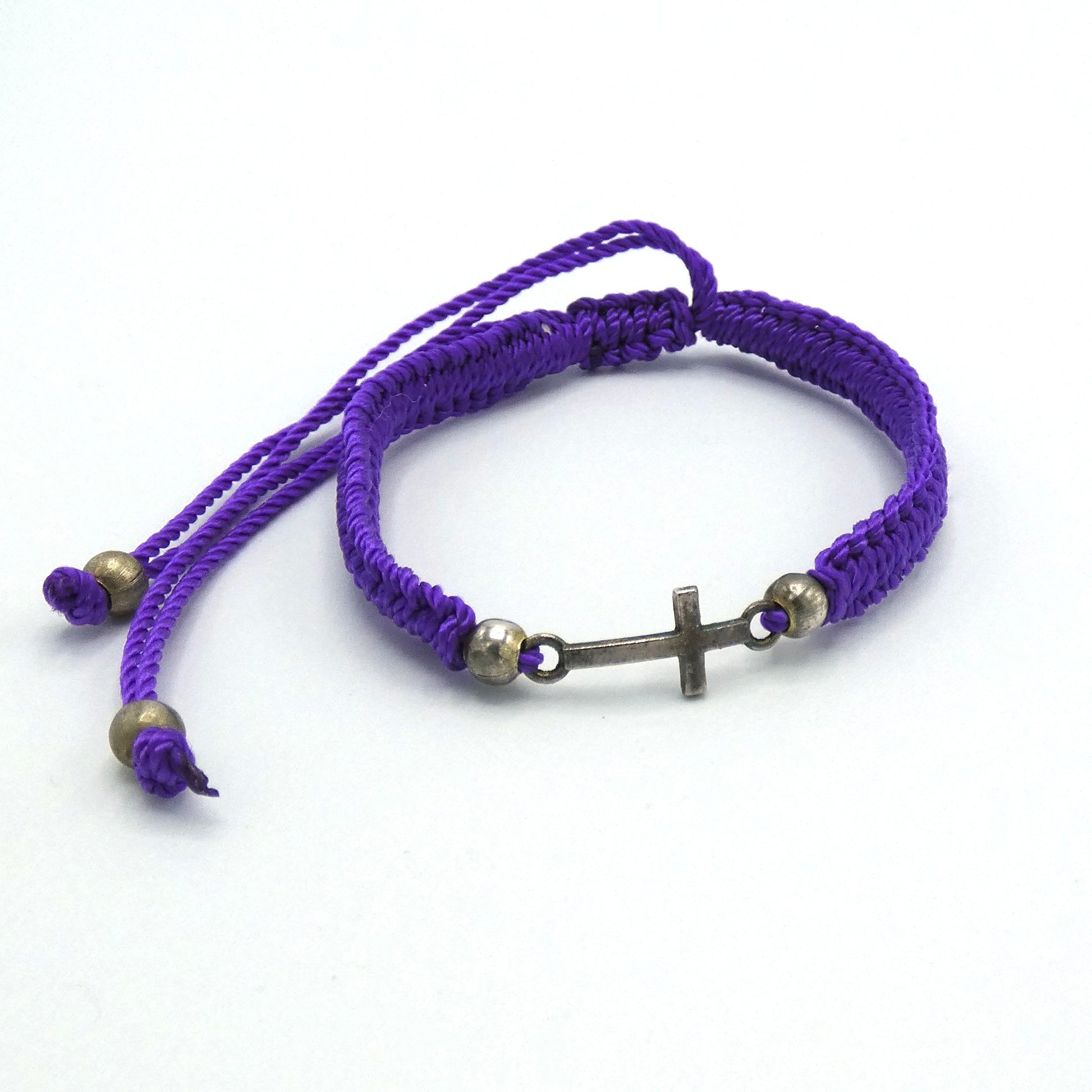 A braided bracelet with a metal cross is a fashionable way to display the power of Christ's redemption! This bracelet is perfect to stack with other accessories or be worn alone as a colorful and faith-filled addition to any outfit. These bracelets are brought to our shop with love by our Sisters on pilgrimage to Mexico!
