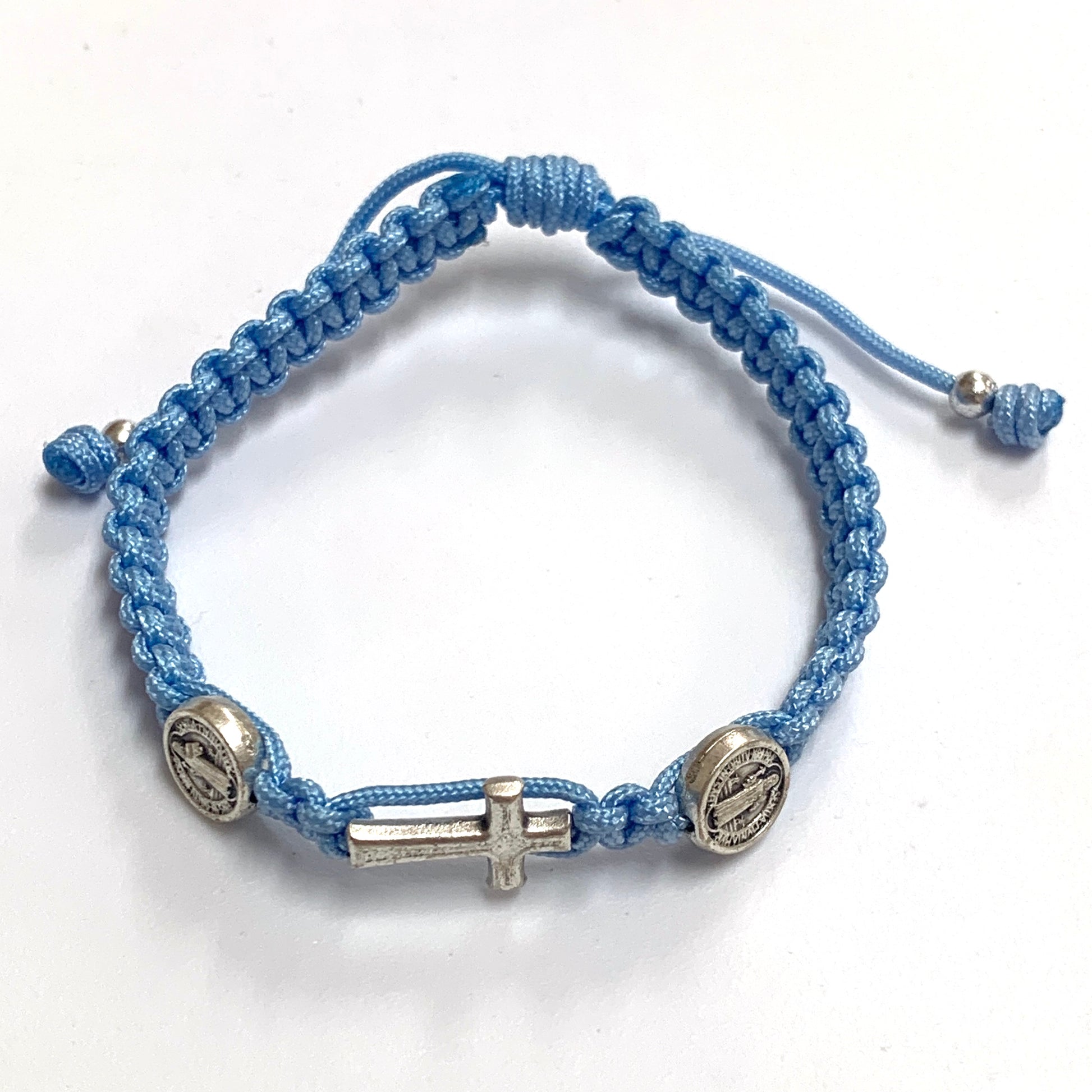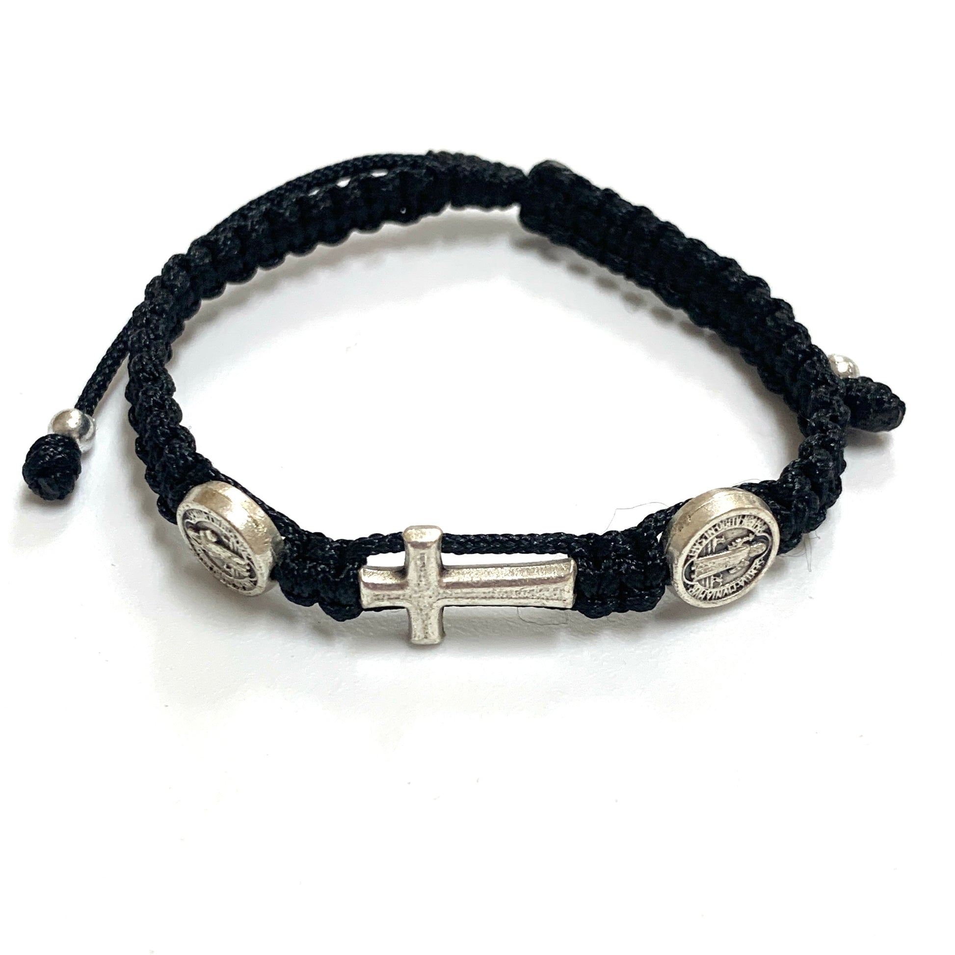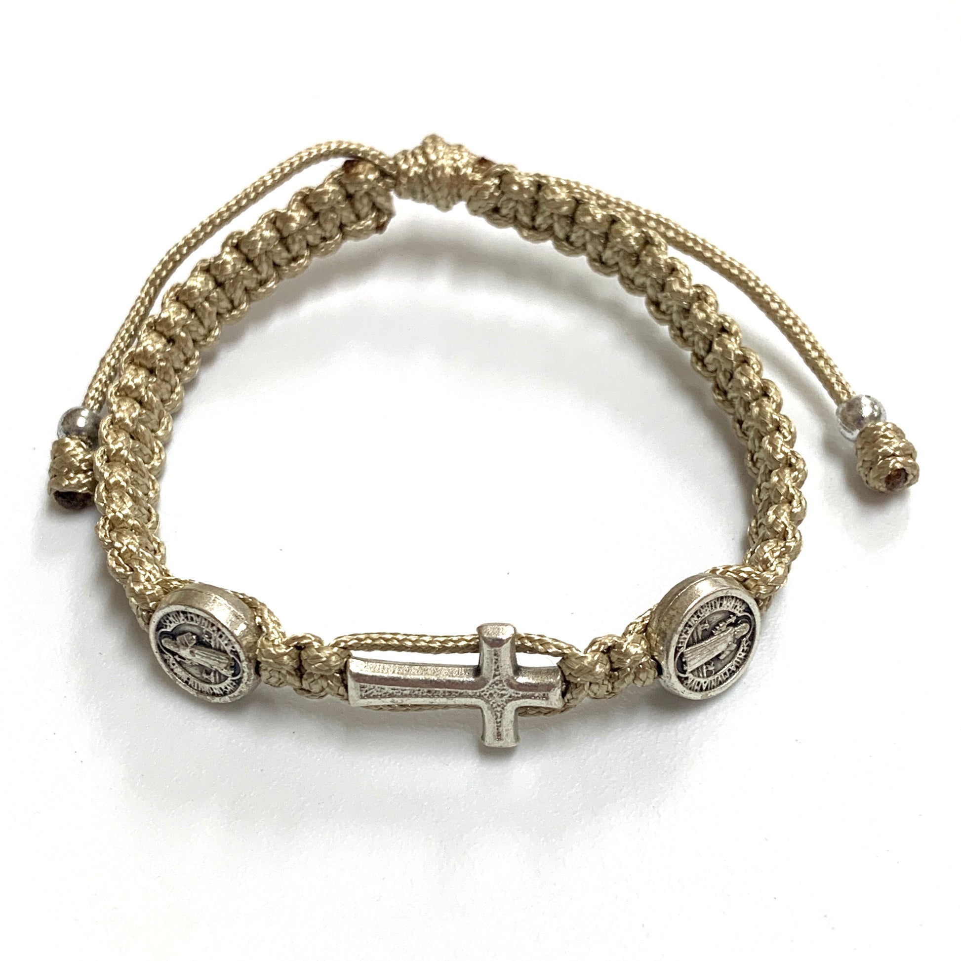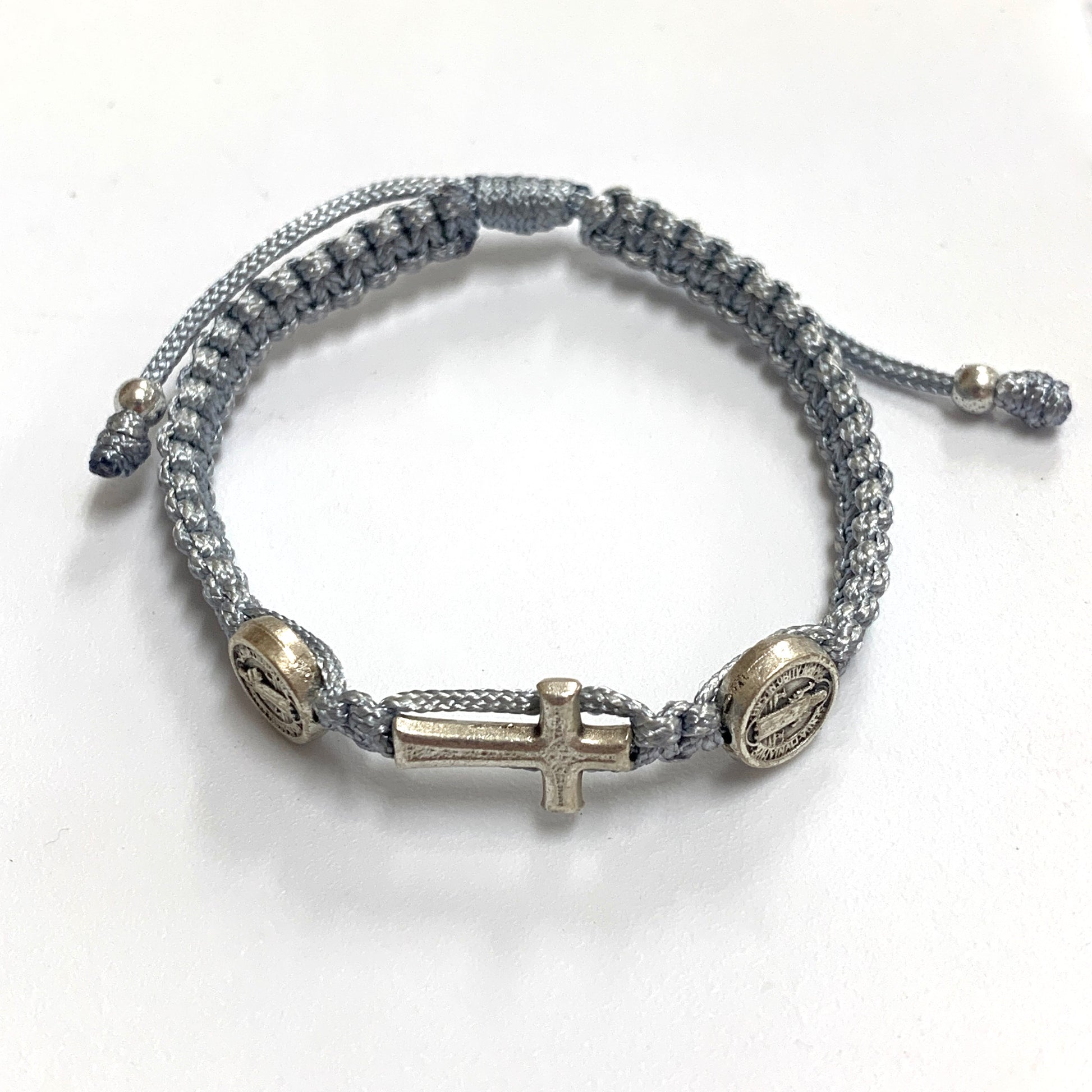 Braided Bracelet with St. Benedict Medal and Metal Cross of Assorted Colors
