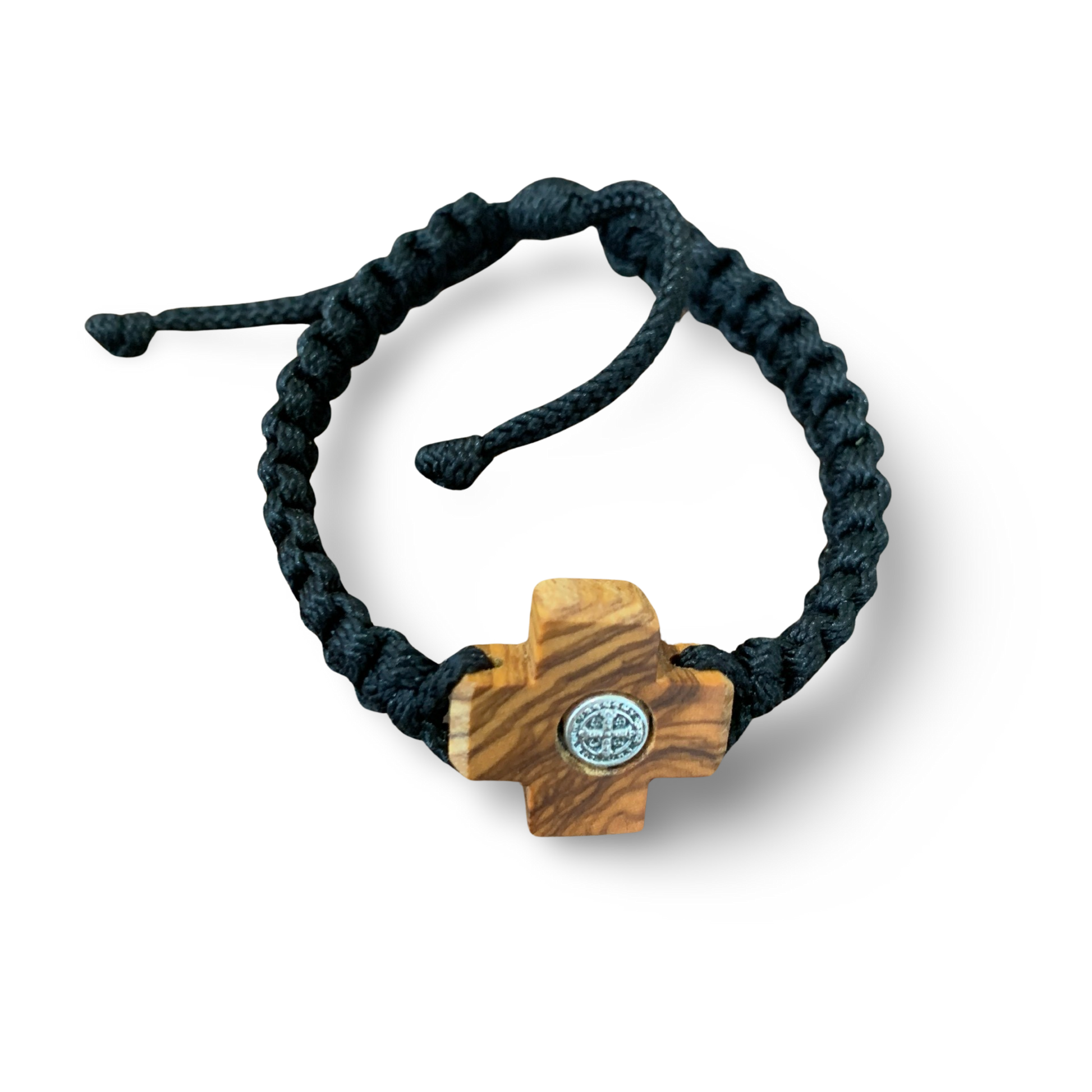 Braided Cord St. Benedict Wood Cross Masculine Bracelet