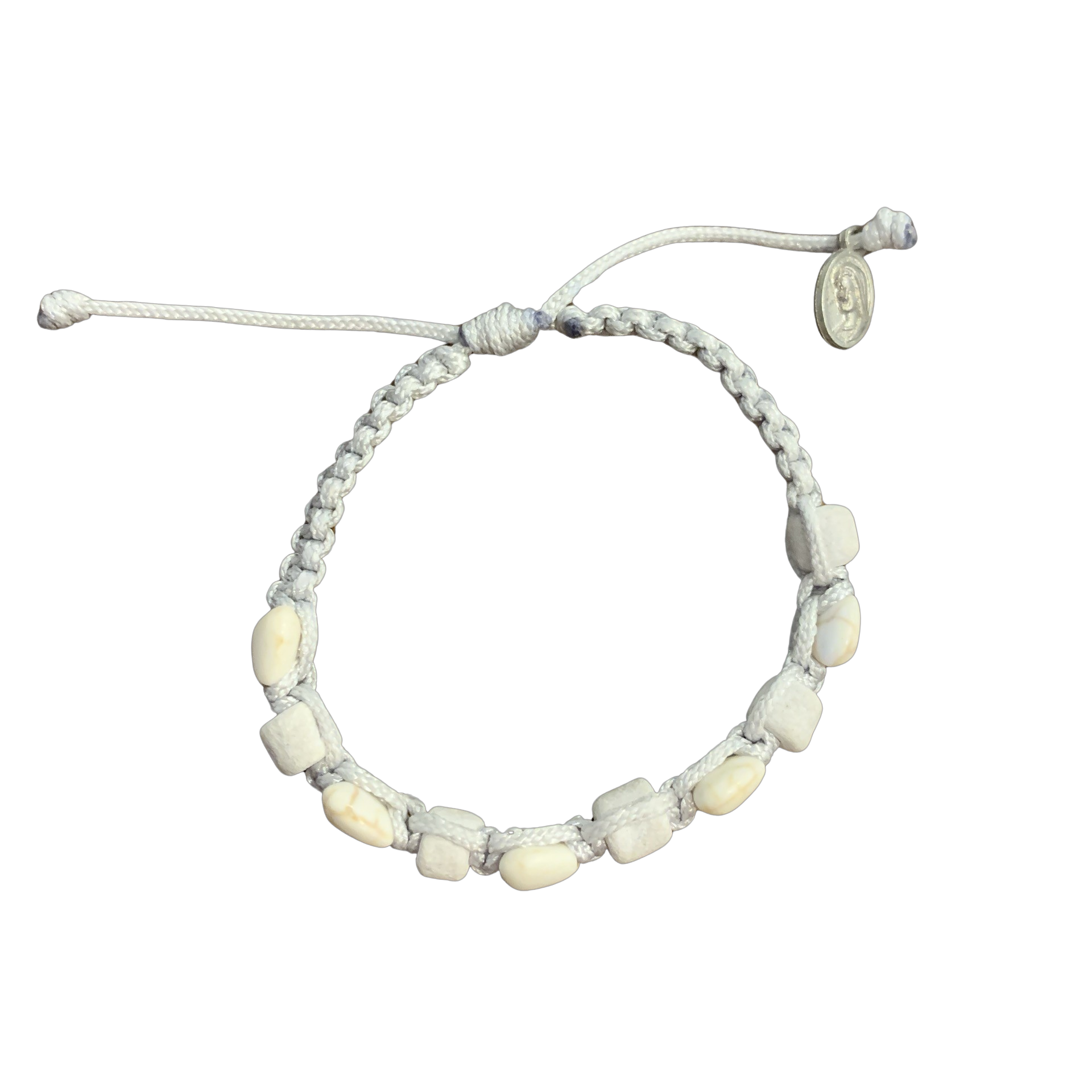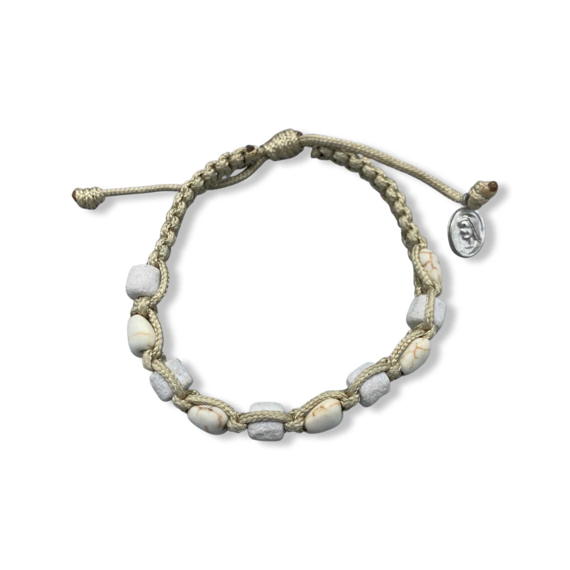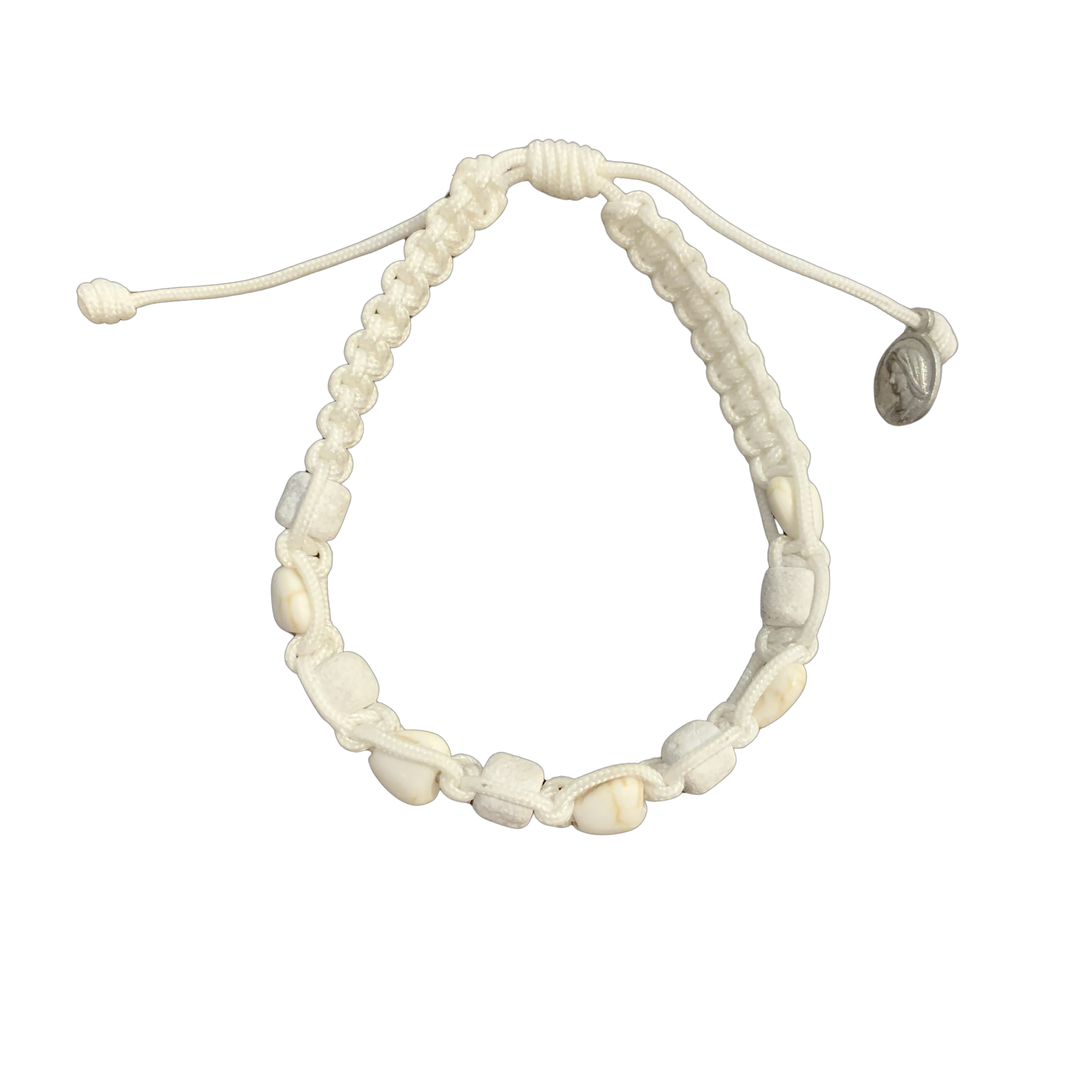 Braided Stone and Heart Decade Rosary Bracelet of Assorted Colors