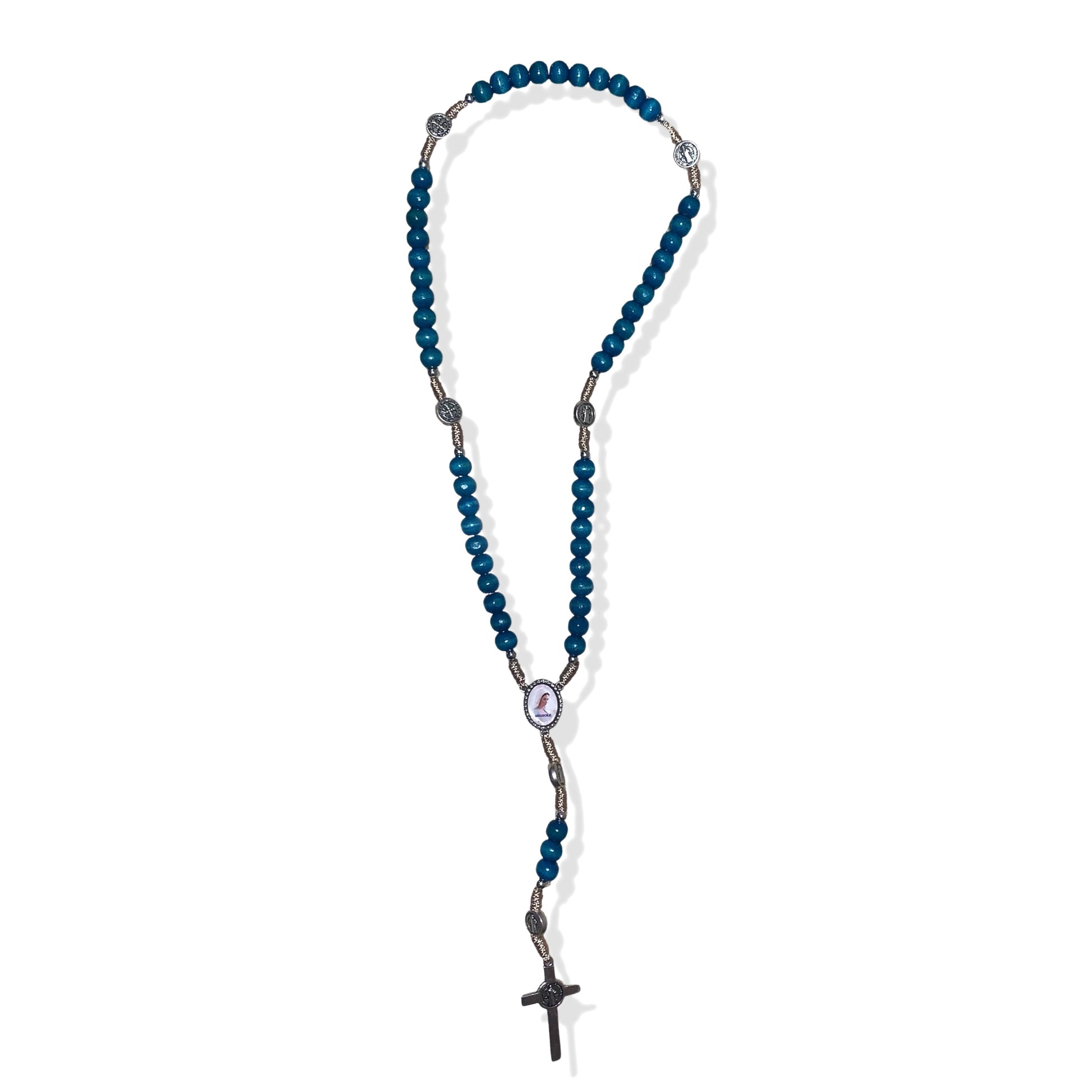 Bright Blue Bead with Cream String St. Benedict Rosary