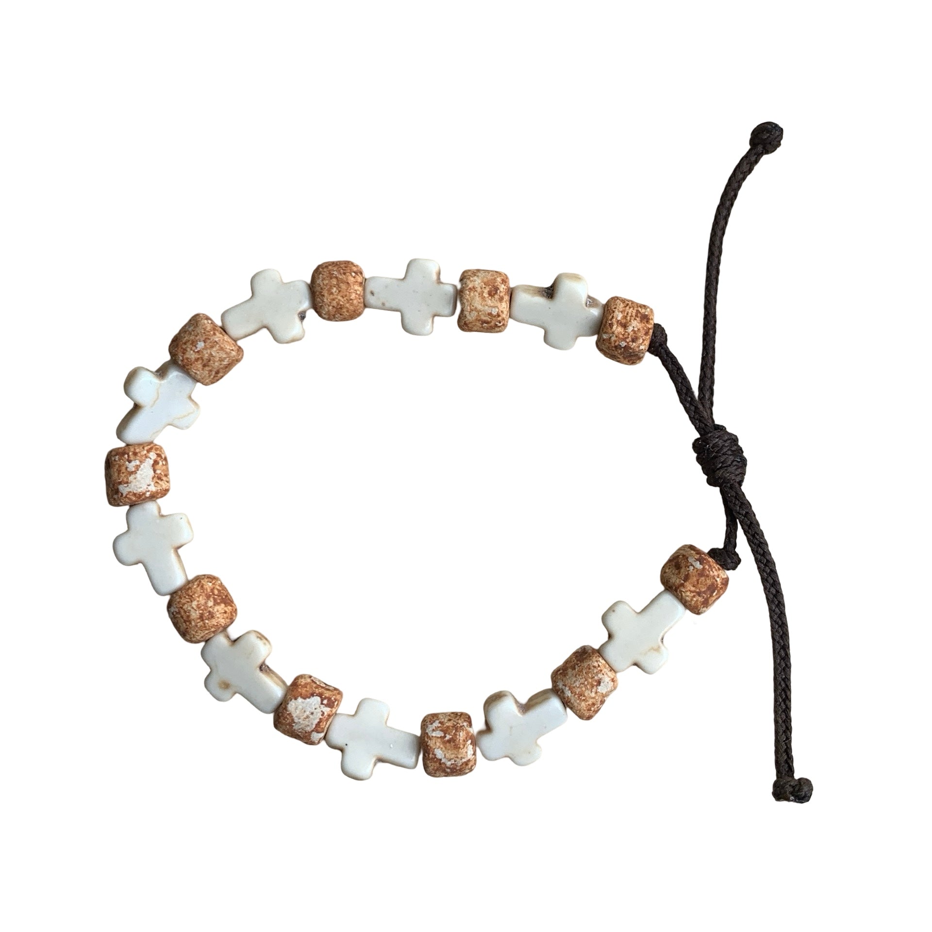 Brown Stone Decade Cord Bracelet with Stone Crosses