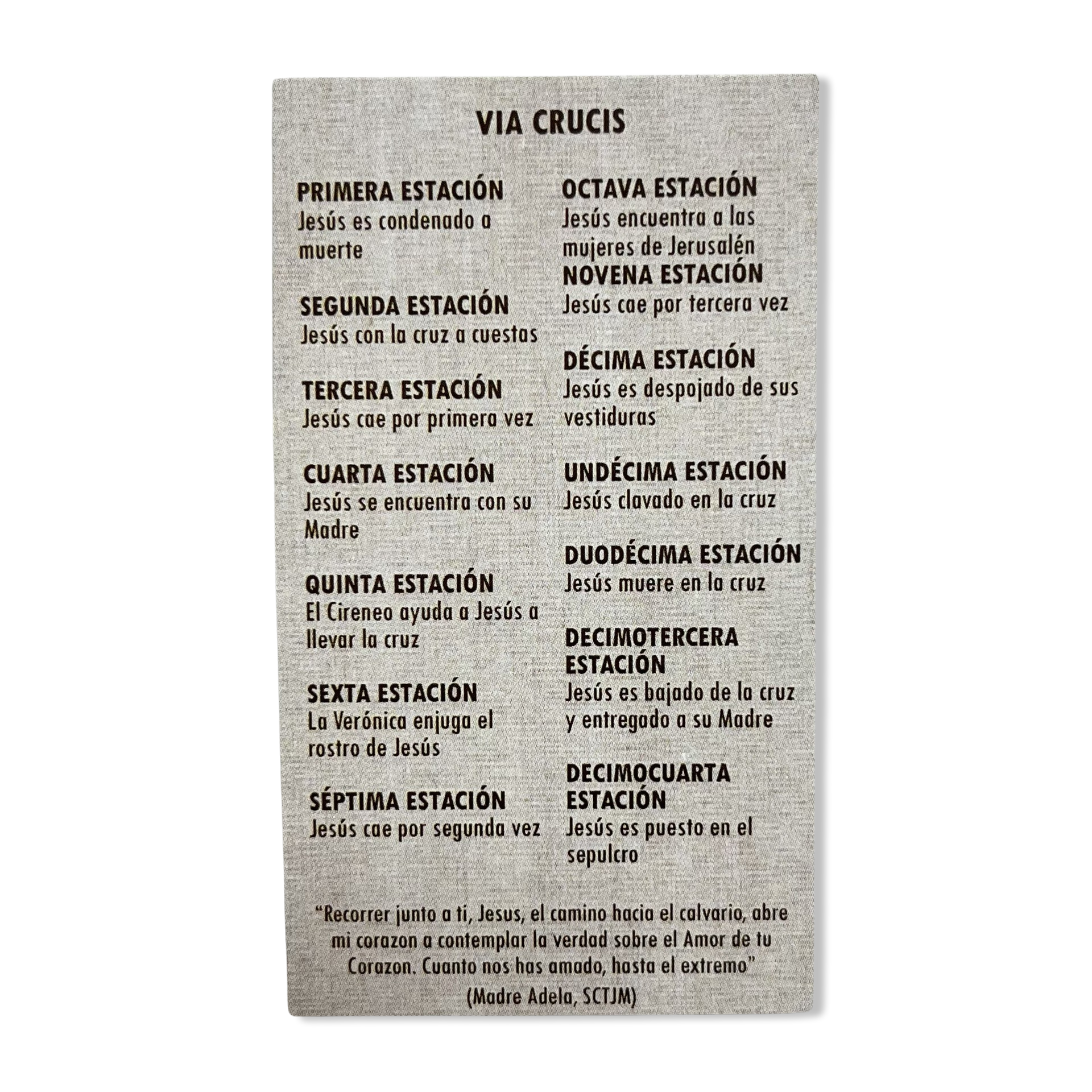 This Cross, which was touched to the Place of the Crucifixion, is accompanied by a small Way of the Cross Holy Card. A meaningful addition to your Lenten devotion, this Cross offers a tangible connection to the sacred site and a reminder of the Passion and Death of Our Lord.
