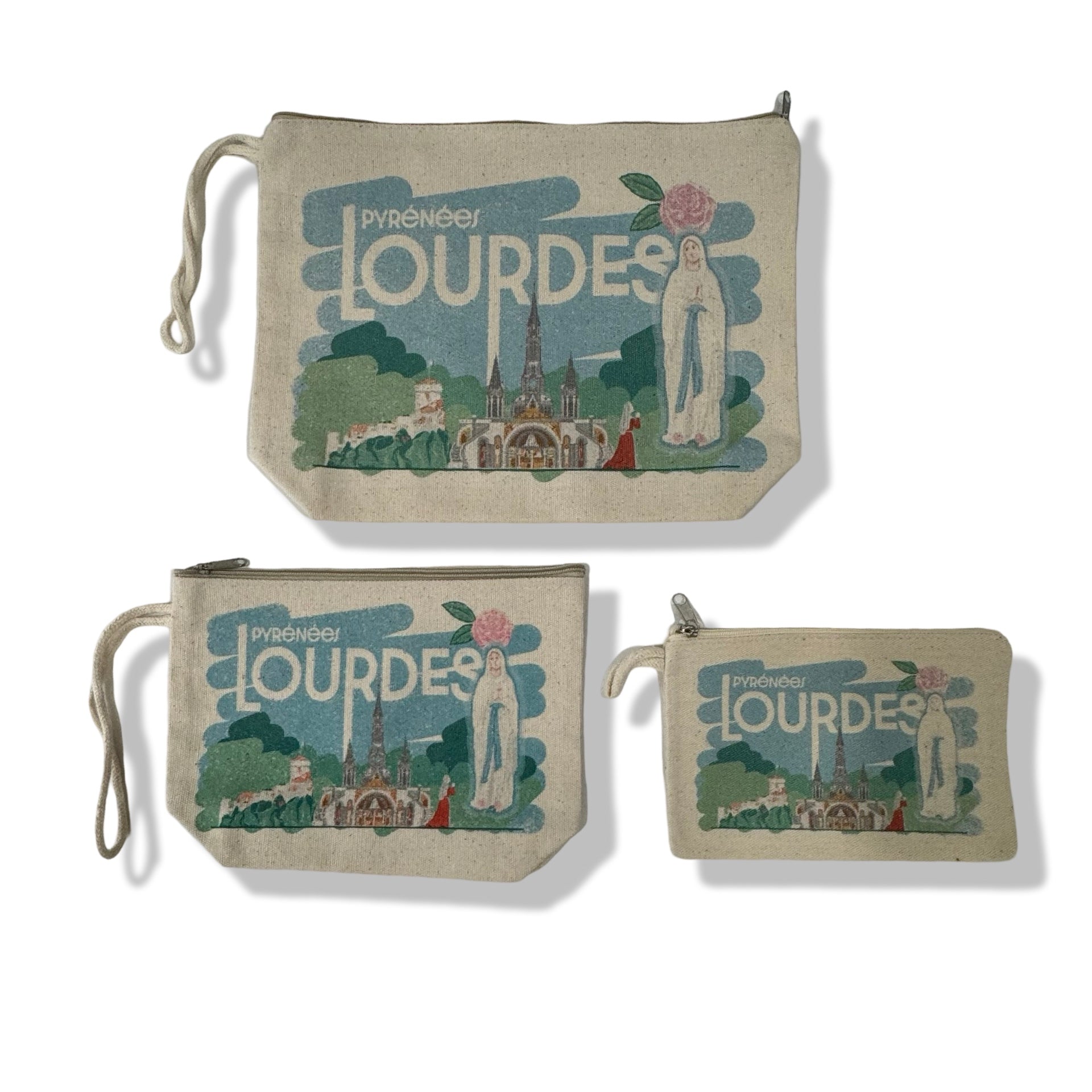 Carry a piece of Lourdes with you everywhere you go with our Canvas Zipper Lourdes Pouch! This unique pouch features an image of Our Lady of Lourdes and the Sanctuary, making it a perfect keepsake or gift for someone special. Made from high-quality canvas, it's sturdy and stylish. This product is brought with love by our Sisters on pilgrimages to Lourdes, France.