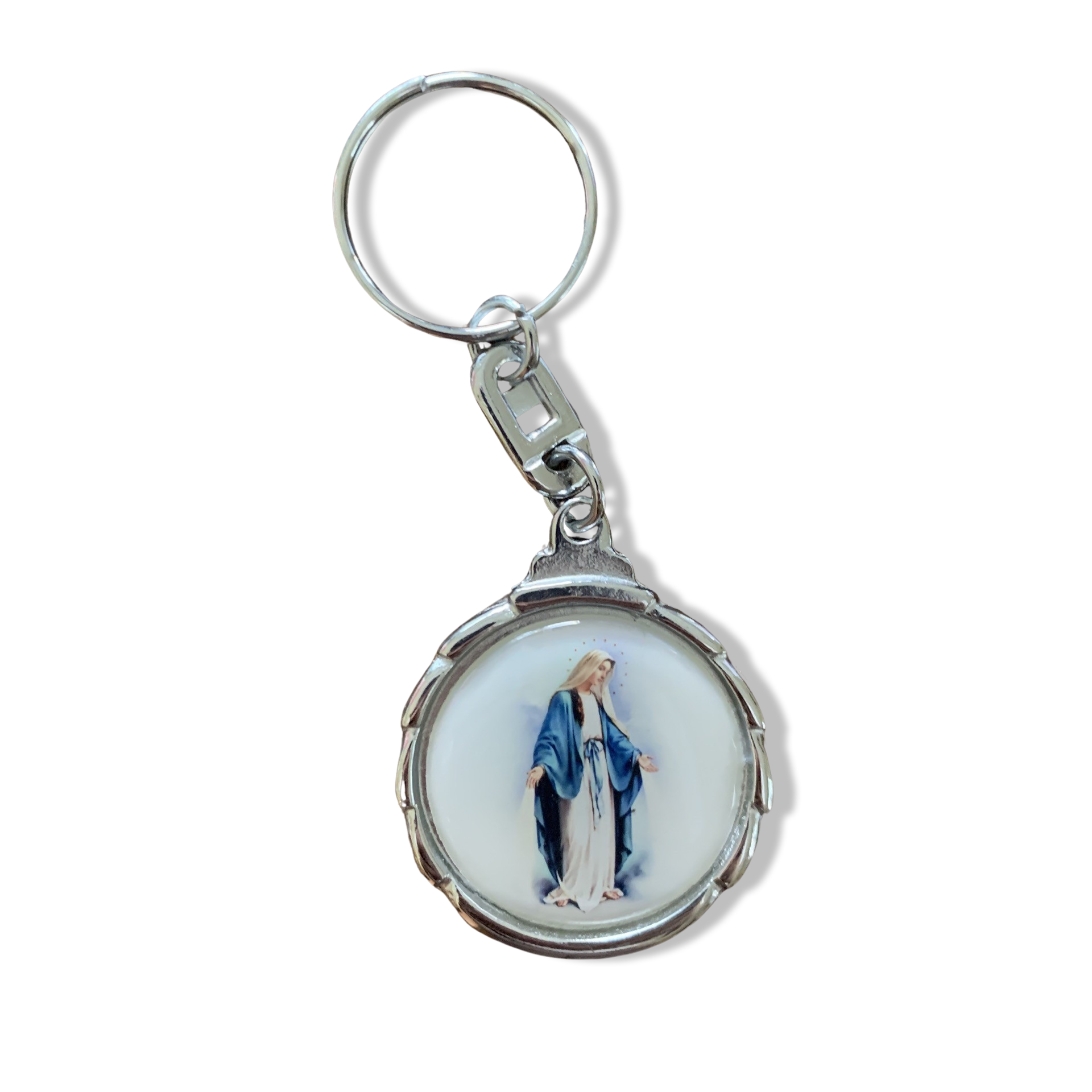 Elevate your style with our Circle Colored Miraculous Medal Keychain. Carry the protection of Our Lady with you wherever you go.
