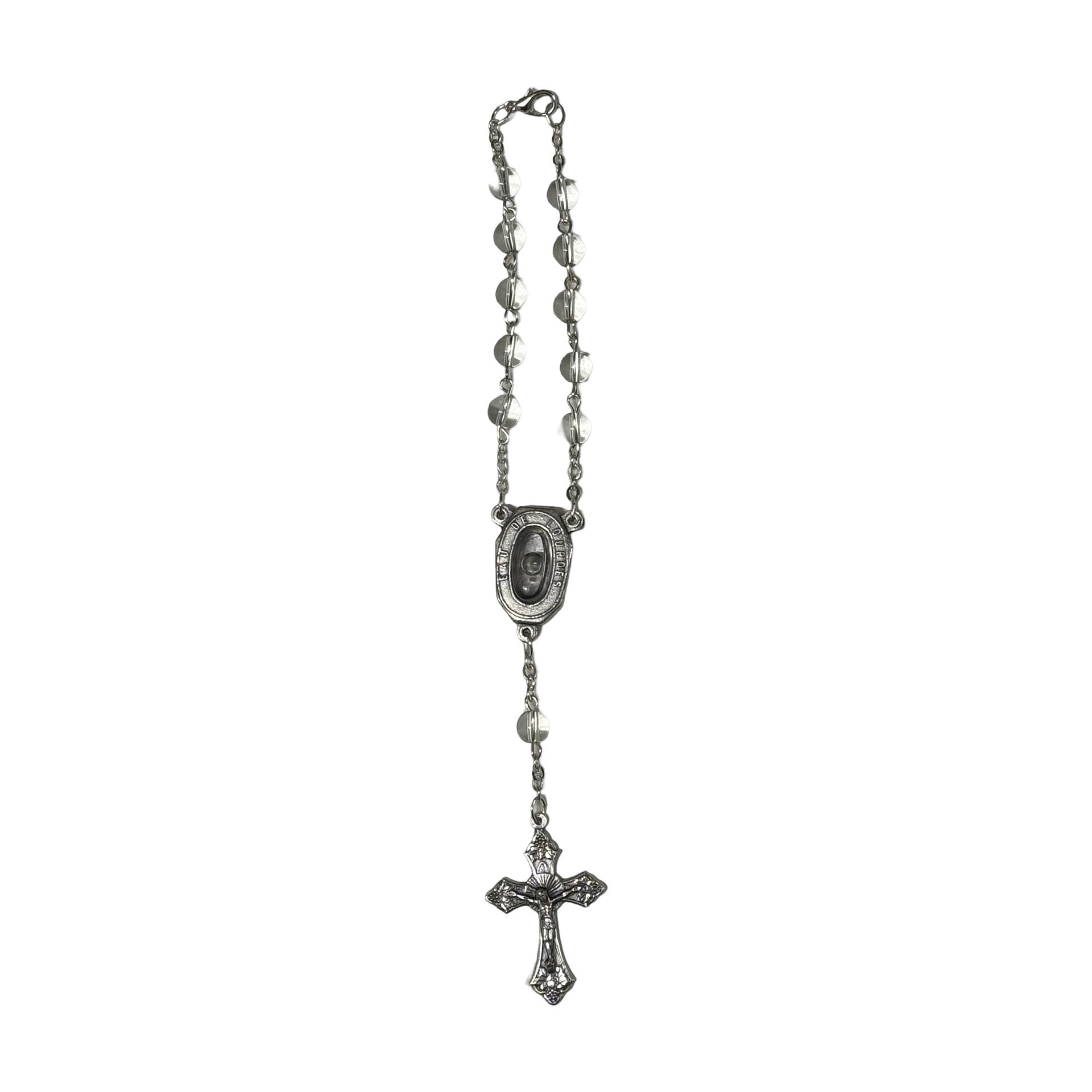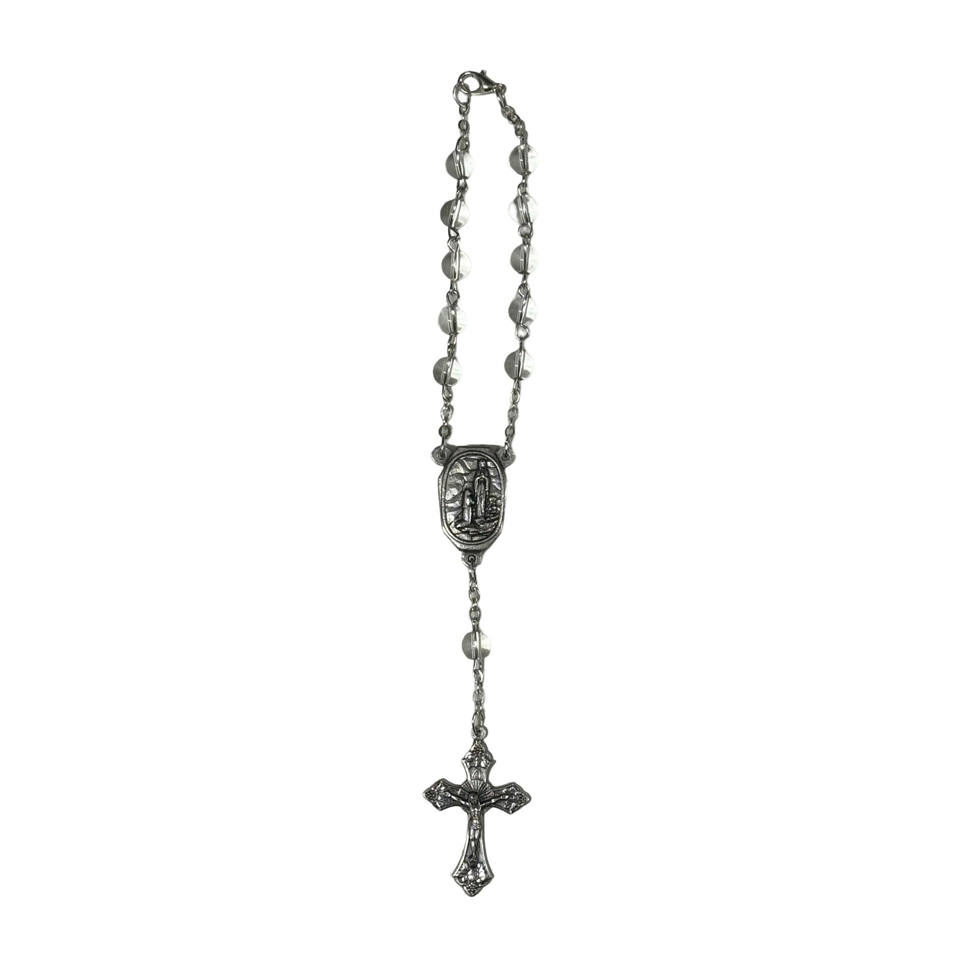 This Lourdes decade rosary is made of crystal beads. The beautiful medal of Our Lady of Lourdes with Lourdes water inside makes this item a special memento of the Sanctuary of Lourdes! A Lourdes rosary is perfect to pray for the sick, poor, and suffering. This product is brought with love by our Sisters on pilgrimages to Lourdes, France.