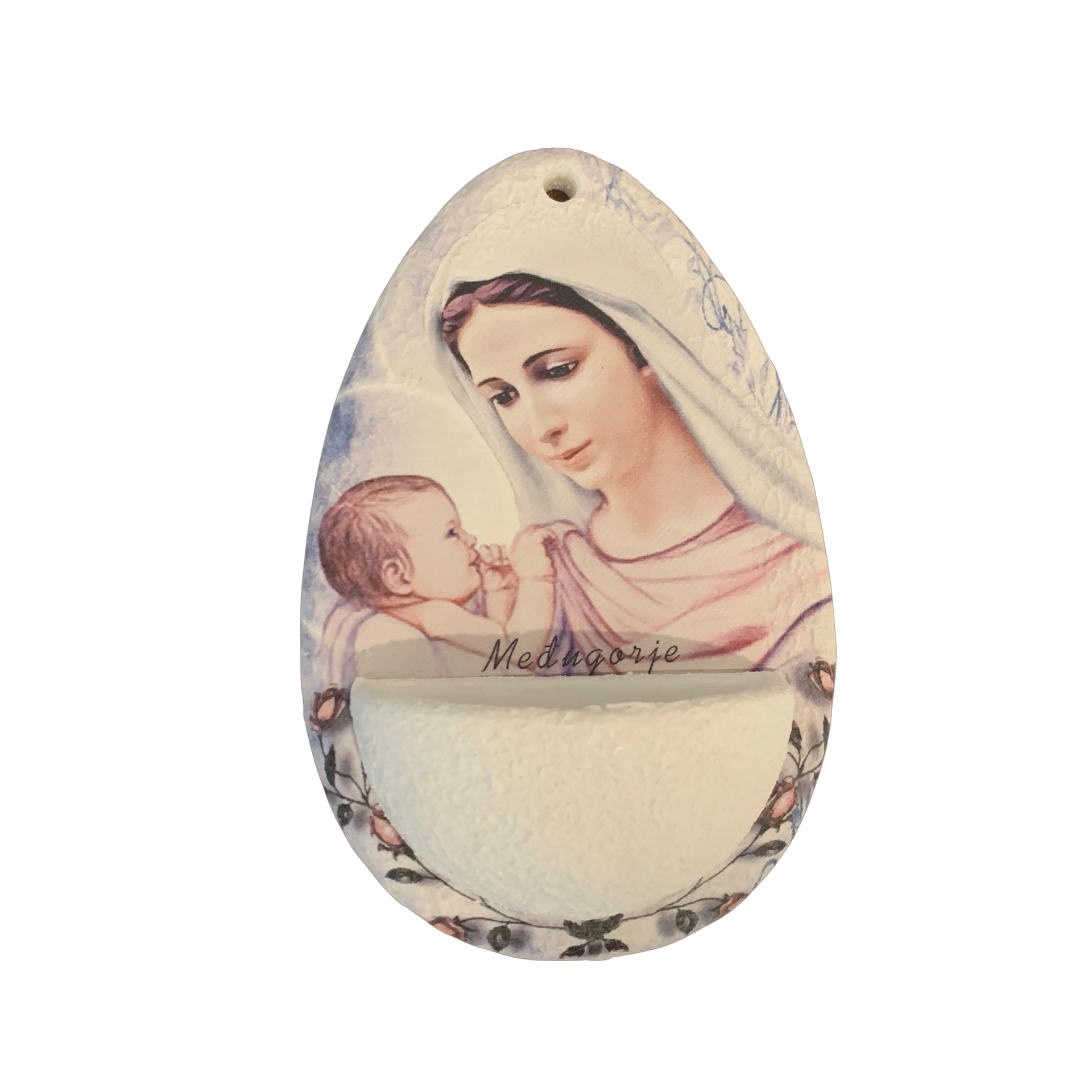 This water font is a beautiful image of Our Lady with the Infant Jesus.