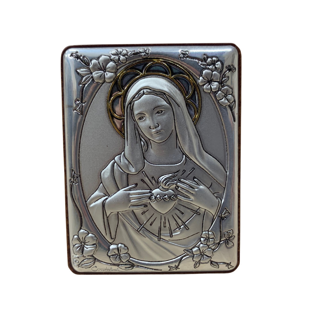 Colored Square Silver Image of the Immaculate Heart of Mary