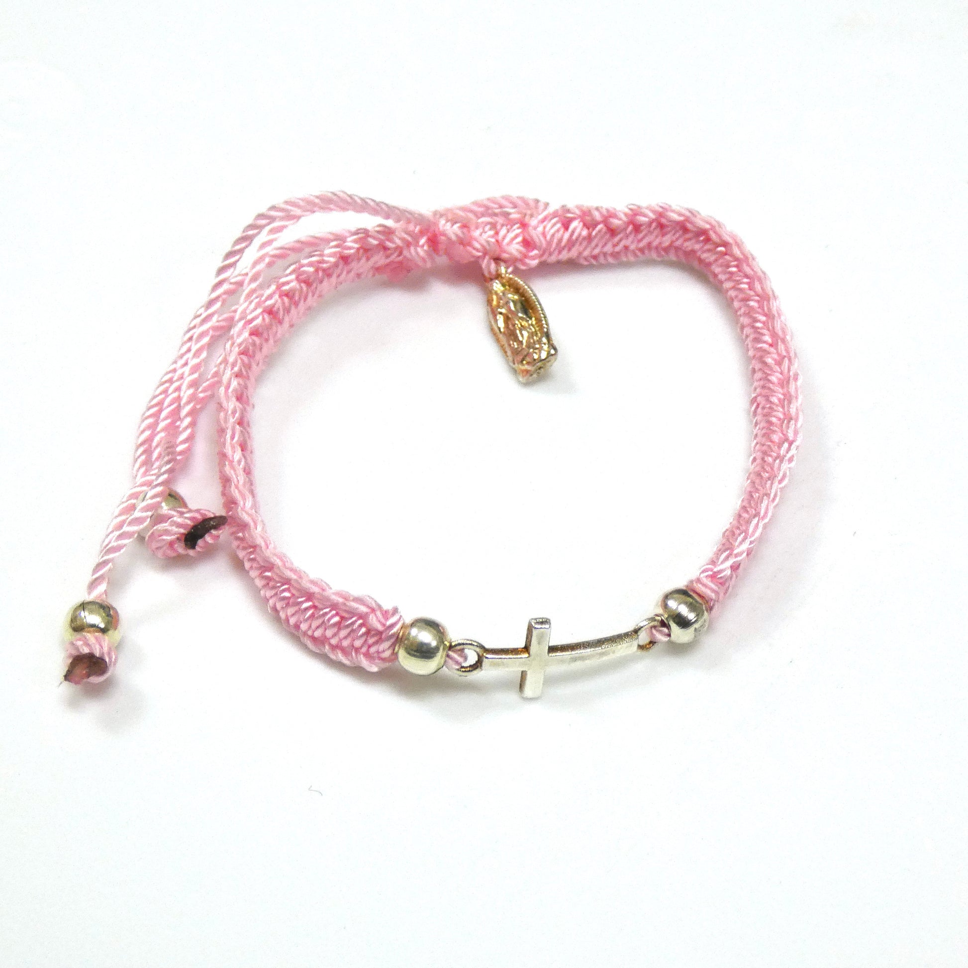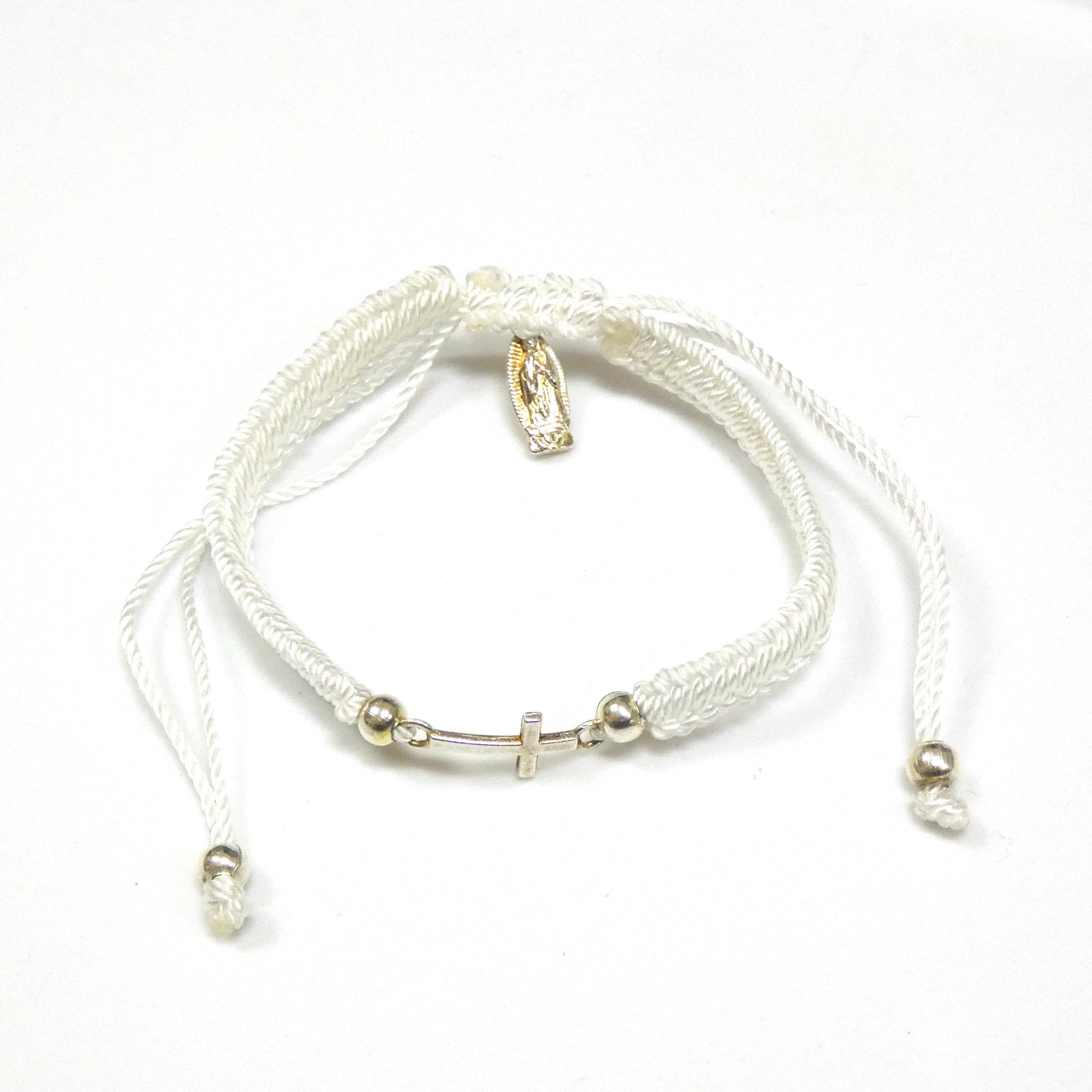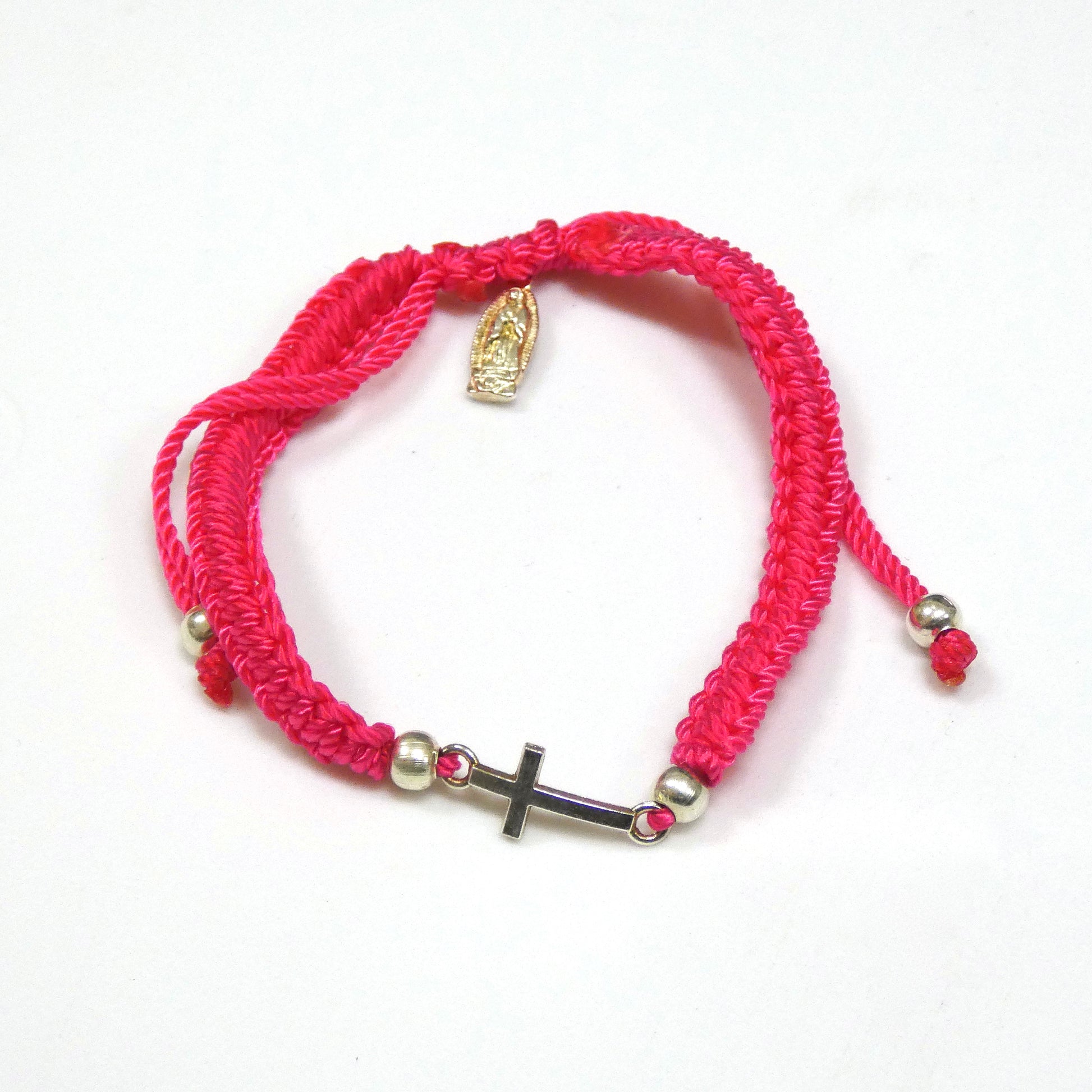 Braided Bracelet of Assorted Colors with Metal Cross and Guadalupe Medal