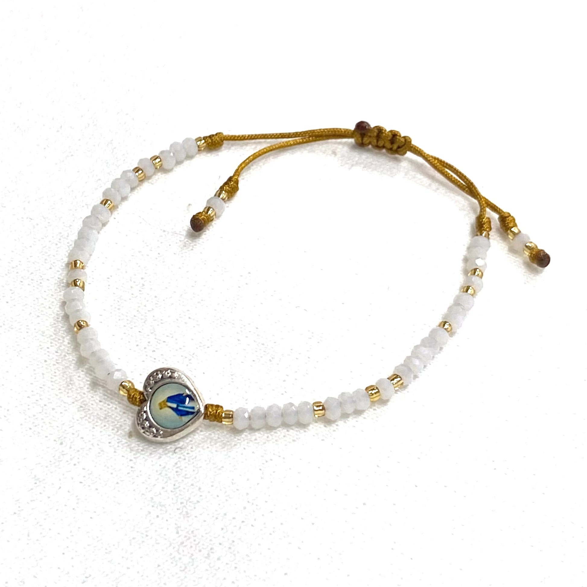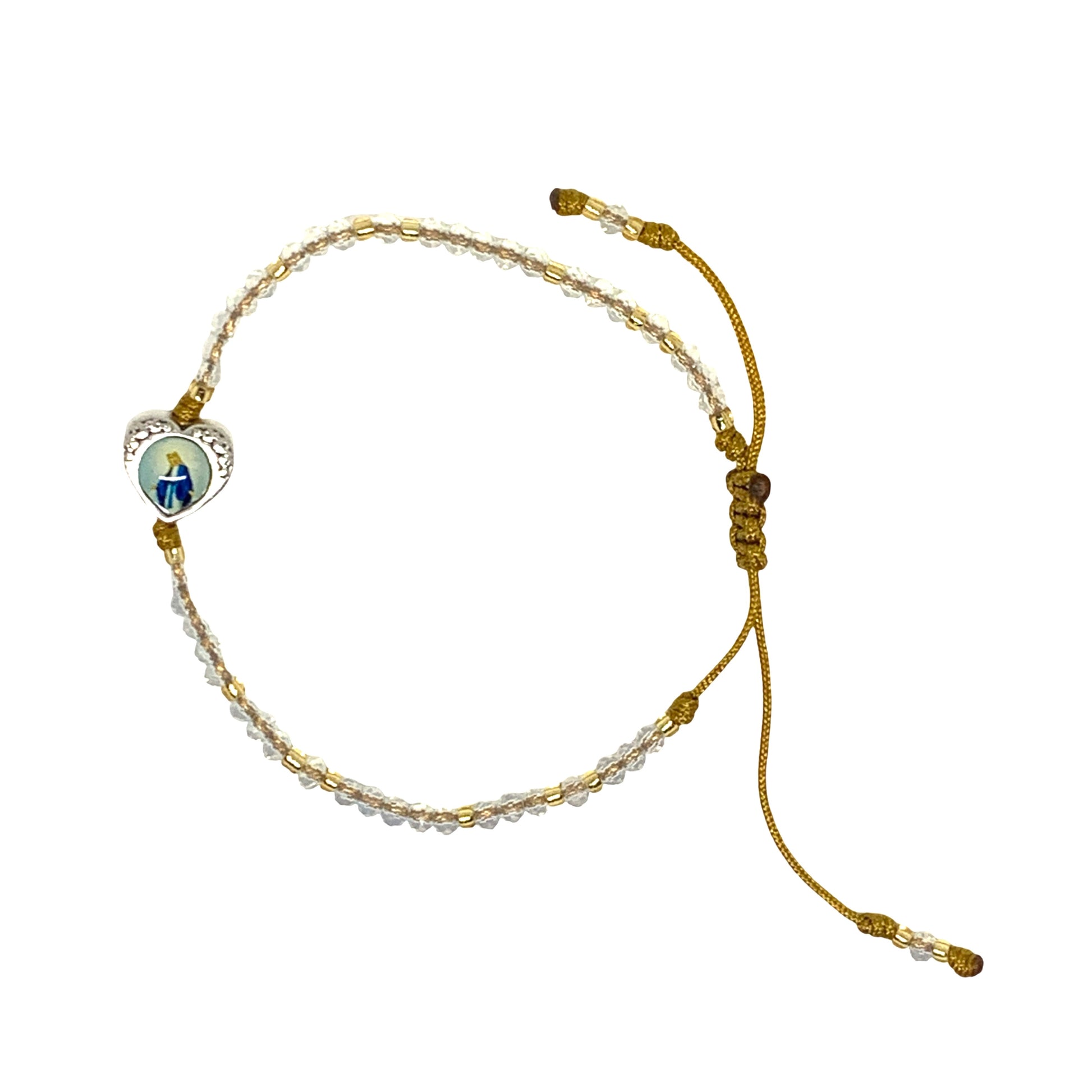 Crystal Bead Adjustable Bracelet with Marian Heart Pendant