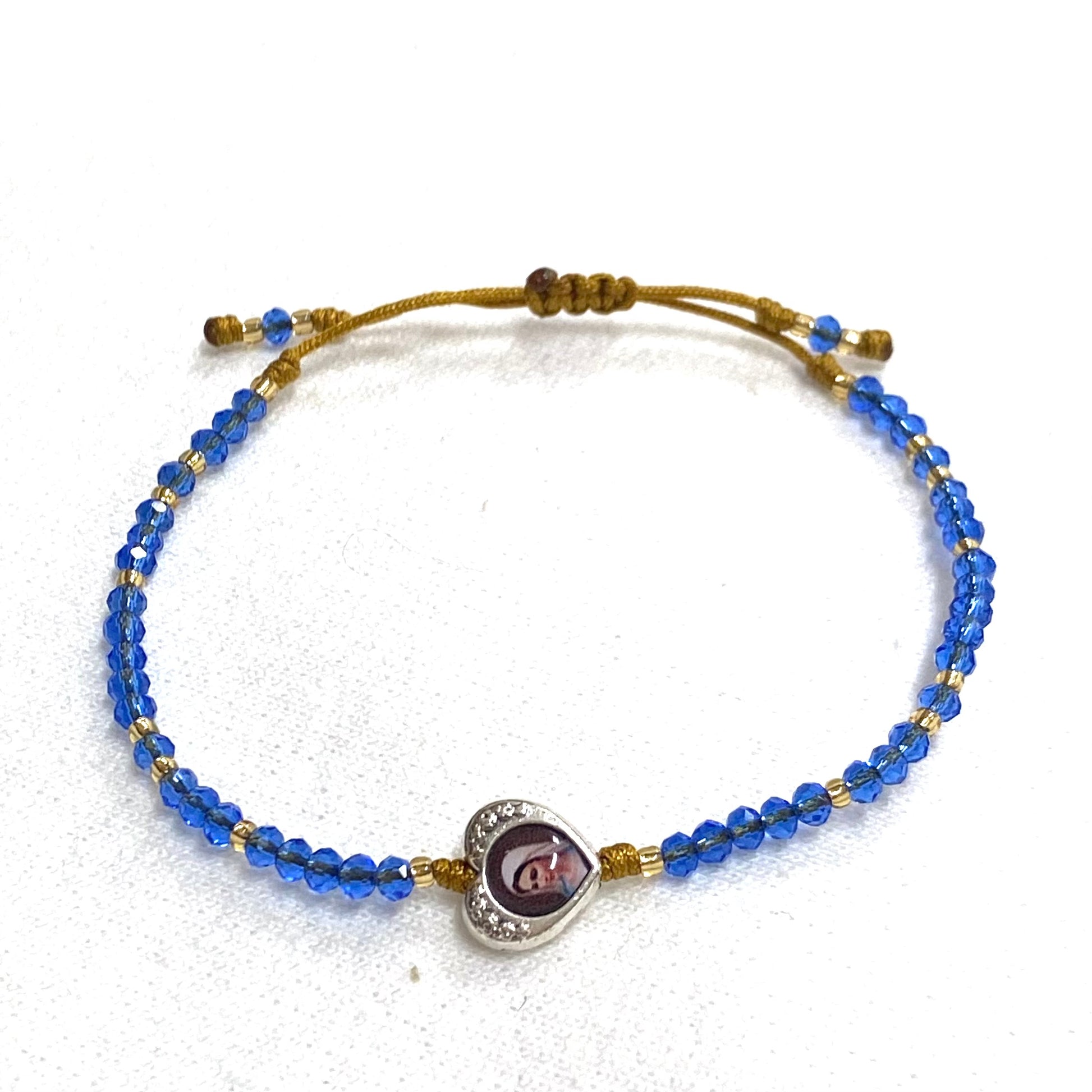 A dainty crystal-beaded bracelet is a delicate and lovely gift for any woman, great to wear every day and complementary with other pieces of jewelry! At the center of this adjustable bracelet is an image of Our Lady encased in a silver heart.