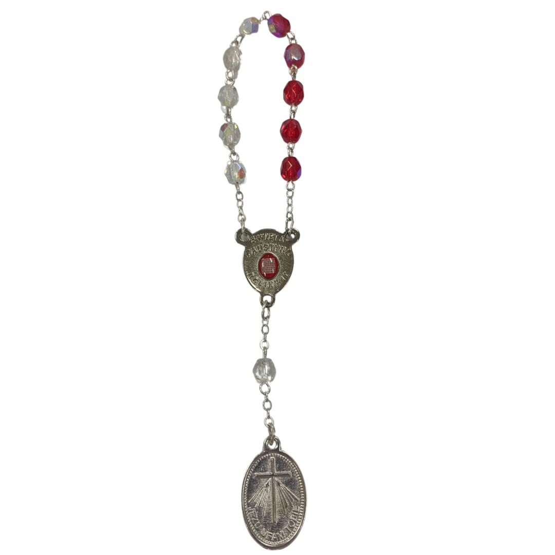 A decade rosary which is joined together by an image and relic of St. Faustina Kowalska. This decade is perfect to carry with you to recite the chaplet of Divine Mercy. A great gift for First Reconciliation or anyone in need of God's abounding mercy. Included with this item is a Divine Mercy prayer card in English.
