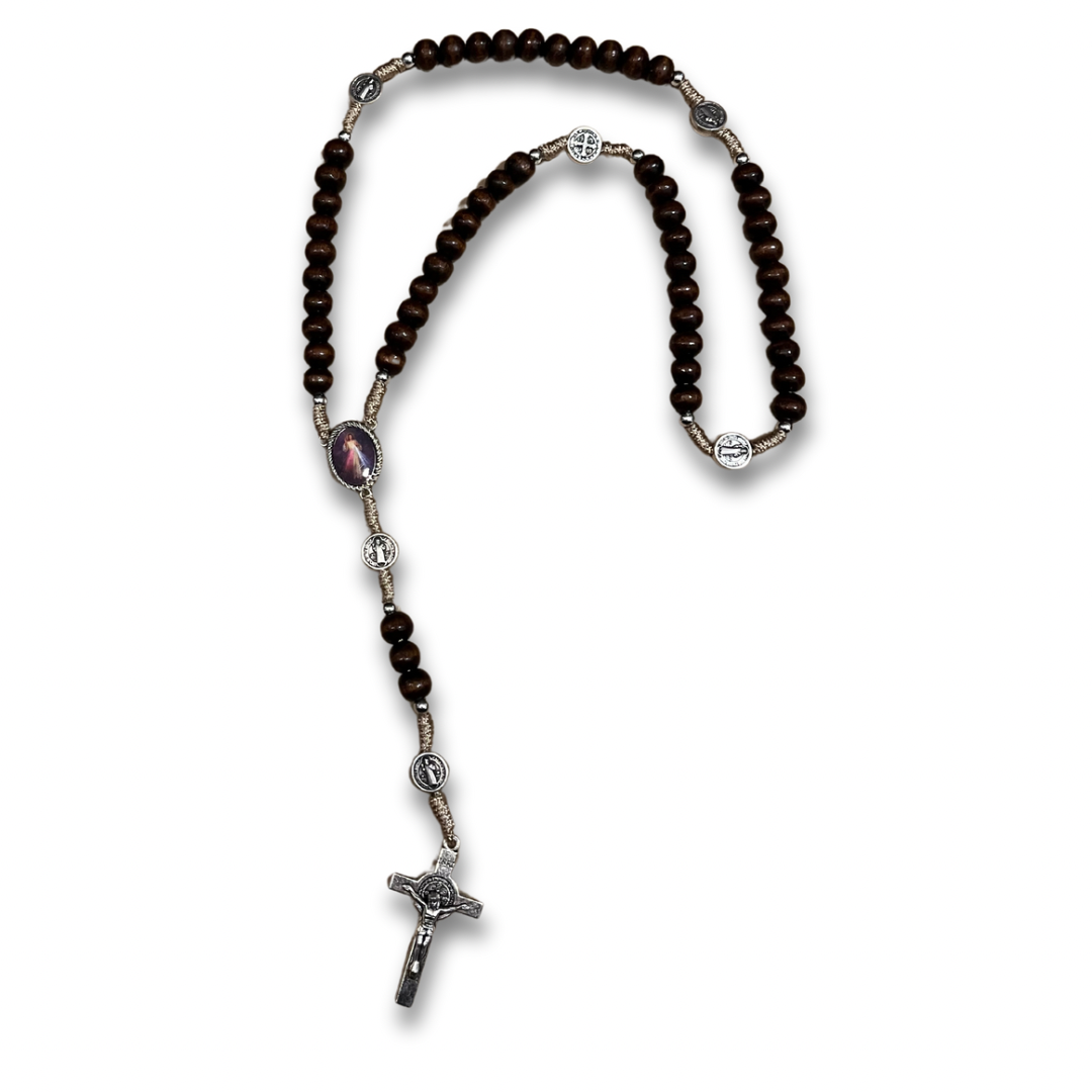 Dark Wood Bead with Beige String St. Benedict Rosary