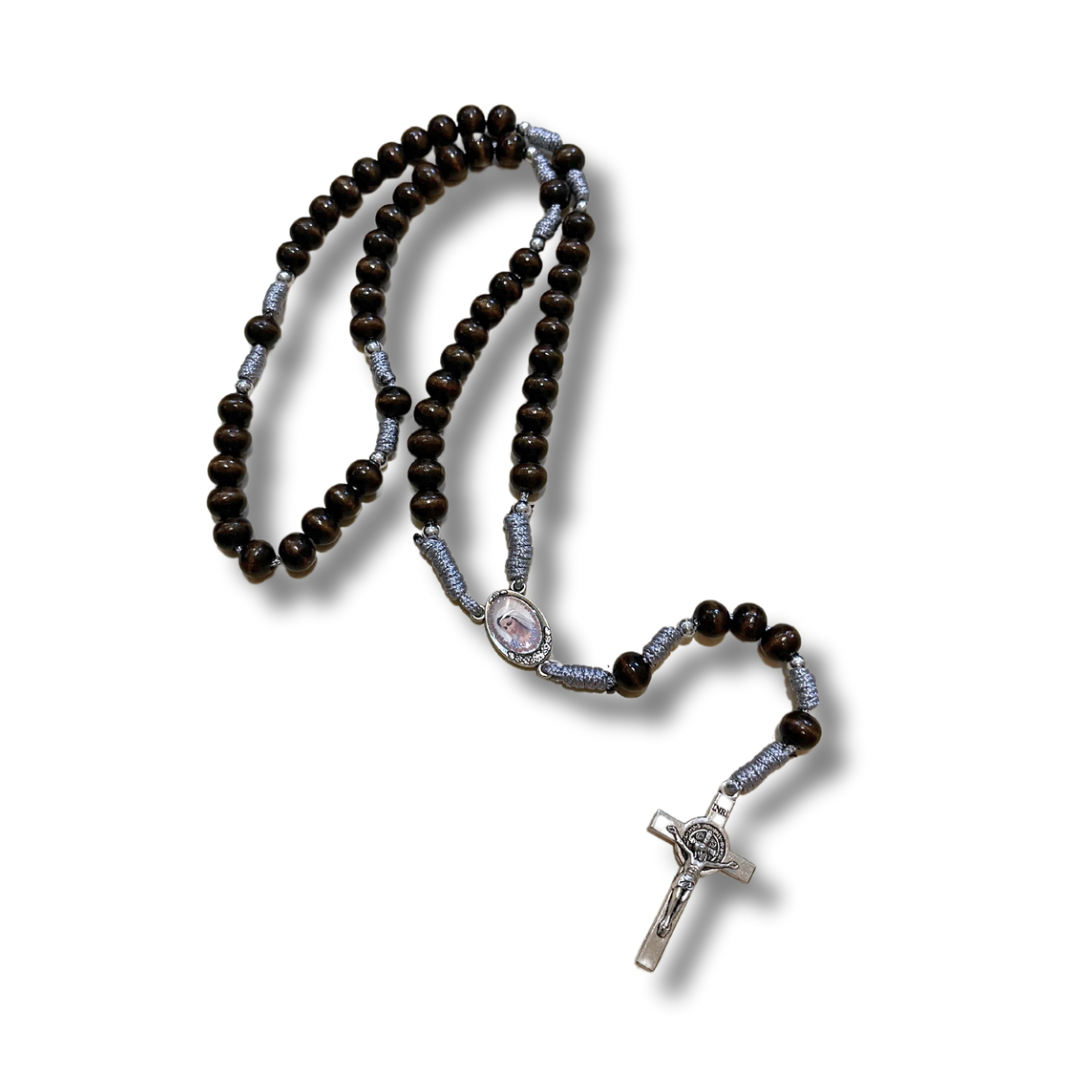 Dark Wood Bead with Grey String St. Benedict Rosary