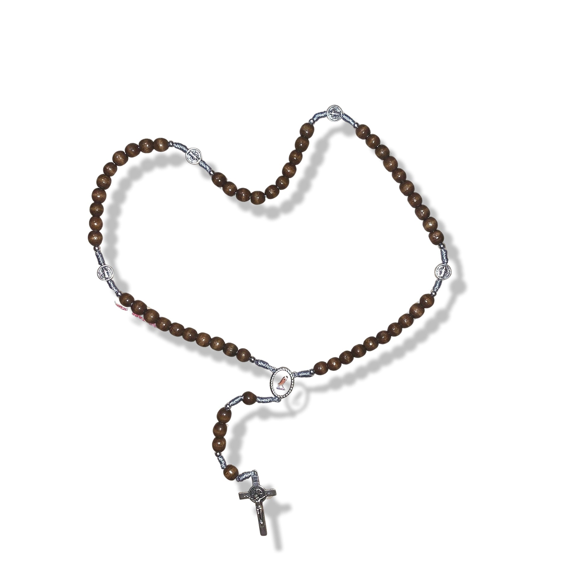 Dark Wood Bead with Blue String St. Benedict Rosary