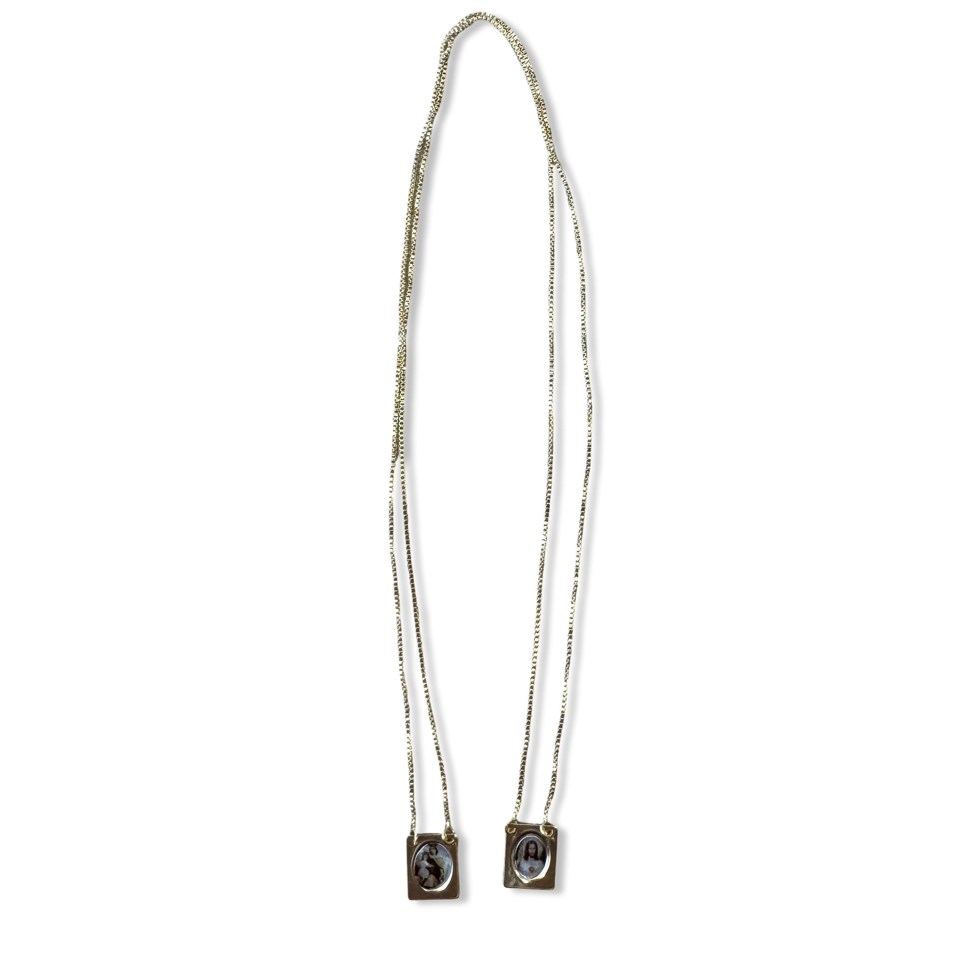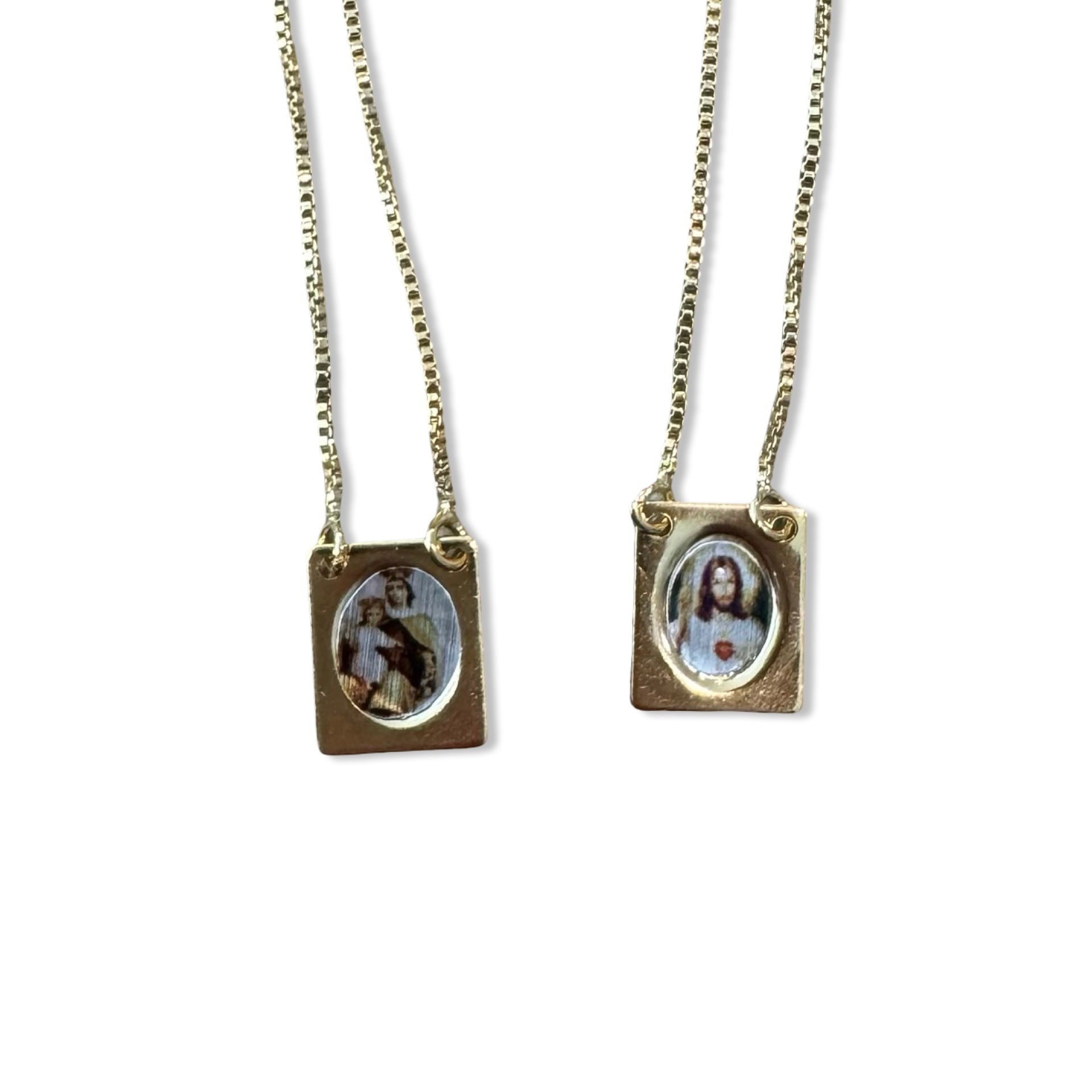 Gold Rectangular Scapular Necklace with Circle Colored Image - Front and Back
