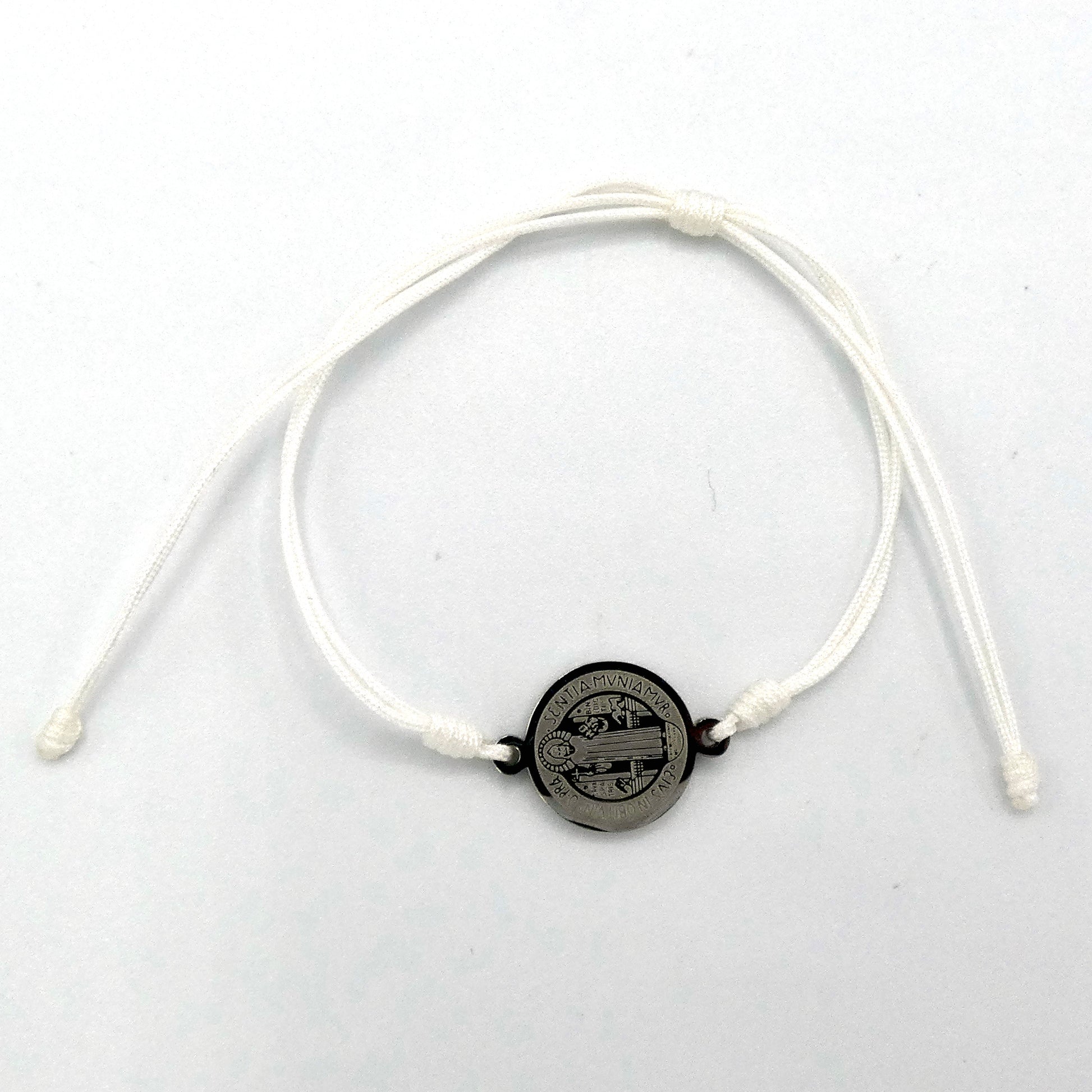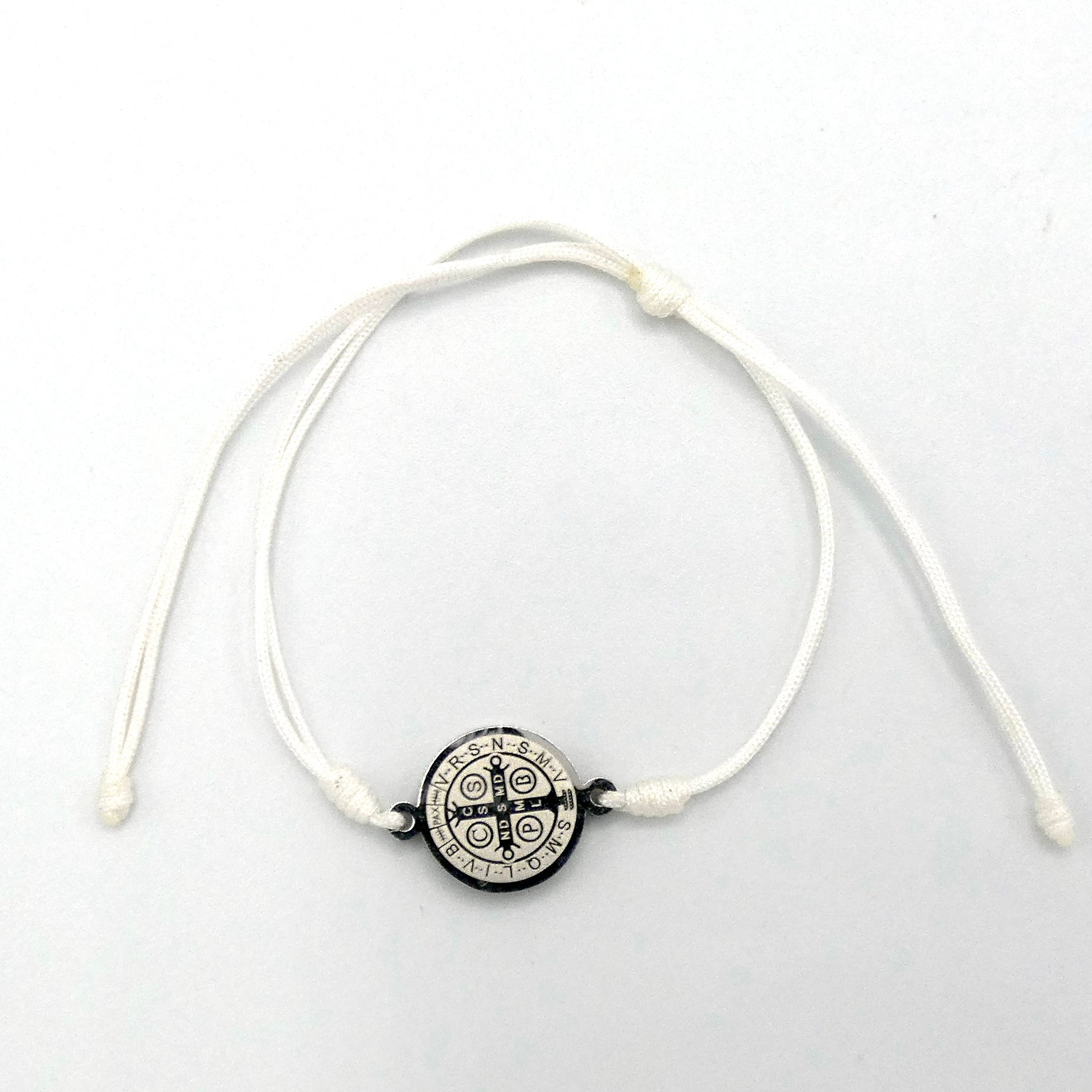 This engraved St. Benedict medal bracelet is made of a durable cord for everyday wear. It is perfect to stack with other accessories or be worn alone as a constant source of spiritual protection. These bracelets are brought to our shop with love by our Sisters on pilgrimage to Medugorje!
