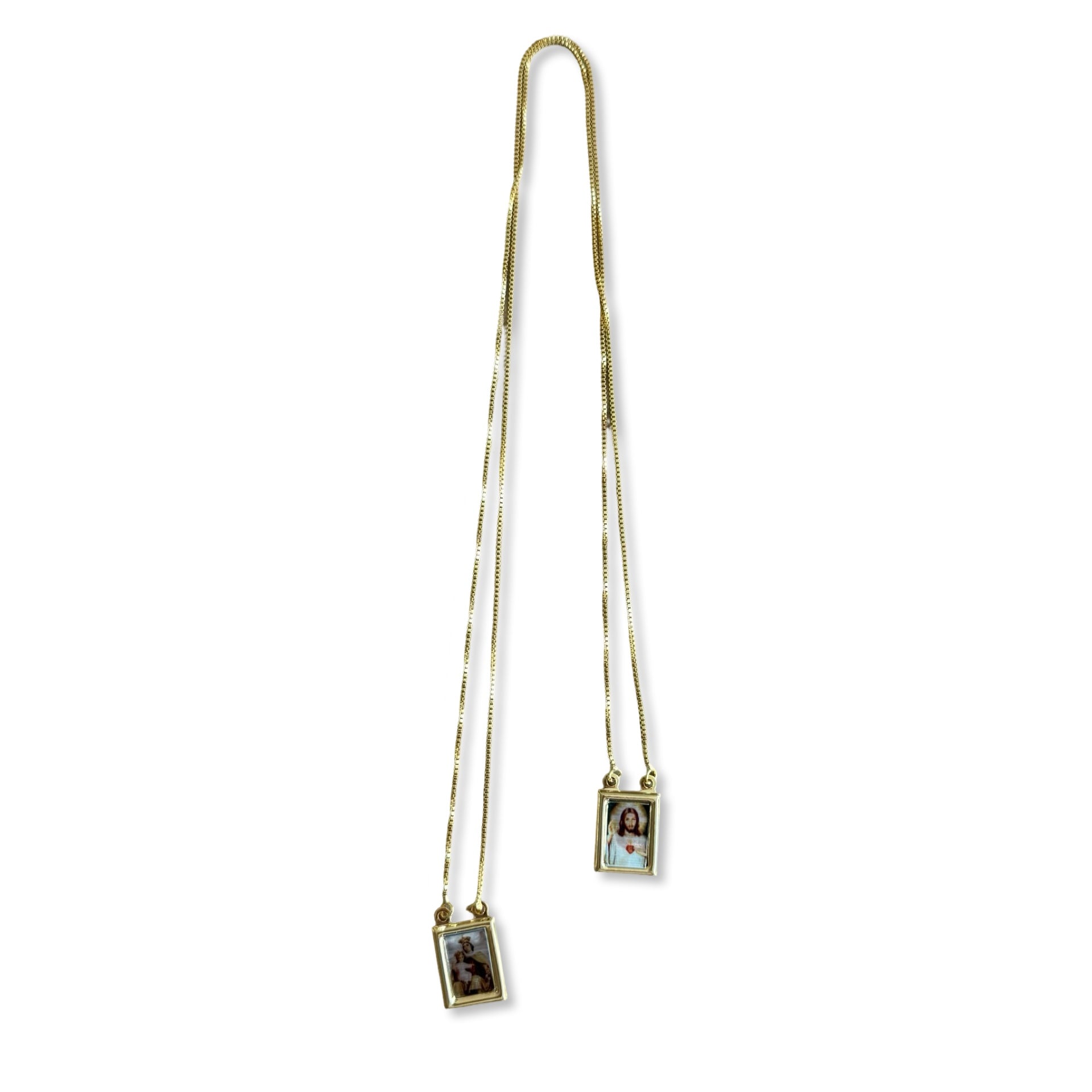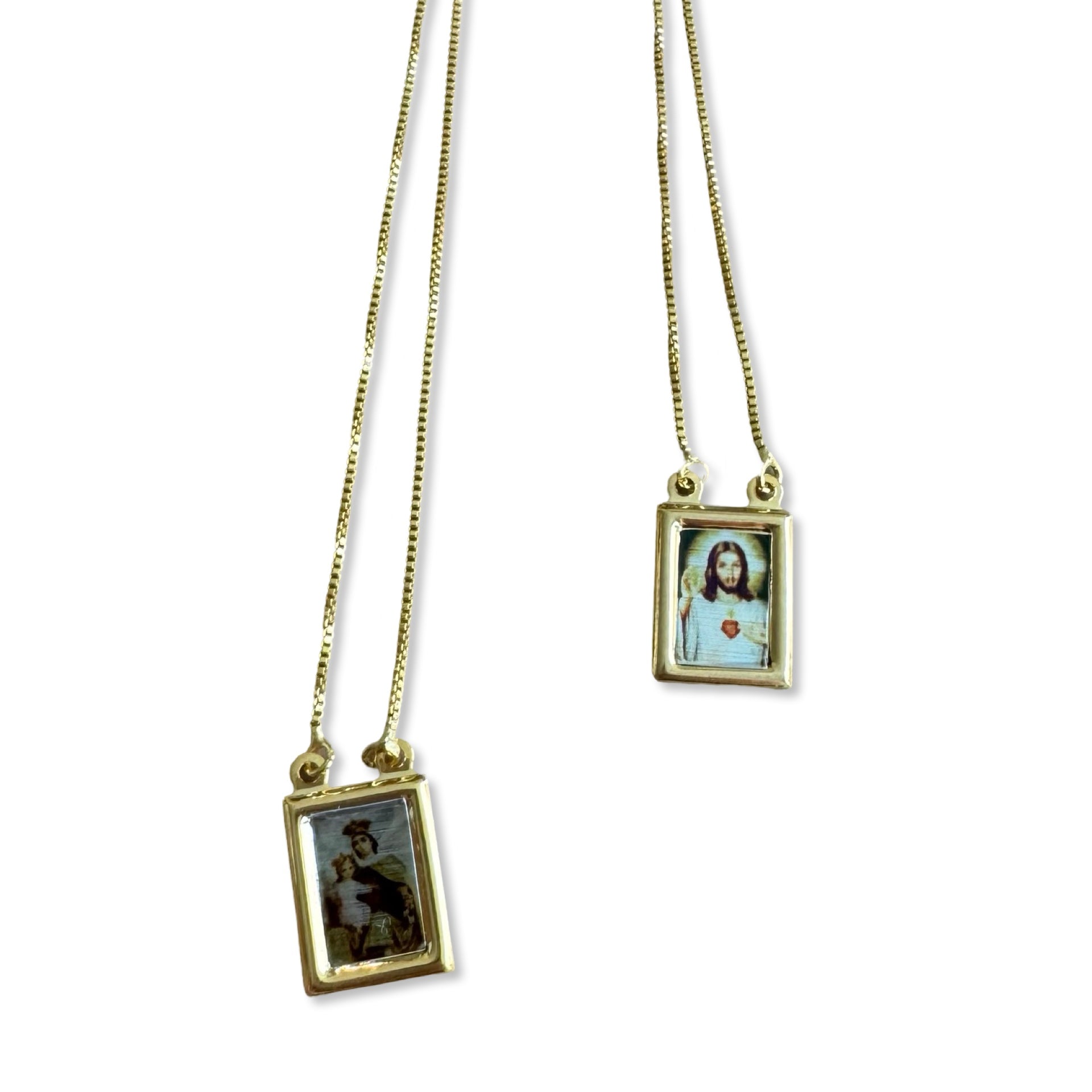 Gold Rectangular Scapular Necklace with Colored Image - Front and Back
