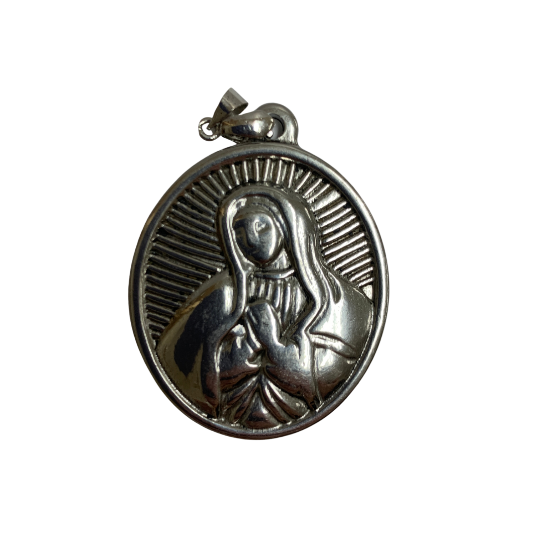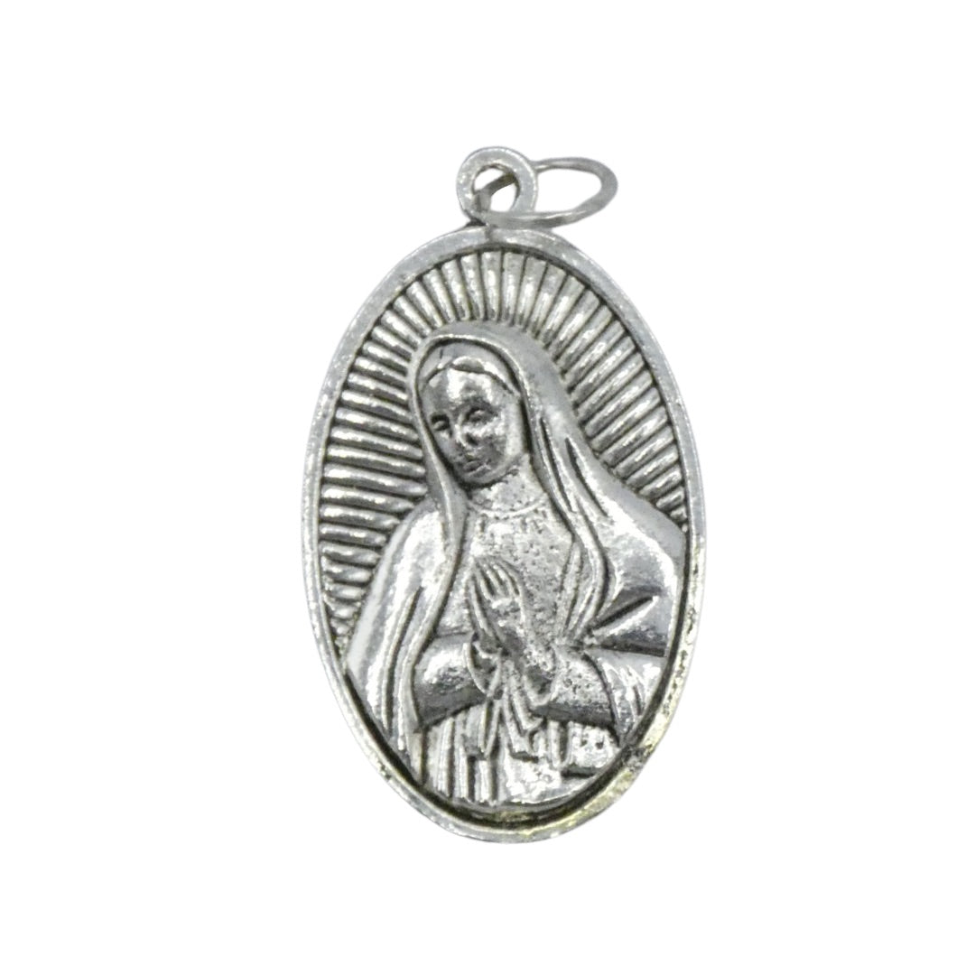 Includes a medal of Our Lady of Guadalupe; rosary meditations are in Spanish