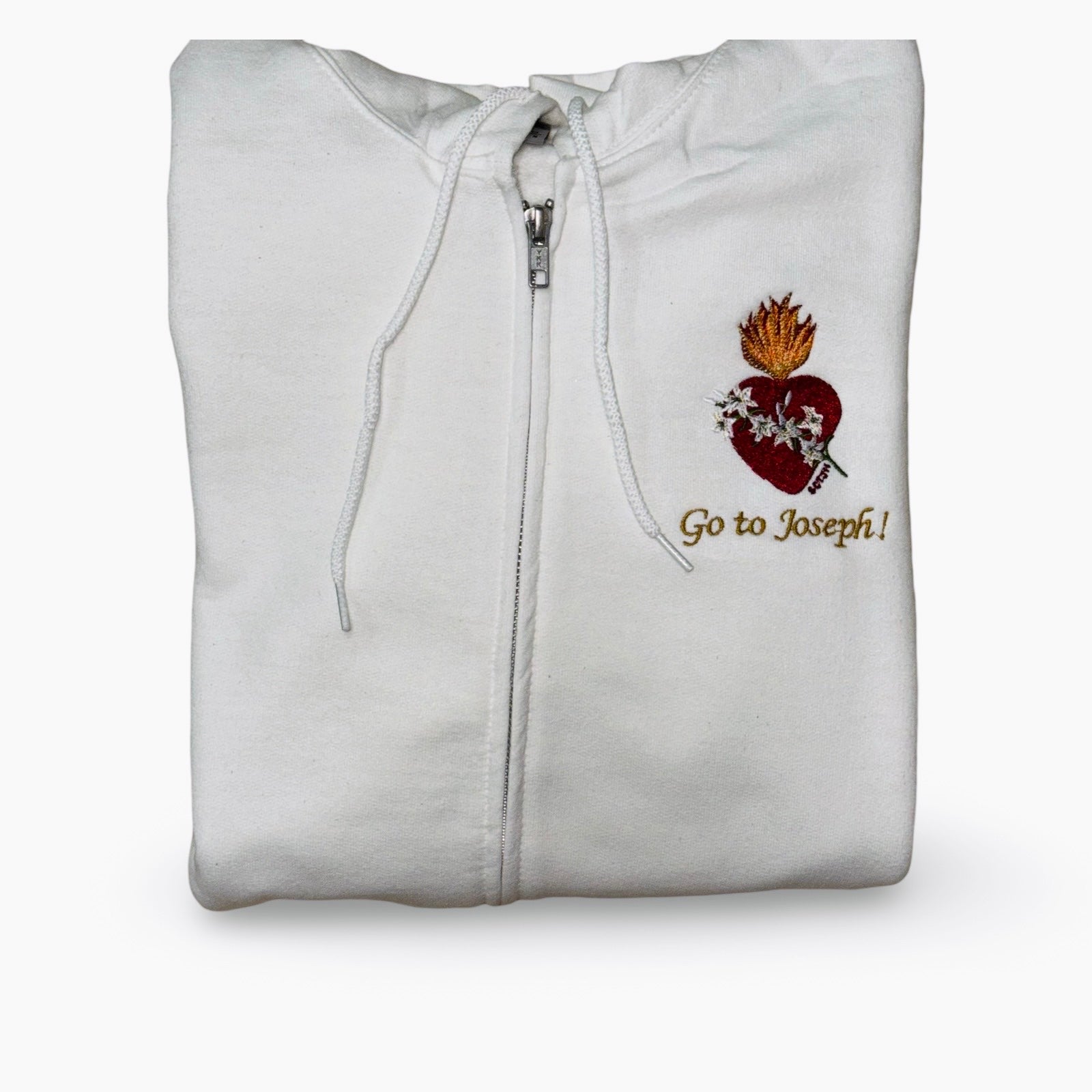 "Go to Joseph" Embroidered Zip-up Sweater by SCTJM