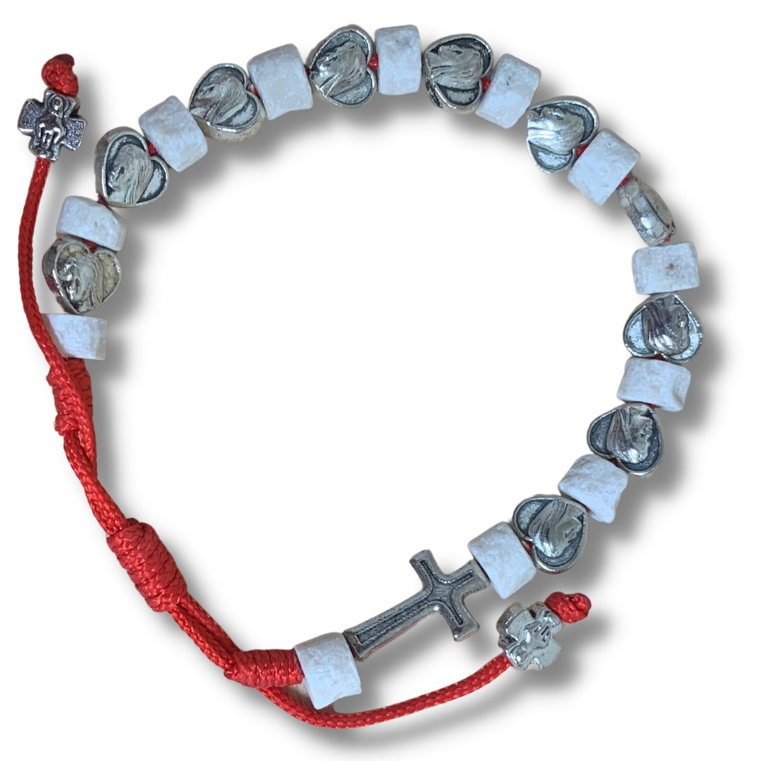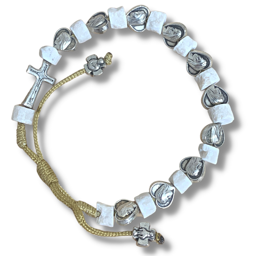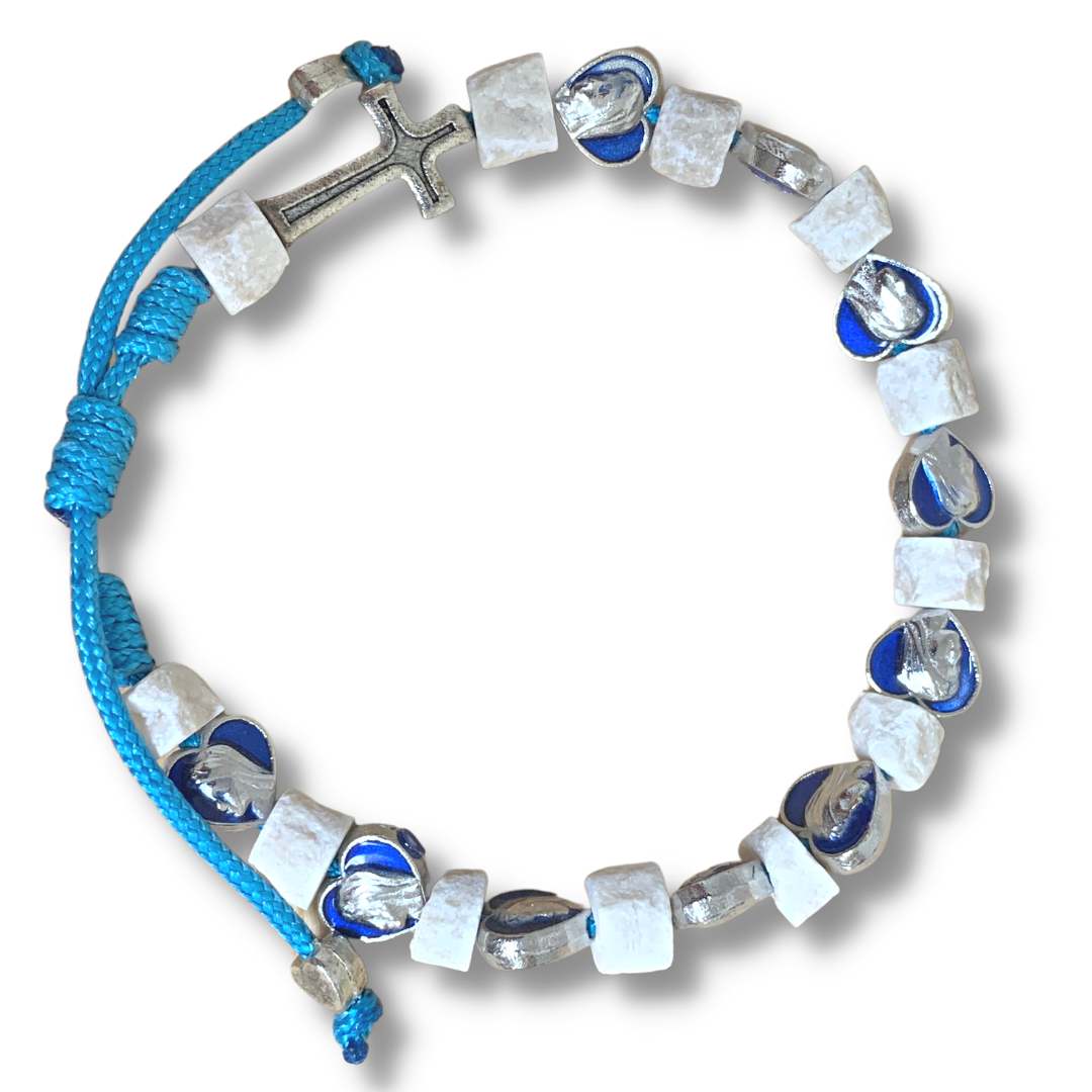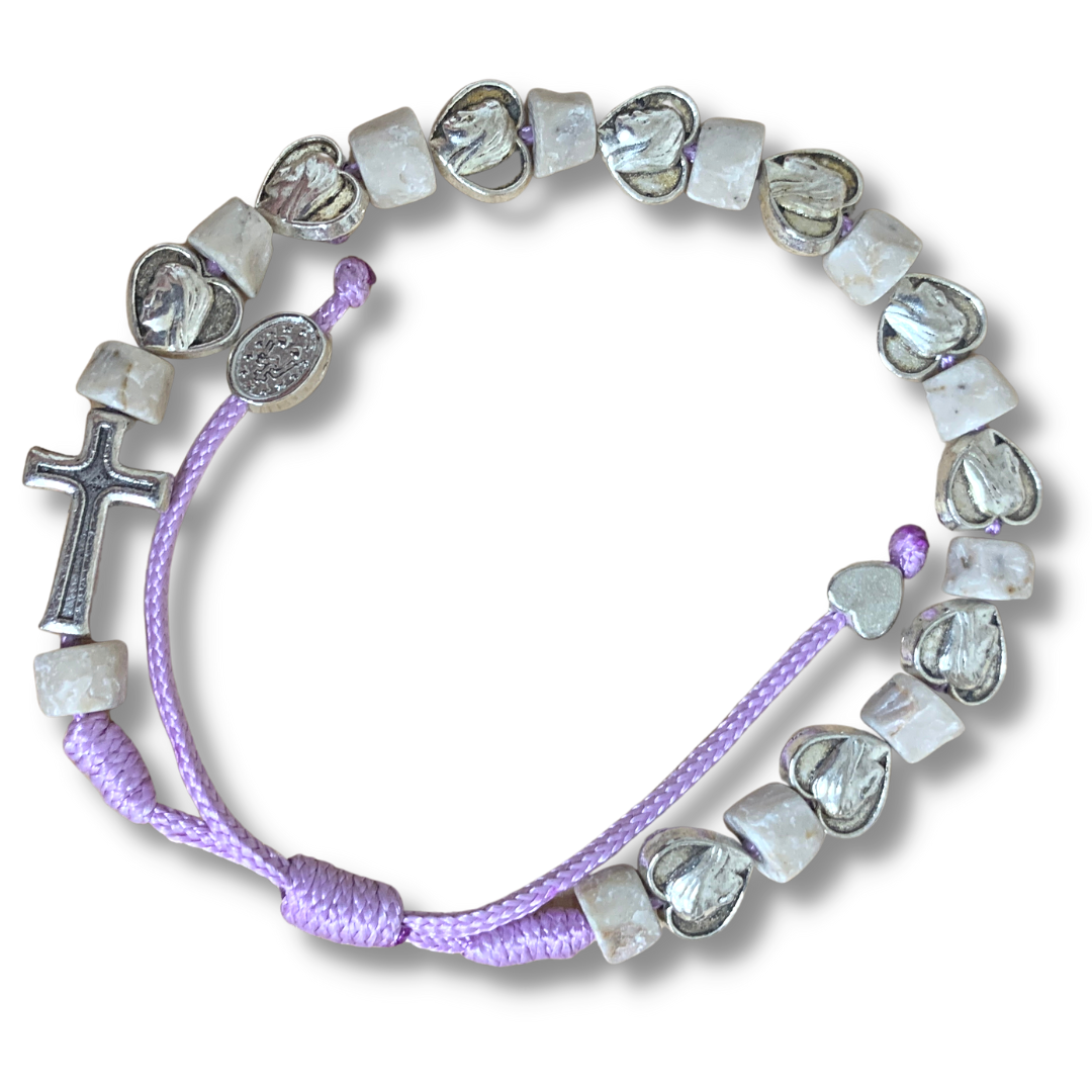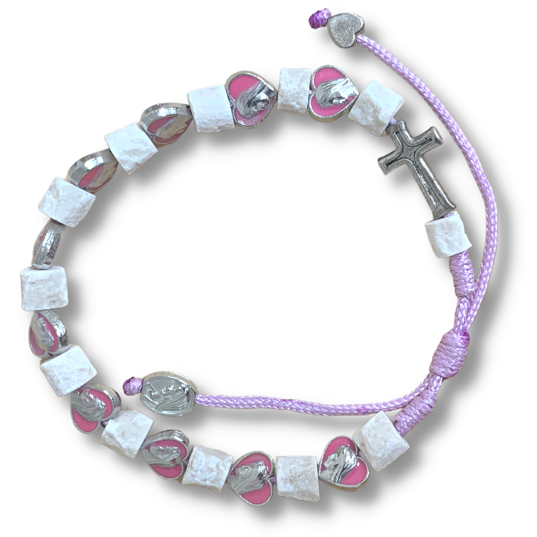 Heart Queen of Peace Medal and Stone Bracelet with Cross of Assorted Styles