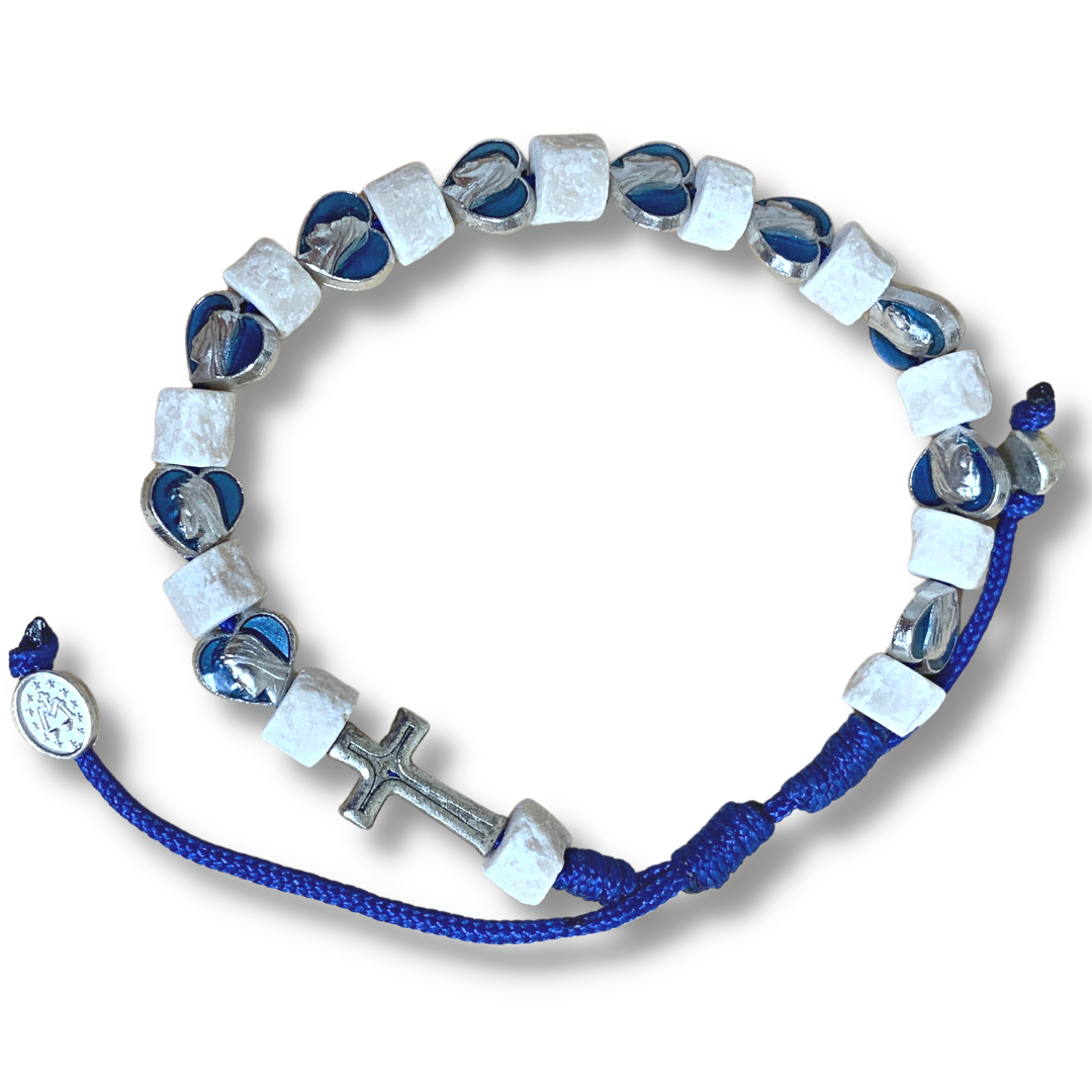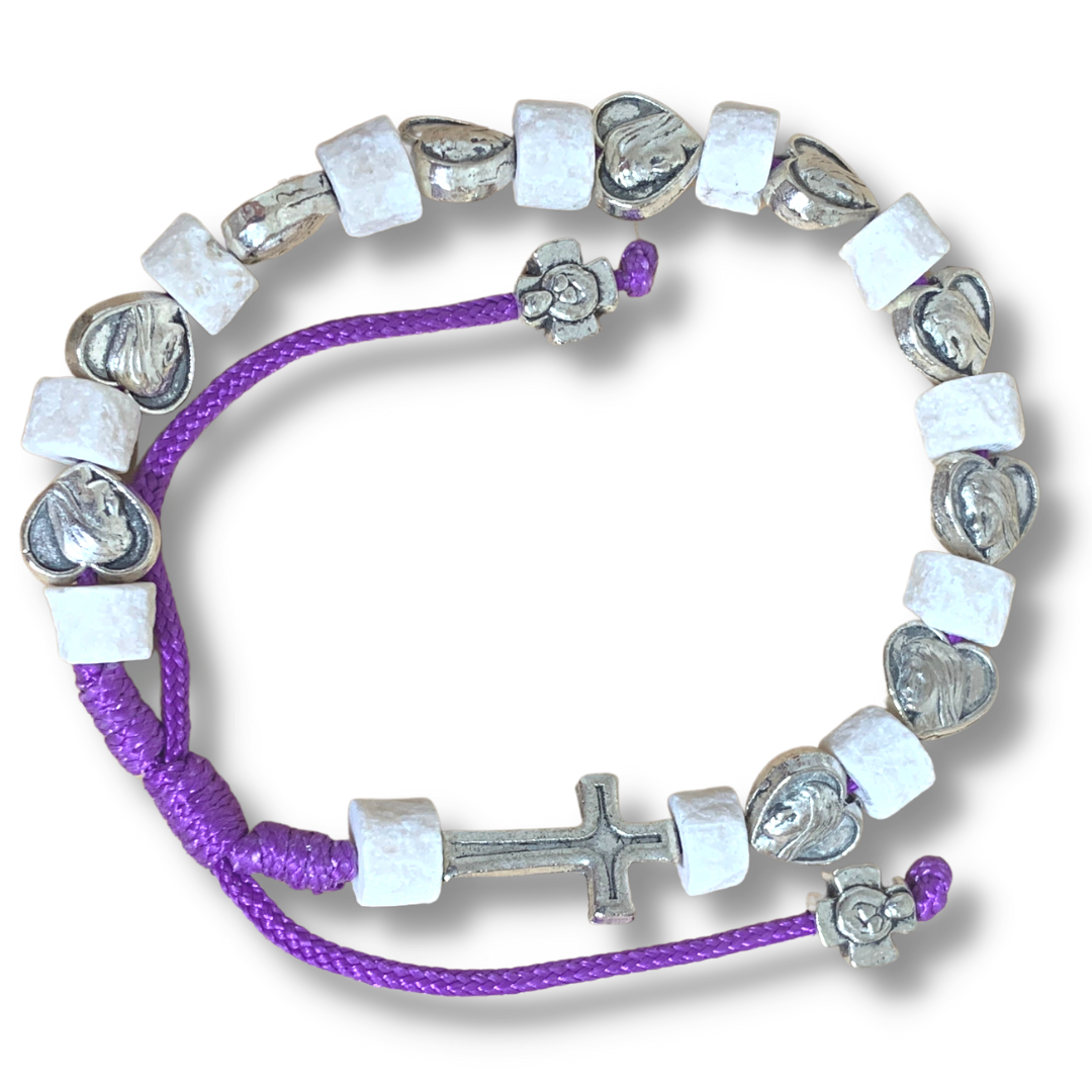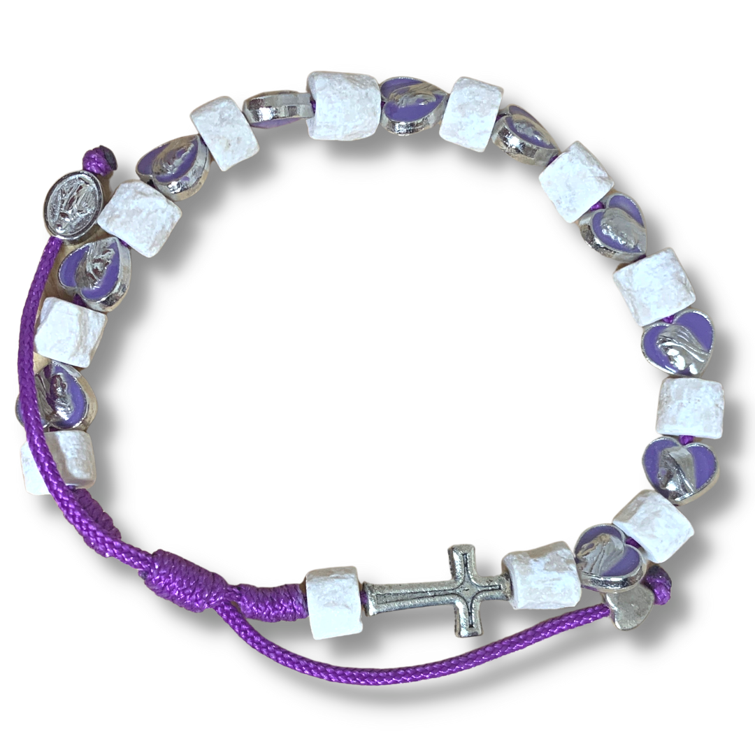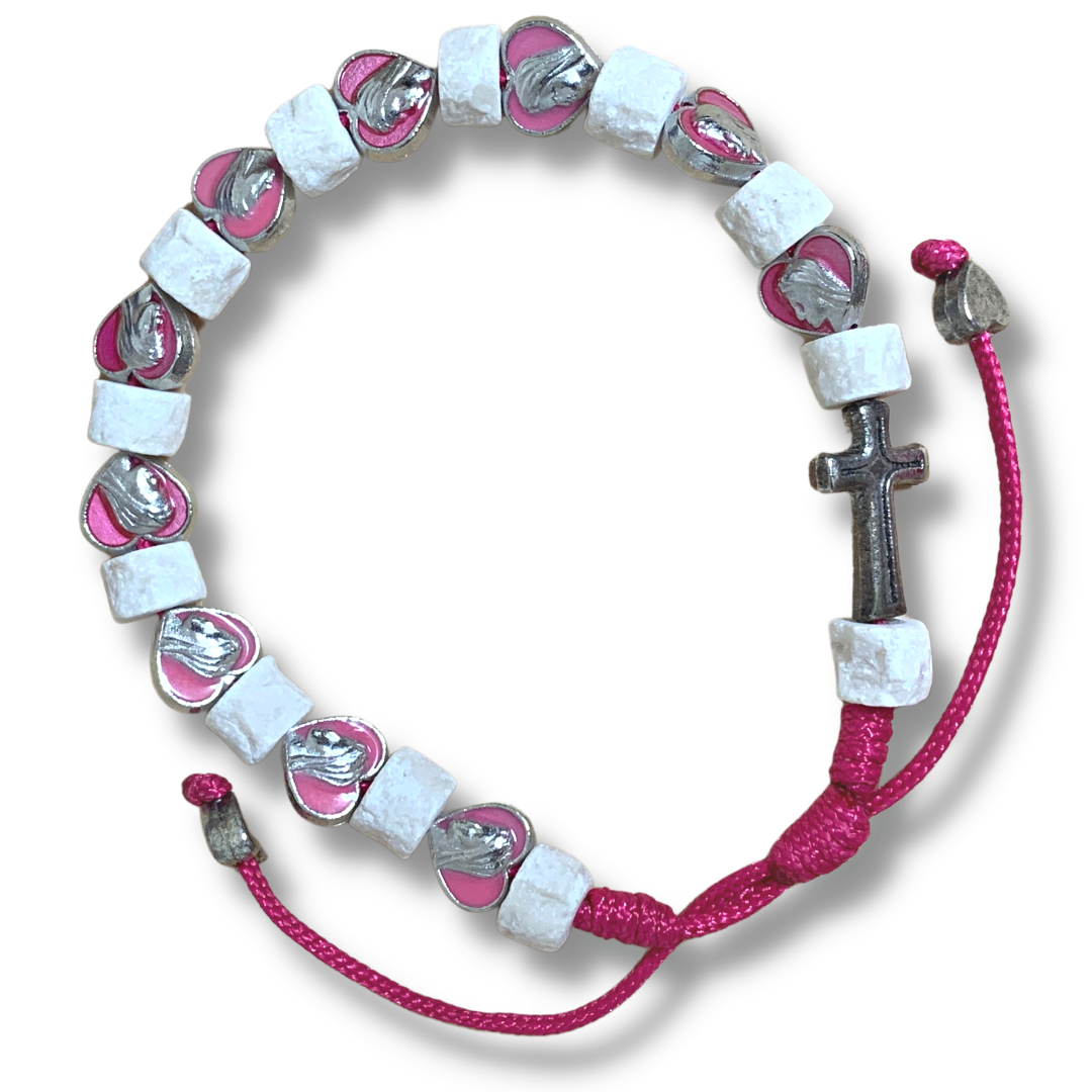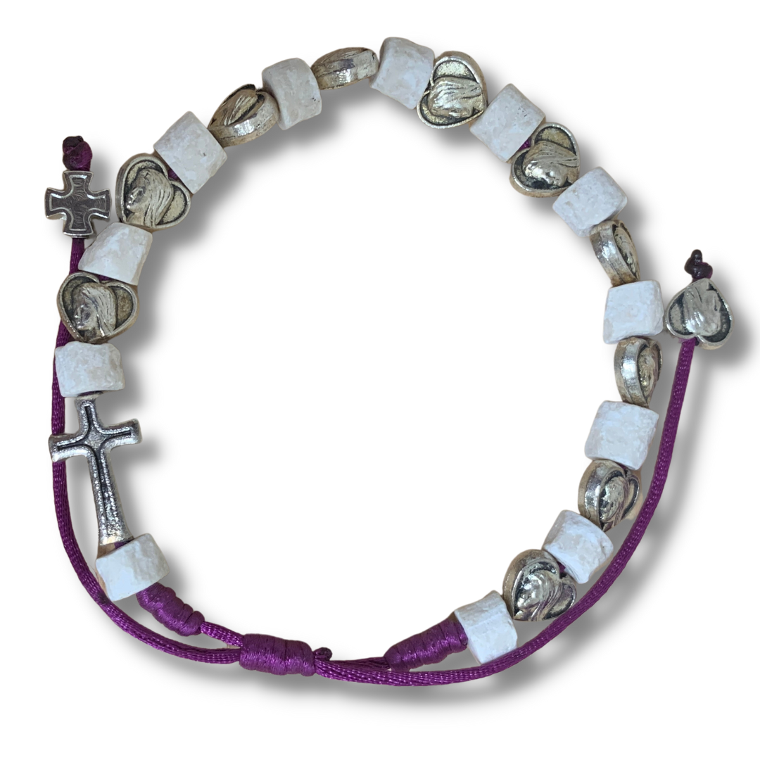 Heart Queen of Peace Medal and Stone Bracelet with Cross of Assorted Styles