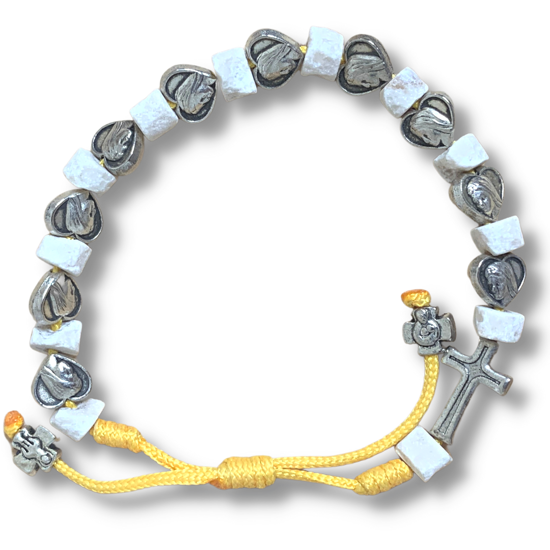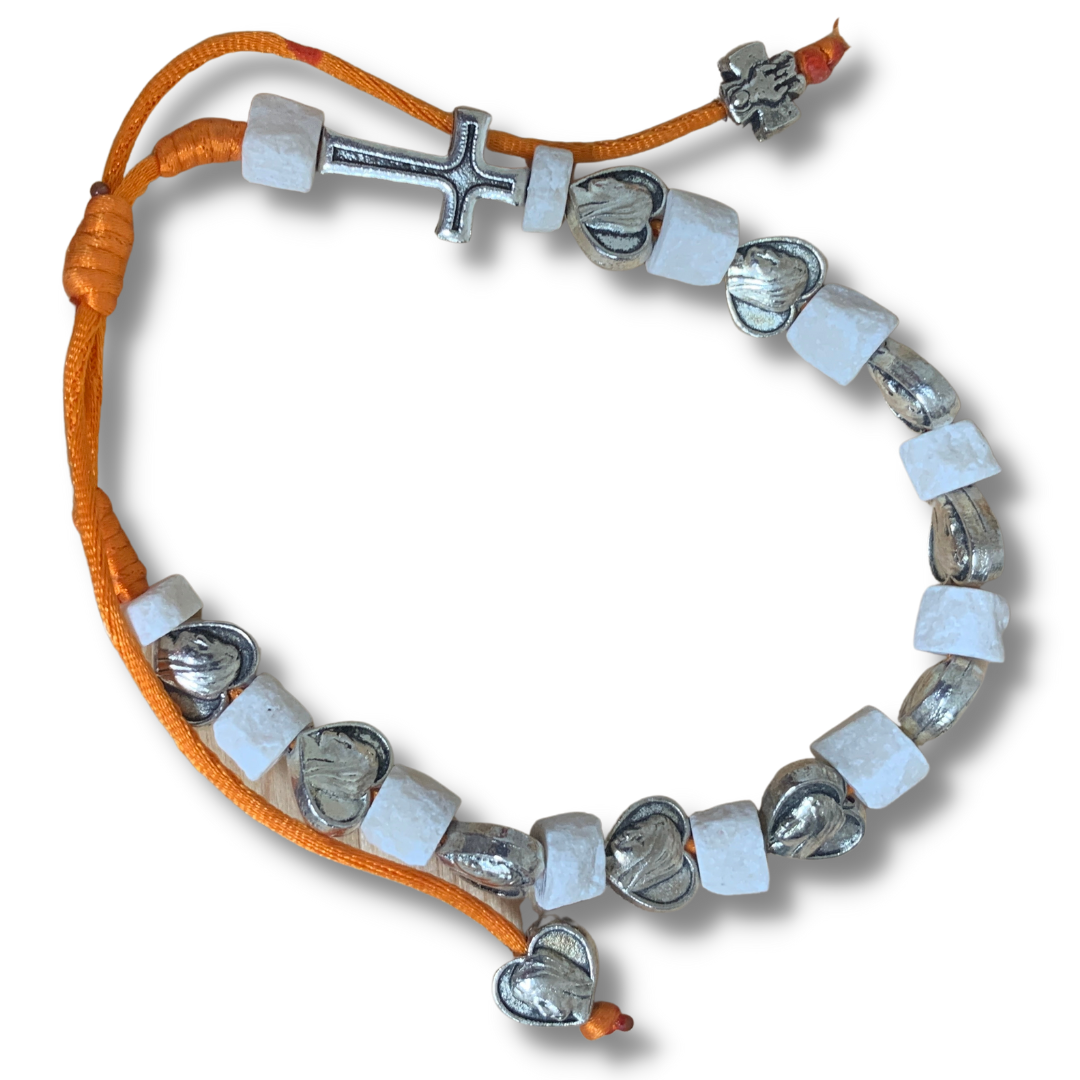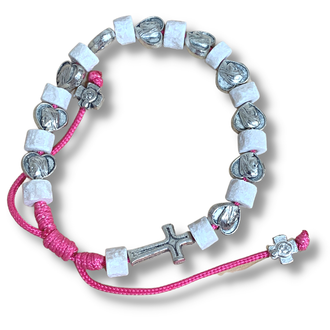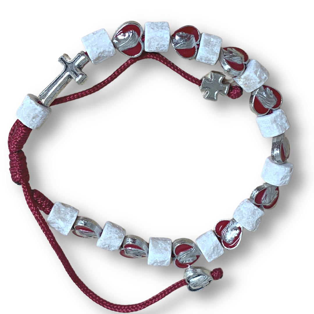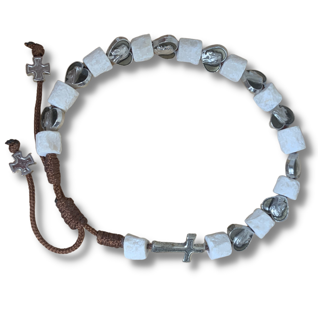 Heart Queen of Peace Medal and Stone Bracelet with Cross of Assorted Styles