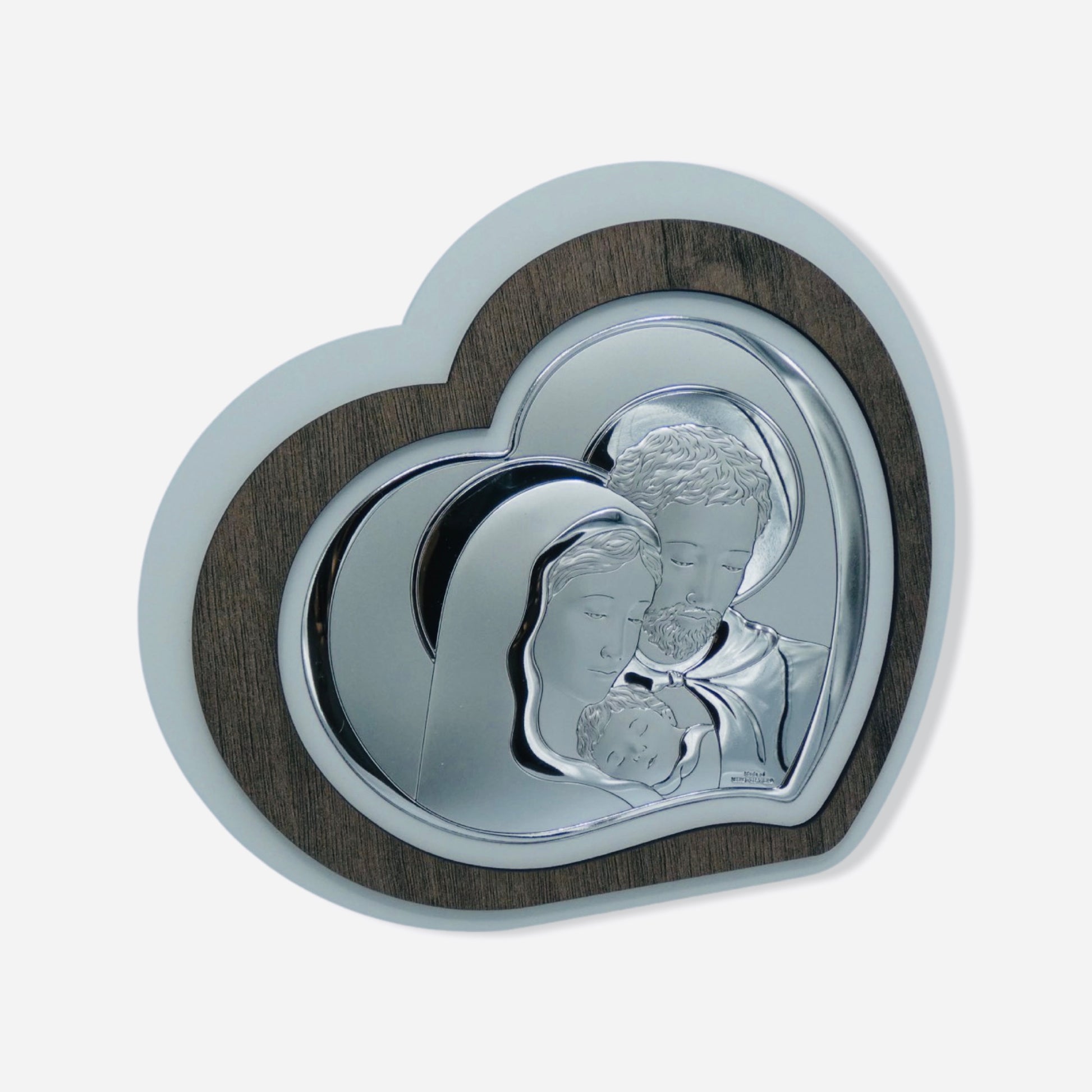 A heart shaped silver image of the Holy Family is an elegant addition to any home and a daily reminder of the perfection of family life. This image is accompanied by a removable metal footing to be stood on tables and bookshelves, as well as mounted on a wall. This product is brought with love by our Sisters serving the Heart of the Church in Rome, Italy!