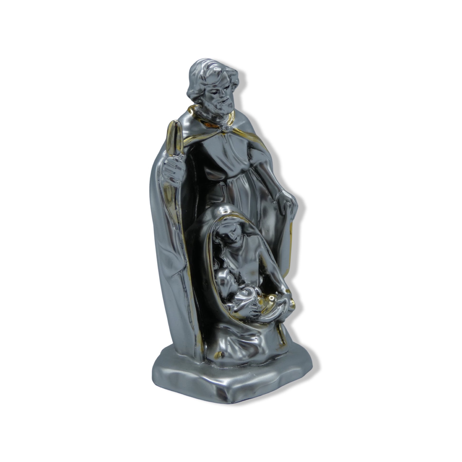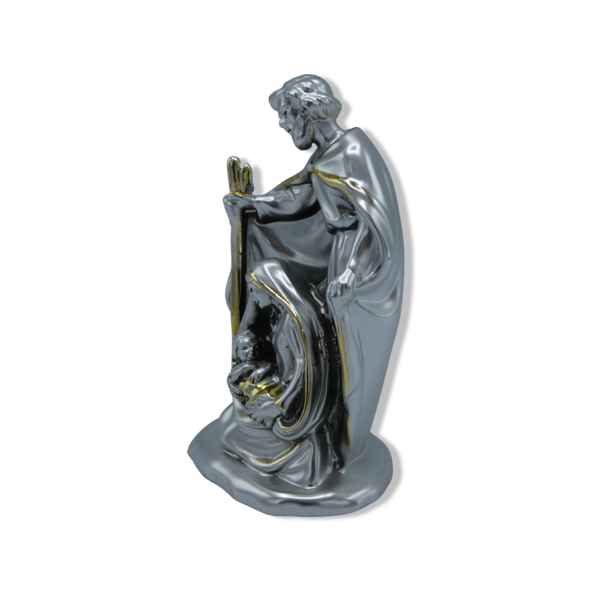 This beautiful silver-colored statue of the Holy Family is an excellent addition to your home or office to be reminded of the beauty and simplicity of the hidden life of Jesus. This makes a good Baptismal gift or a gift for anyone who is particularly fond of Christmas and the beauty of Christ's birth.