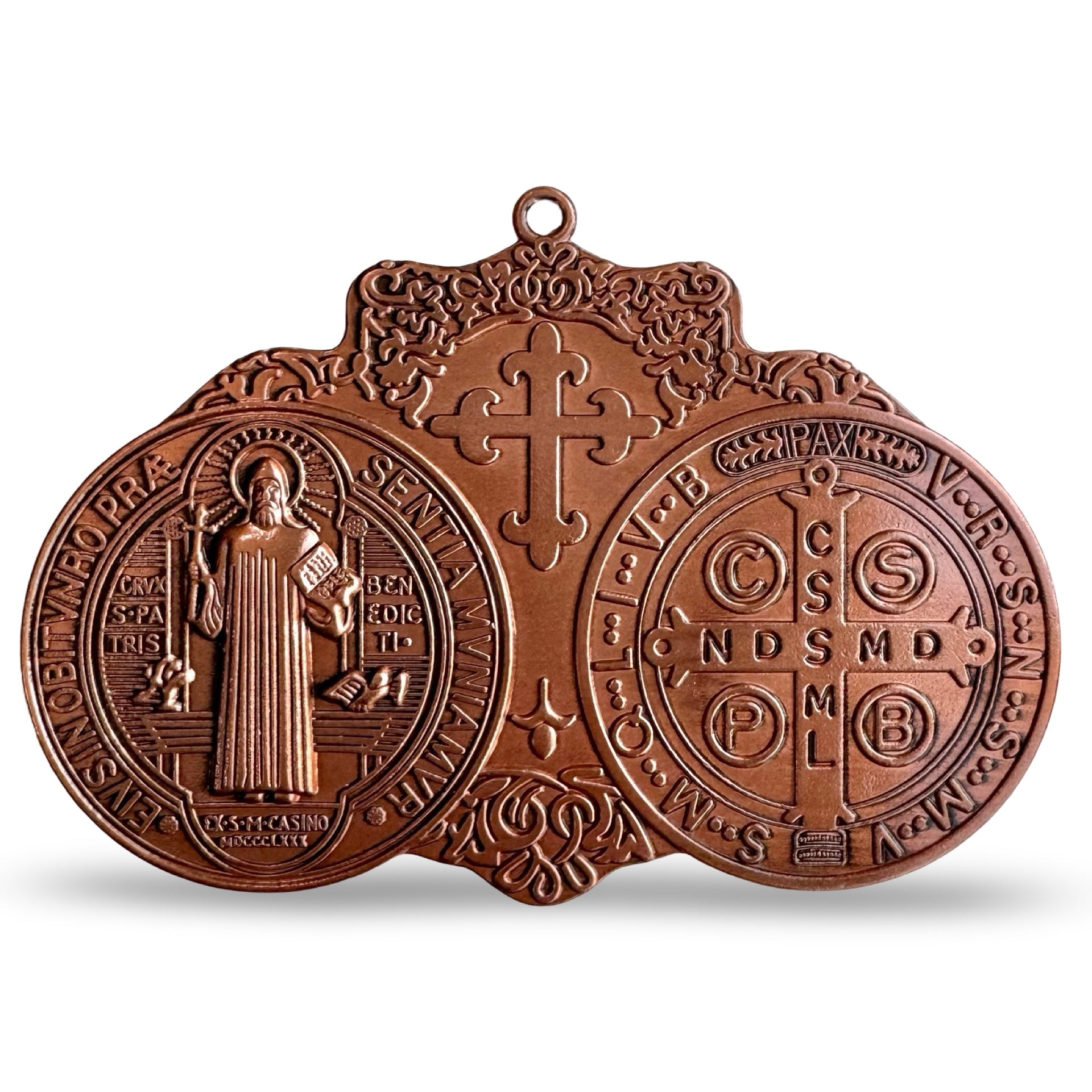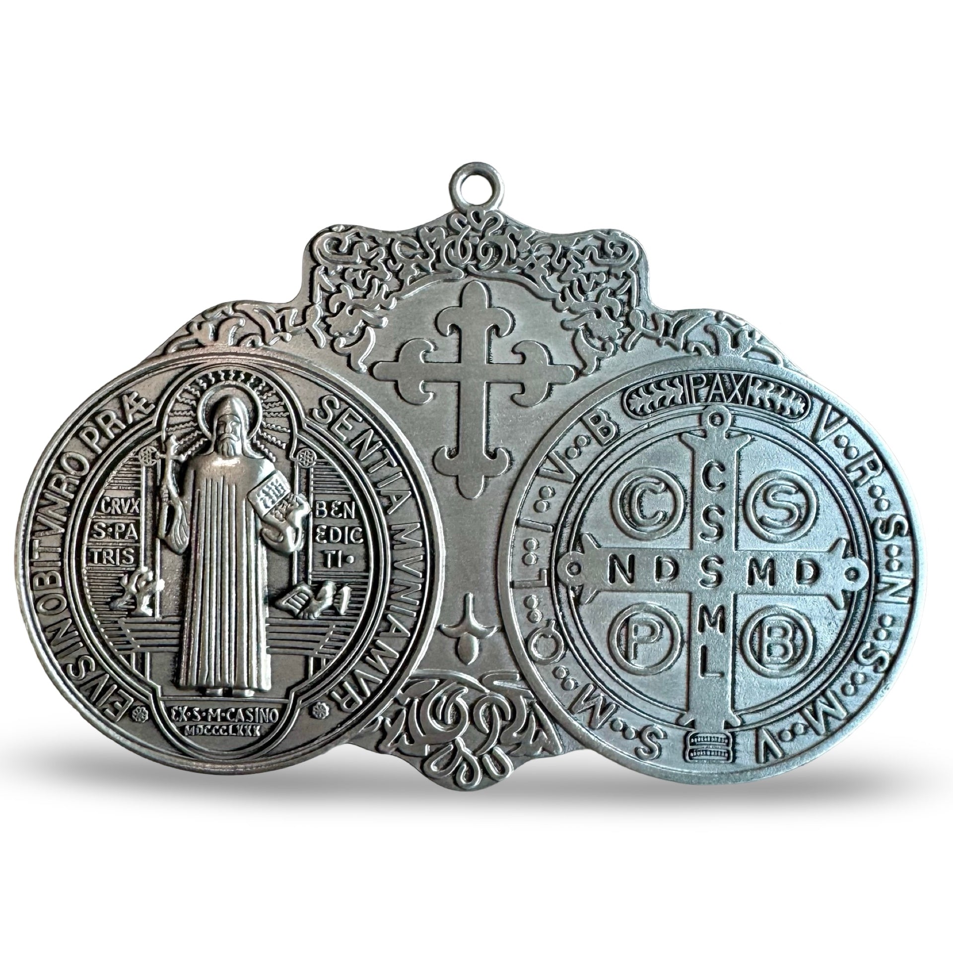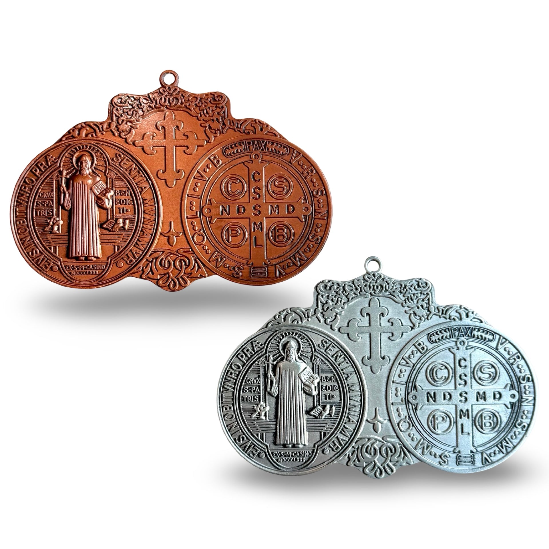 This large medal of St. Benedict comes in silver or bronze with a hoop to hang on your wall by a nail. Beautifully carved, it will not bring beauty to your home or office, but the powerful protection of the St. Benedict medal.