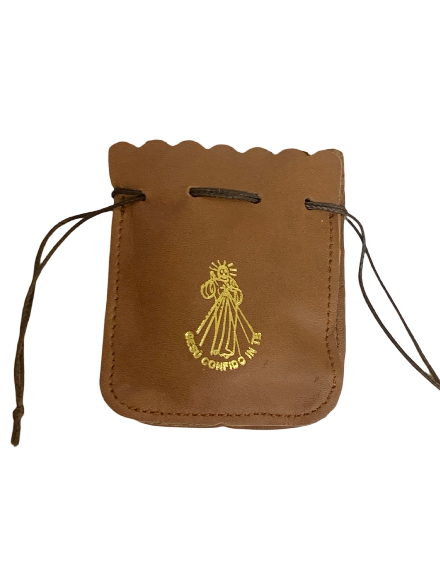 Description: Assorted leather pouches, ideal for carrying rosaries, chaplets, and devotional items with you on the go. This pouch fits perfectly in backpacks and purses allowing you to never be without spiritual protection. It bears a golden cross along with the inscription, "Gesù Confido In Te" (Jesus I Trust In You).