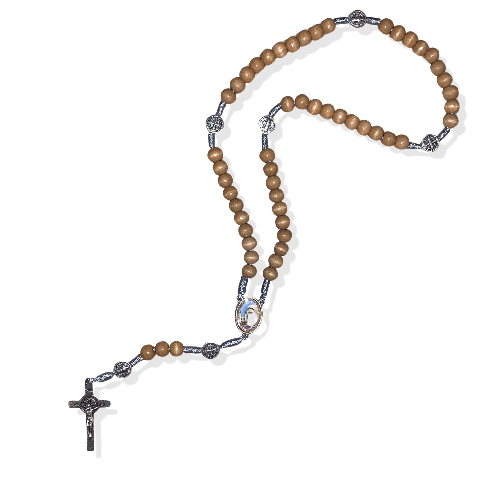 Light Wood Bead with Light Blue String St. Benedict Rosary