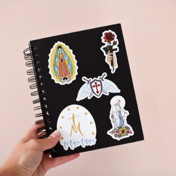 This sticker is hand-drawn by an Apostle of the Two Hearts! It looks beautiful on a laptop, water bottle, notebook, Bible, or phone case!