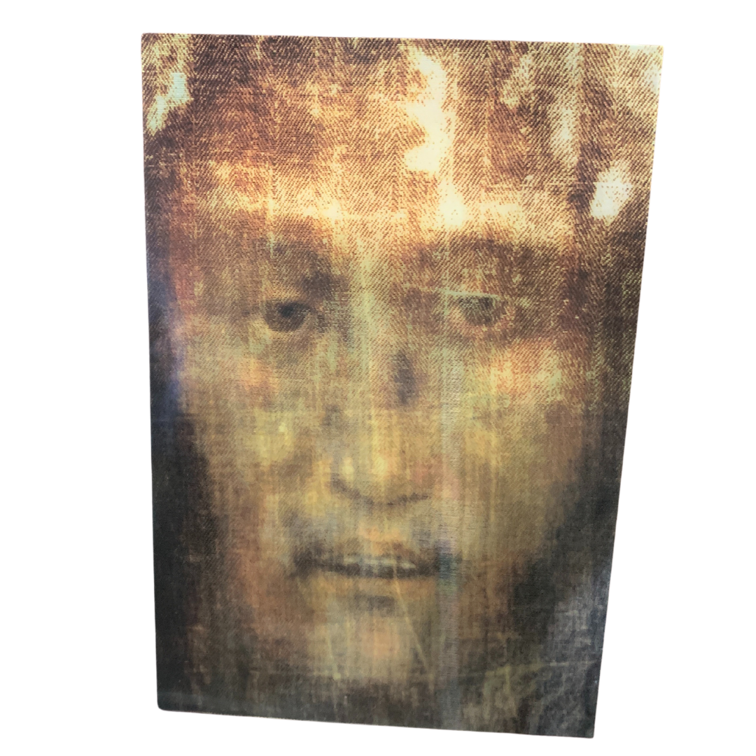 Miraculous image of the face of Jesus from Manoppello upon the Face of Jesus of the Shroud of Turin.