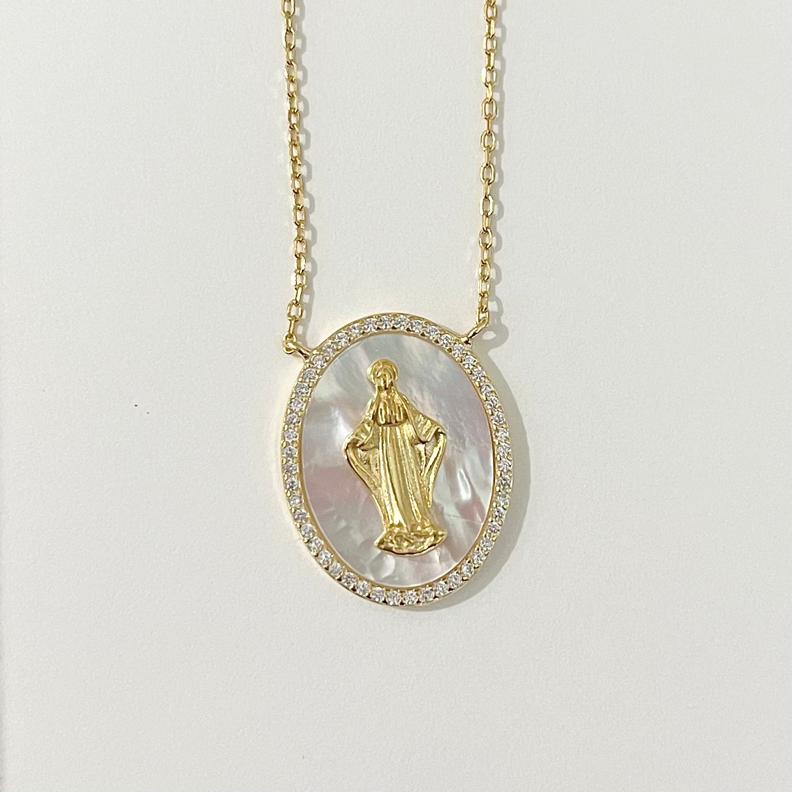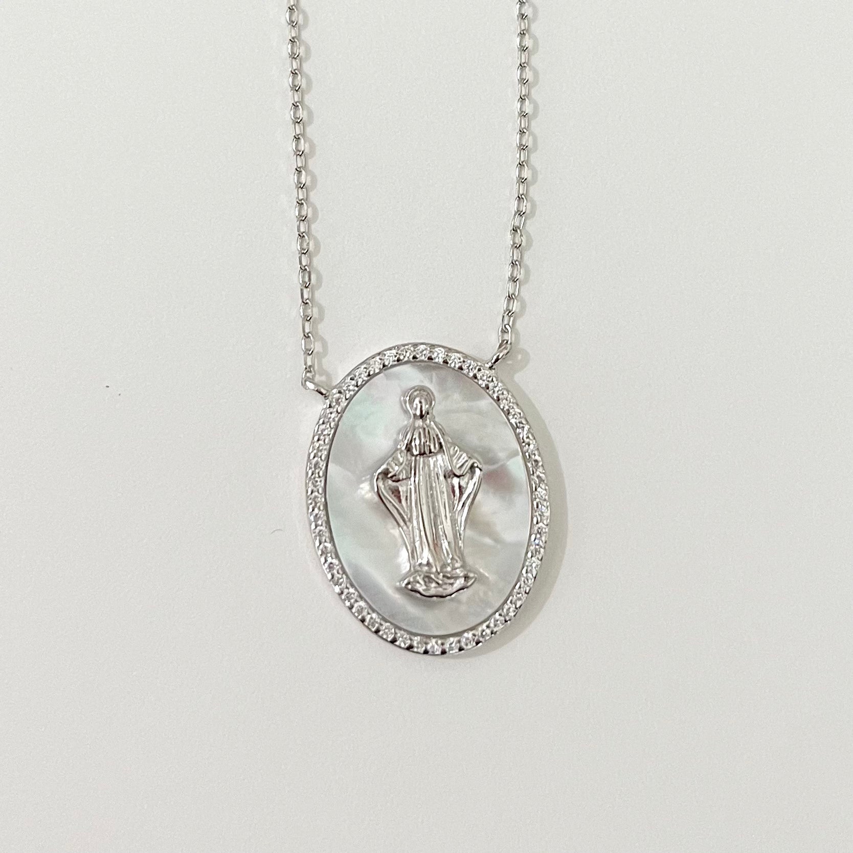 Mother of Pearl Miraculous Medal Necklace with Zirconium Border