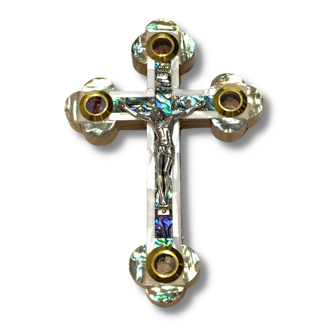 Mother of Pearl Olive Wood Jerusalem Crucifix