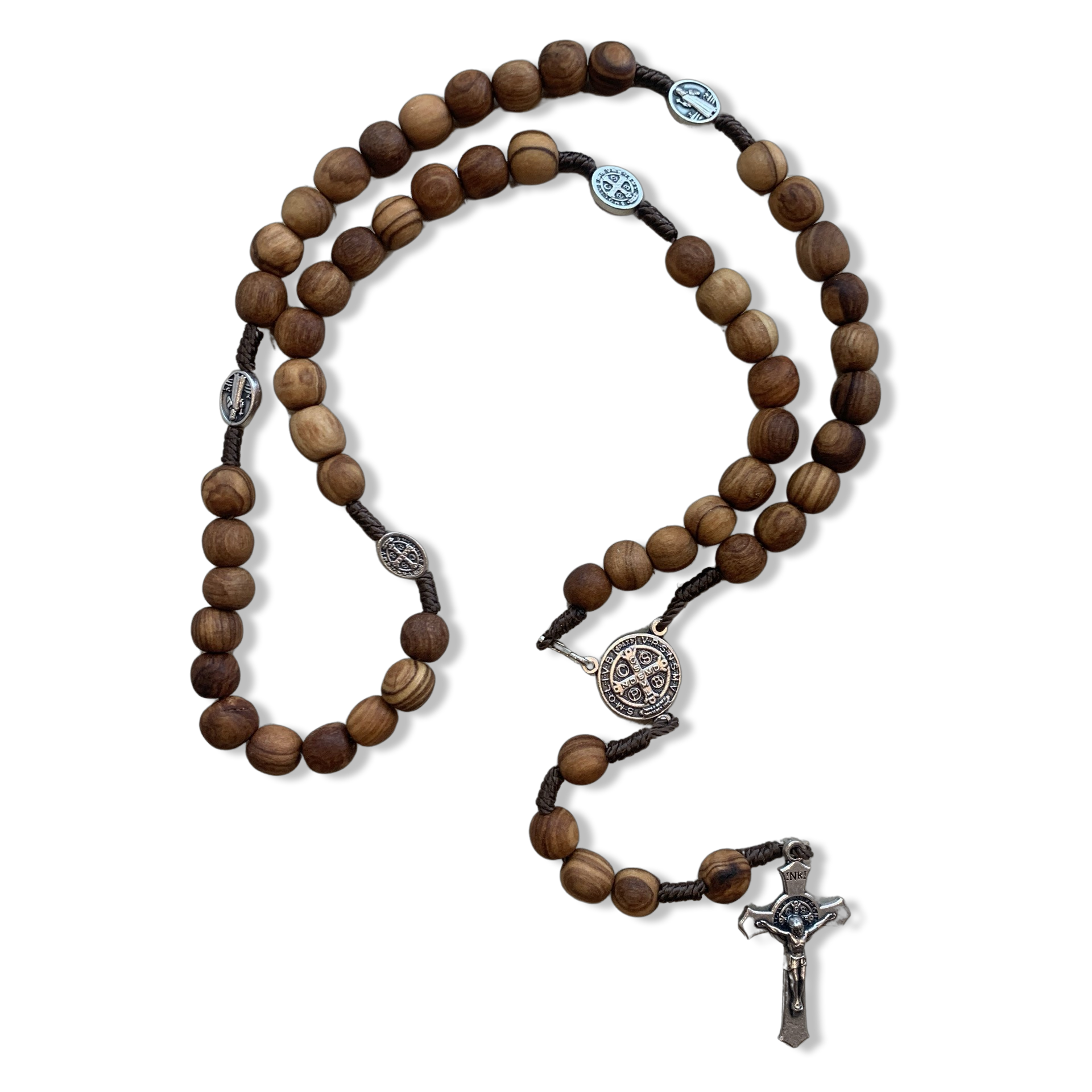 Olive Wood Bead with Brown String St. Benedict Rosary