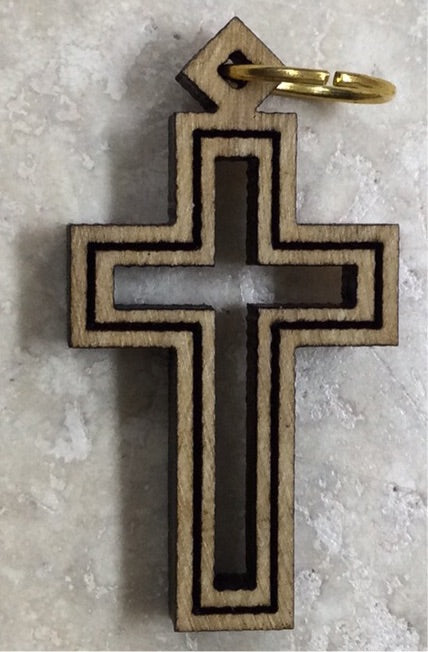 A genuine olive wood Cross pendant with a cross cut-out and a small medal loop. This pendant, coming directly from Jerusalem, is a perfect addition to any necklace or a zipper on a bag and is also a simple gift to remind others that you are praying for them. This is also an excellent gift for anyone preparing to receive their Confirmation. This pendant comes all the way from the Holy Land and is brought by Mother Adela Galindo, Foundress SCTJM, when she leads pilgrimages.