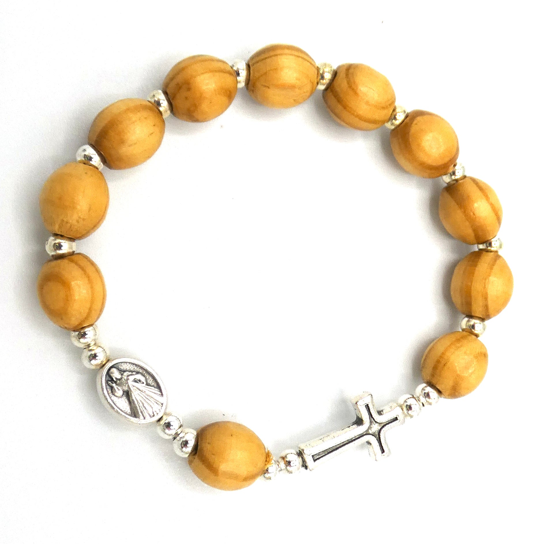 Olive Wood Queen of Peace Decade Rosary Bracelet of Assorted Styles